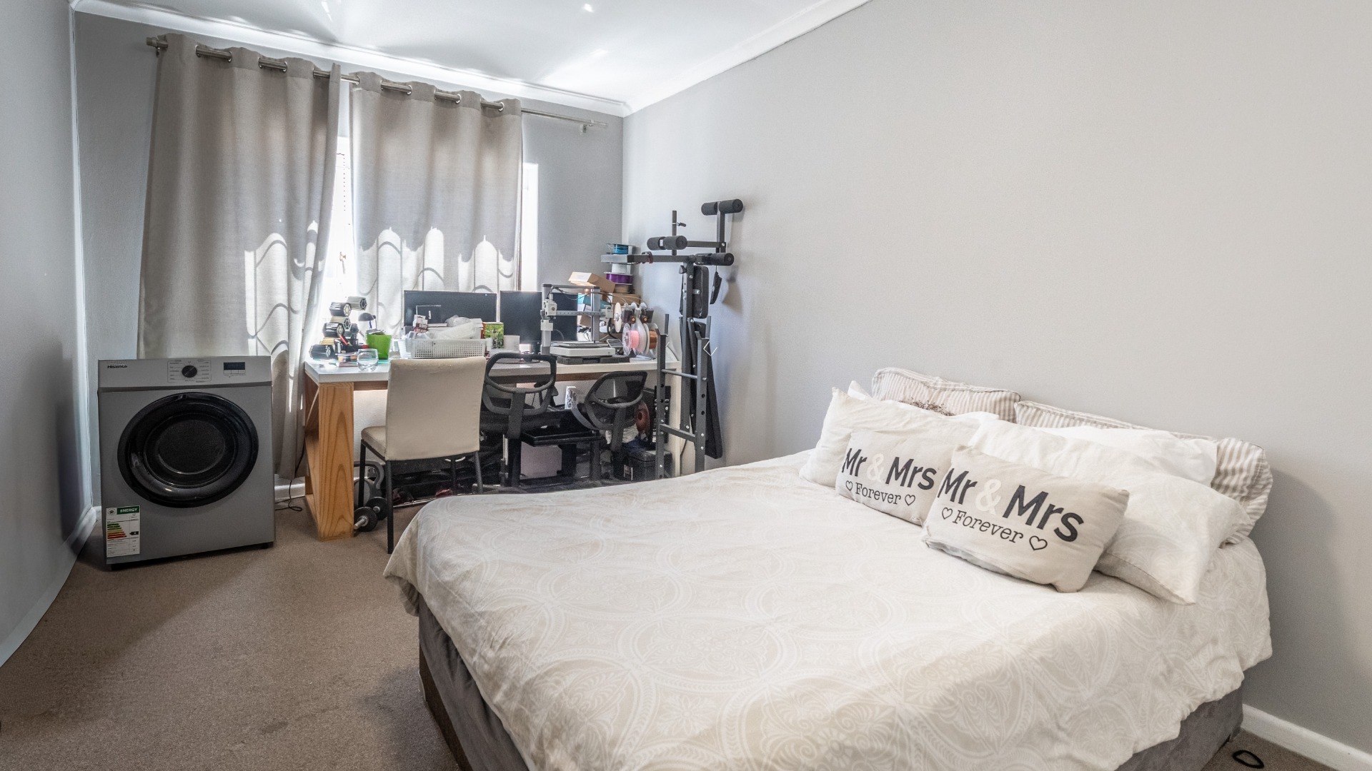 Step inside to a thoughtfully designed 148 sqm floor plan, featuring an open-plan layout that seamlessly connects the living spaces. The residence includes a welcoming lounge and interleading dining area, perfect for both everyday family life and entertaining. Sliding doors open out to a secure courtyard that displays artificial lawn and a built-in braai. The functional kitchen is well-appointed, ensuring a practical and enjoyable cooking experience with a kitchen door that leads to your exclusive use drying area.