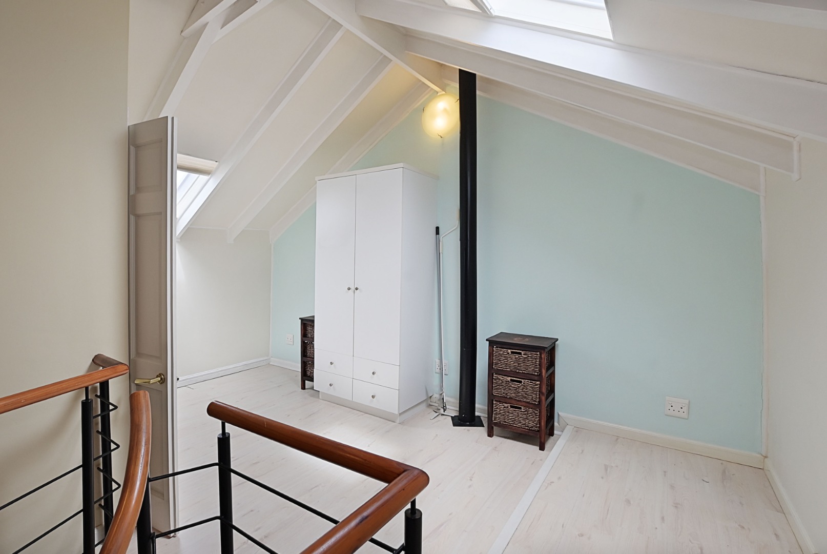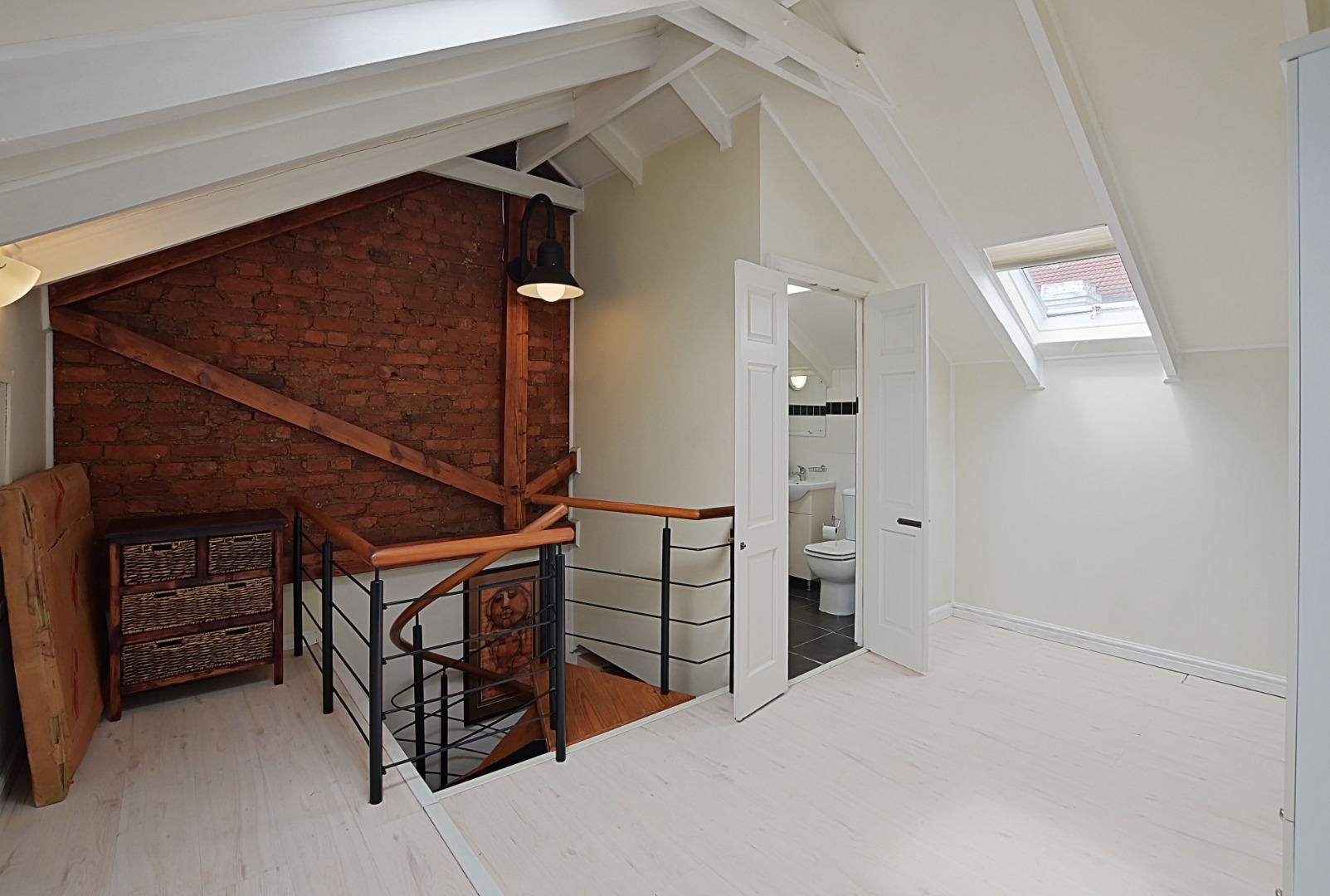 The gorgeous spiral staircase leads upstairs to the third master suite, offering privacy with its own en-suite bathroom.