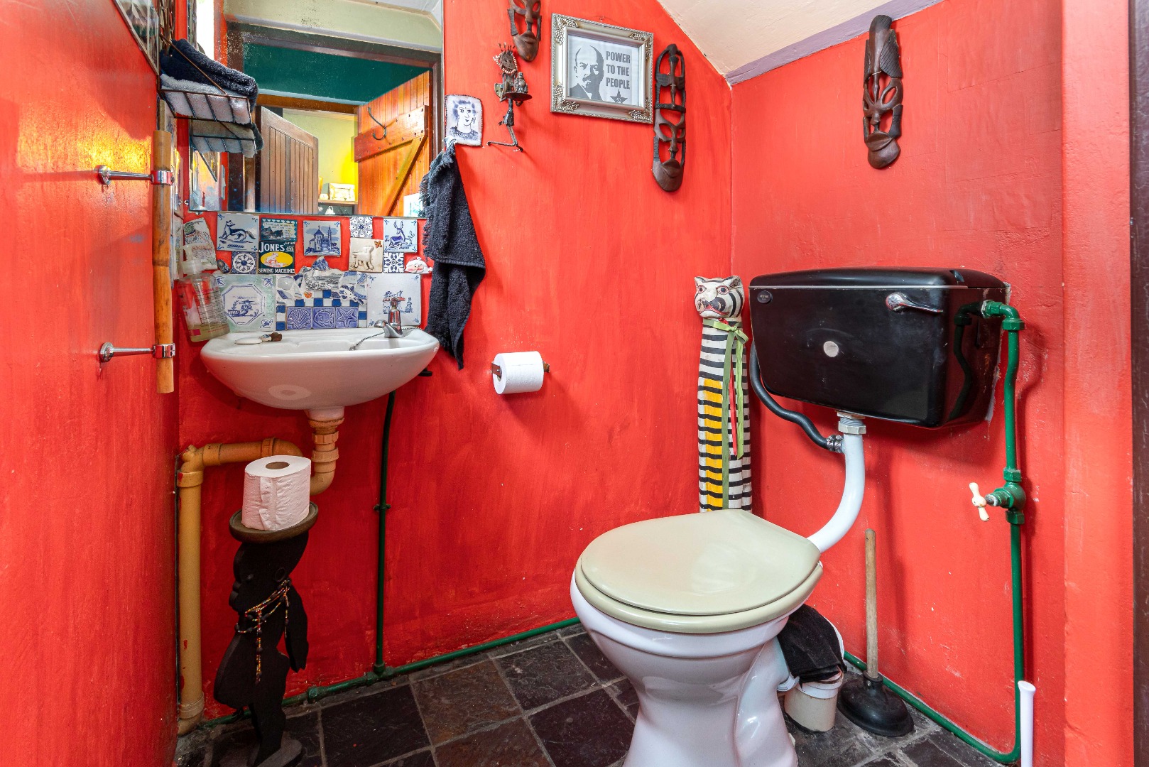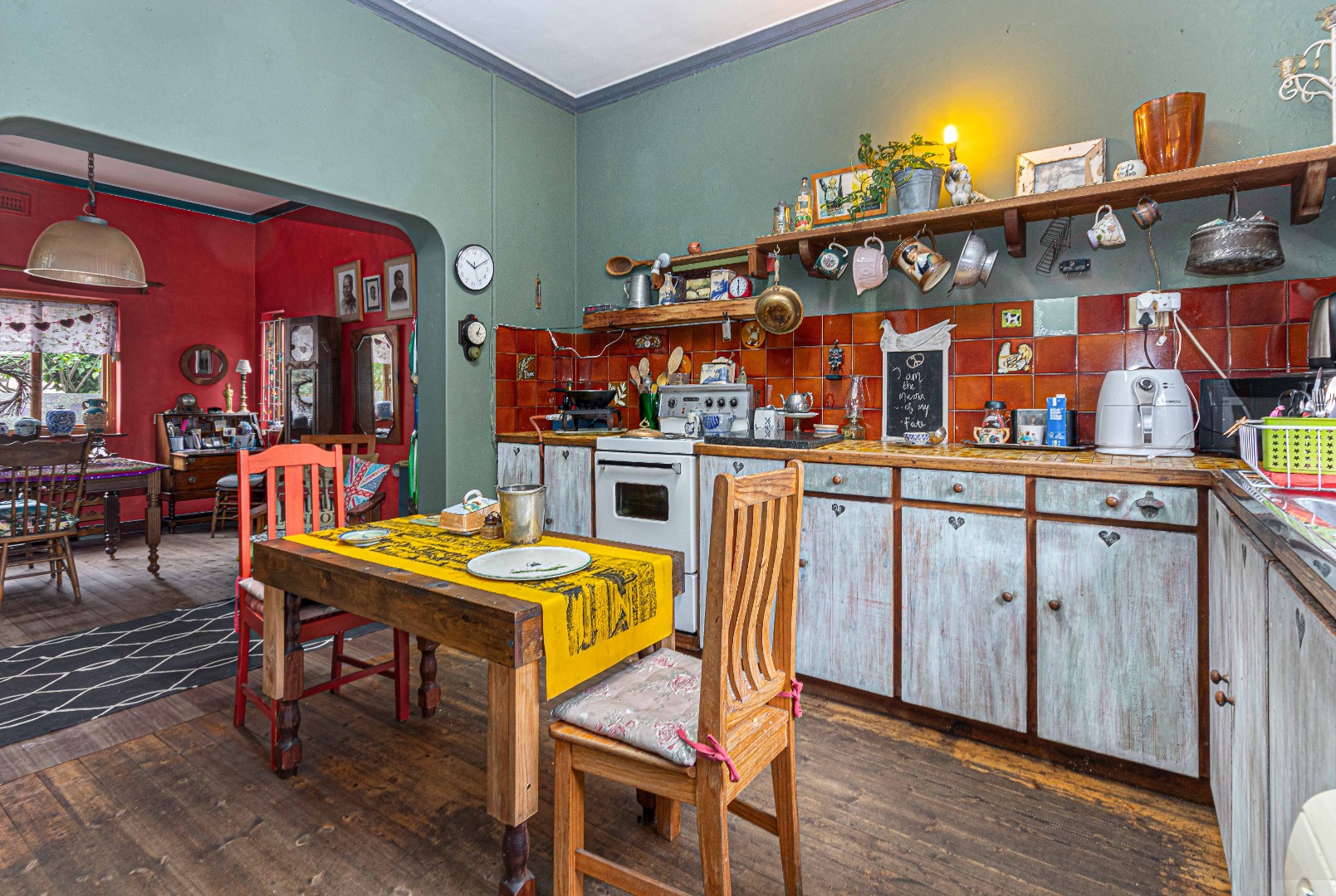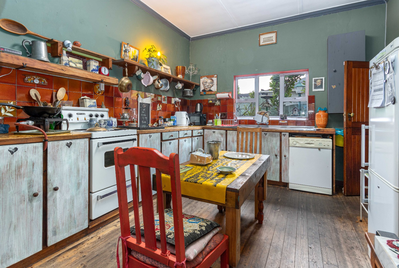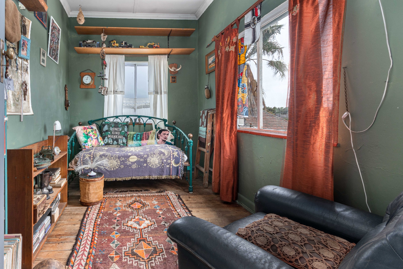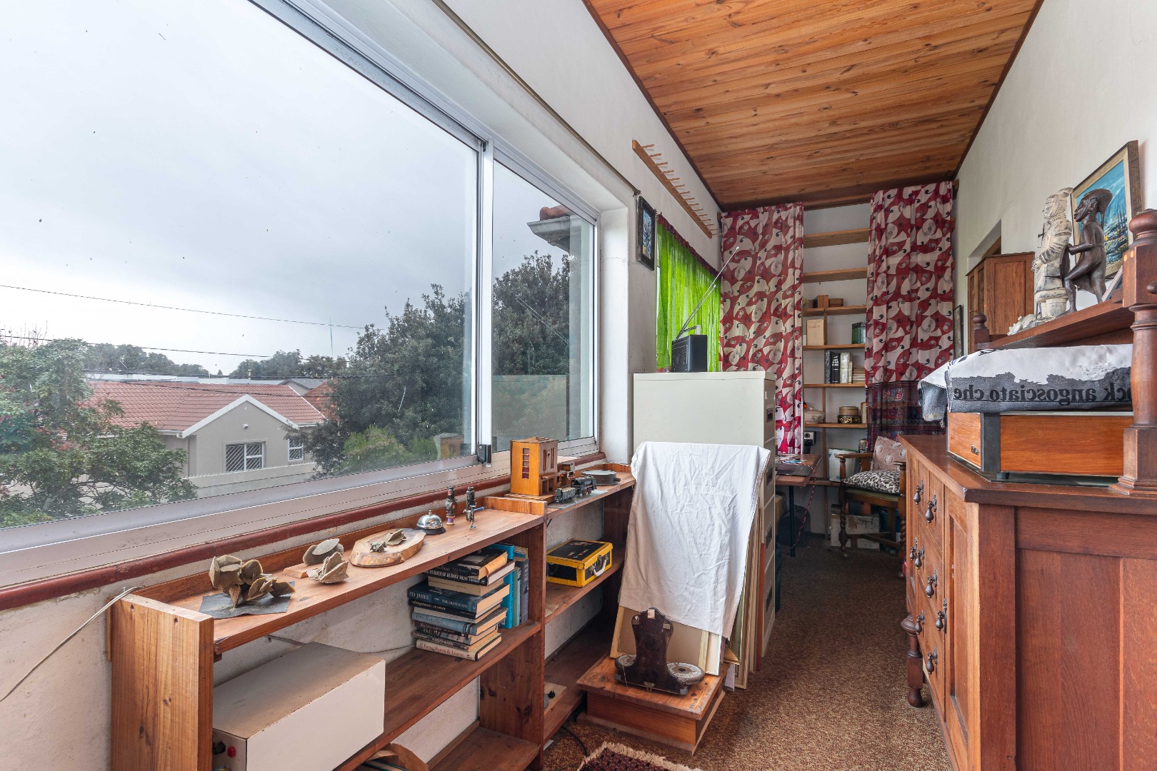 Currently eclectic and art-filled, this house can easily be converted to a contemporary