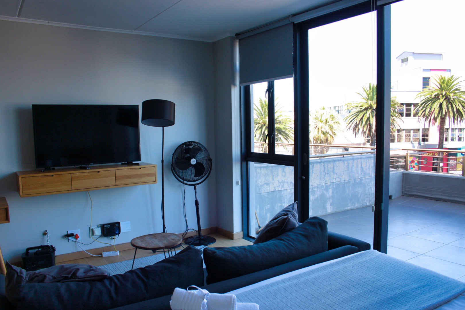 - Living Room/lounge 1 Balcony, Internet Port setee, coffee table, wall unit, TV, inverter, heater
