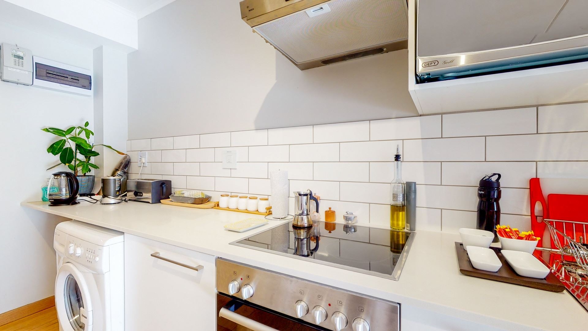 - Kitchen 1 Extractor Fan, Fridge, Washing Machine Connection, Under Counter Oven, Hob, Built in Cupboards Microwave