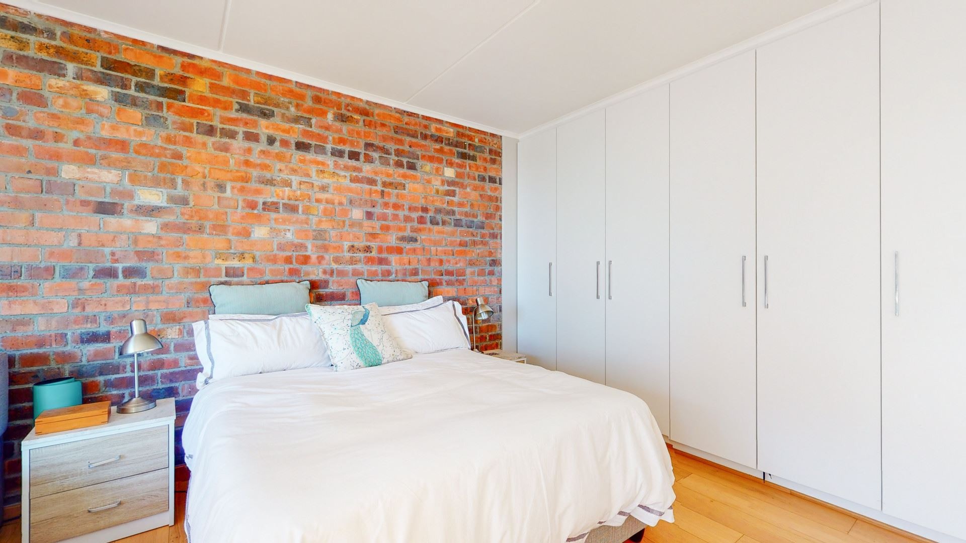 - Bedroom 1 Open Plan, Built-in Cupboards queen size bed and set of pedestals