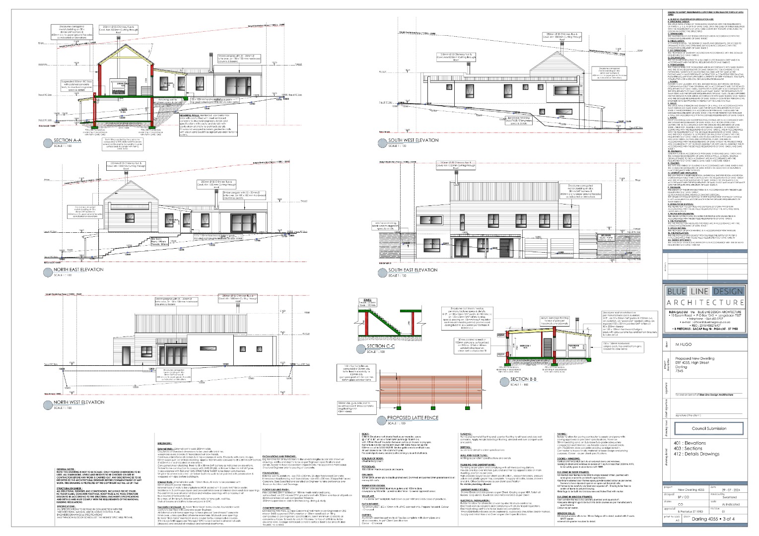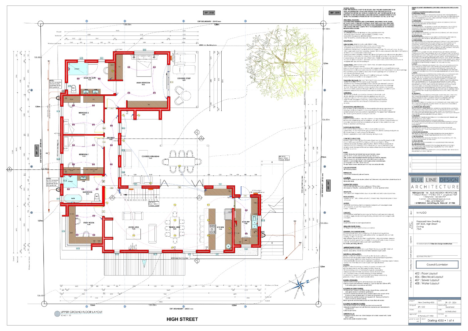 The plans for a double storey home have been drawn and are ready for submission to council. A test report has been conducted on site to approve the land for a double storey dwelling and the land surveyor has placed his signature on the required documentation.