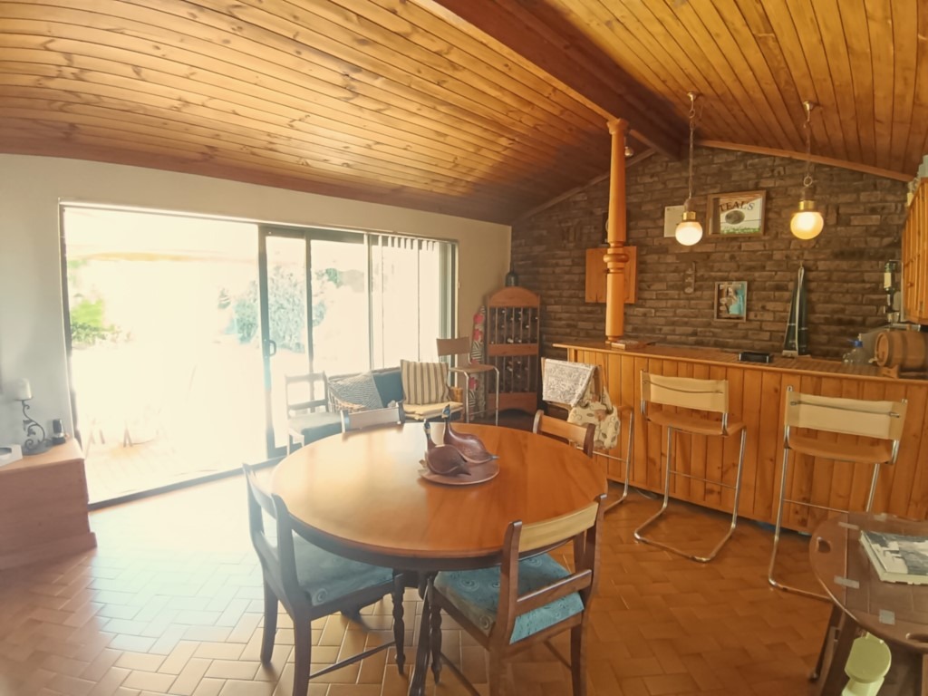 The kitchen is thoughtfully designed with an adjoining dining area, creating a warm and functional hub for family meals.
