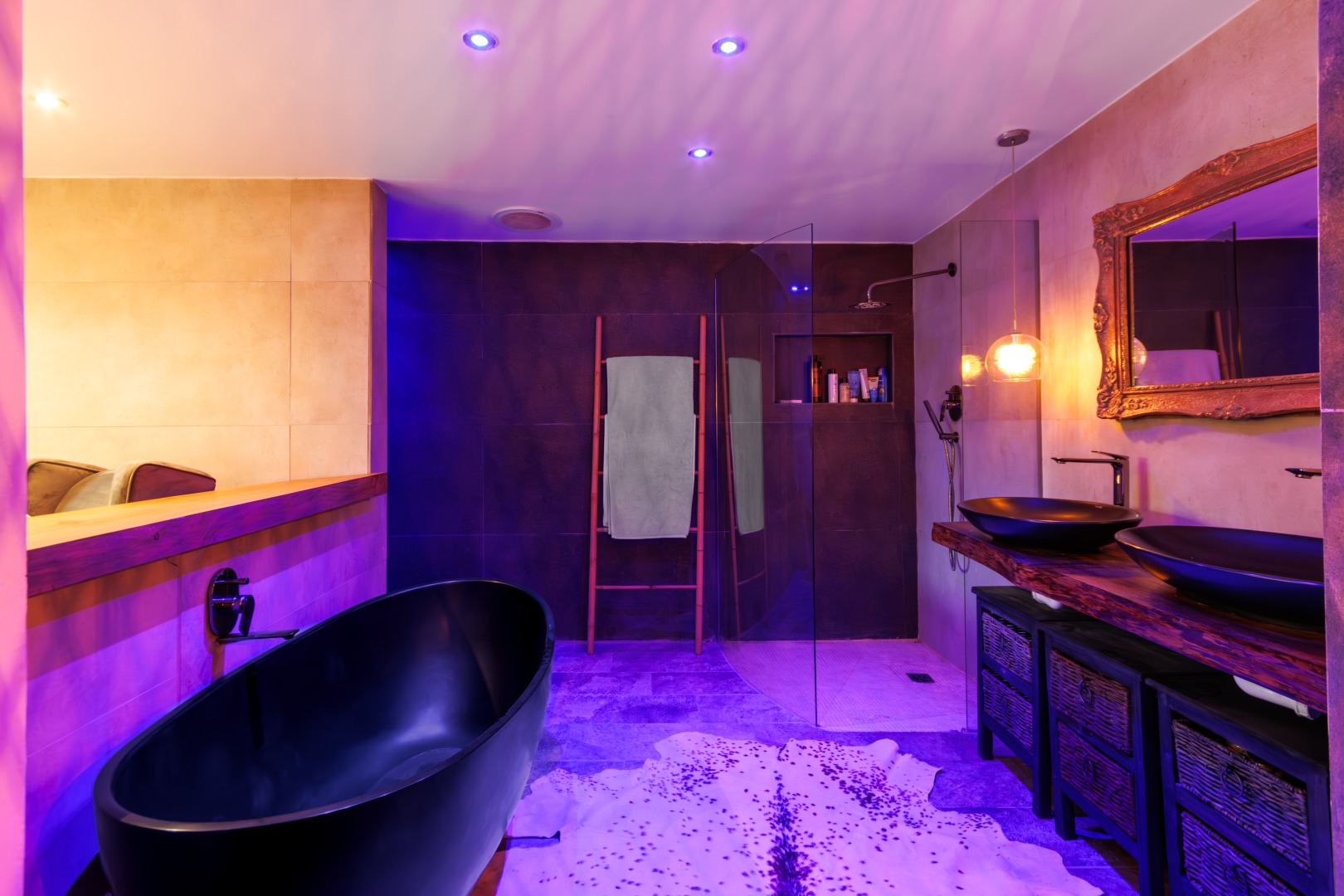 - Bathrooms and kitchen redesigned with walls, kitchen island and sanitary ware in granite.