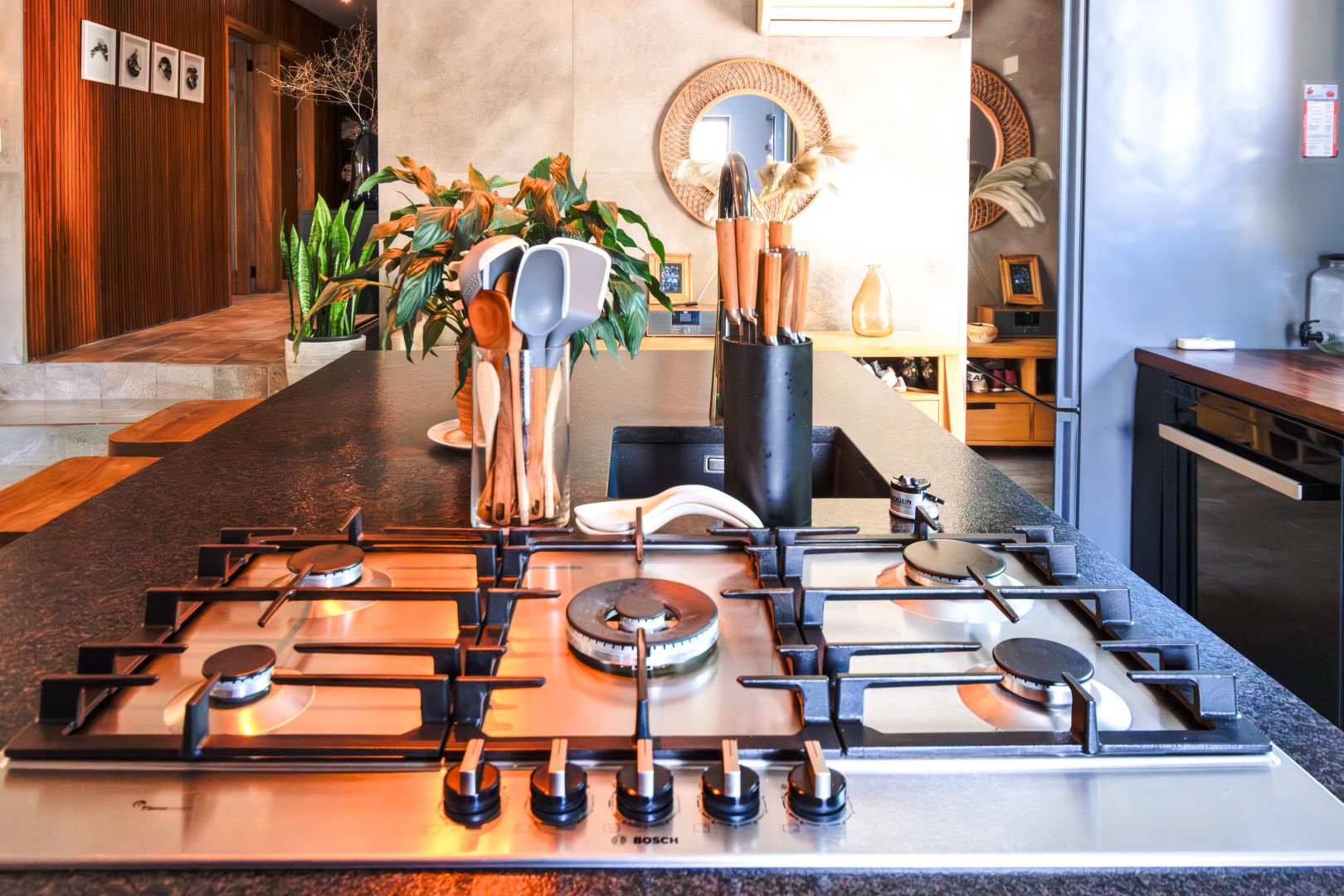 The home’s finishes are timeless, high-end, and carefully selected to complement the Industrial-Japandi design ethos.