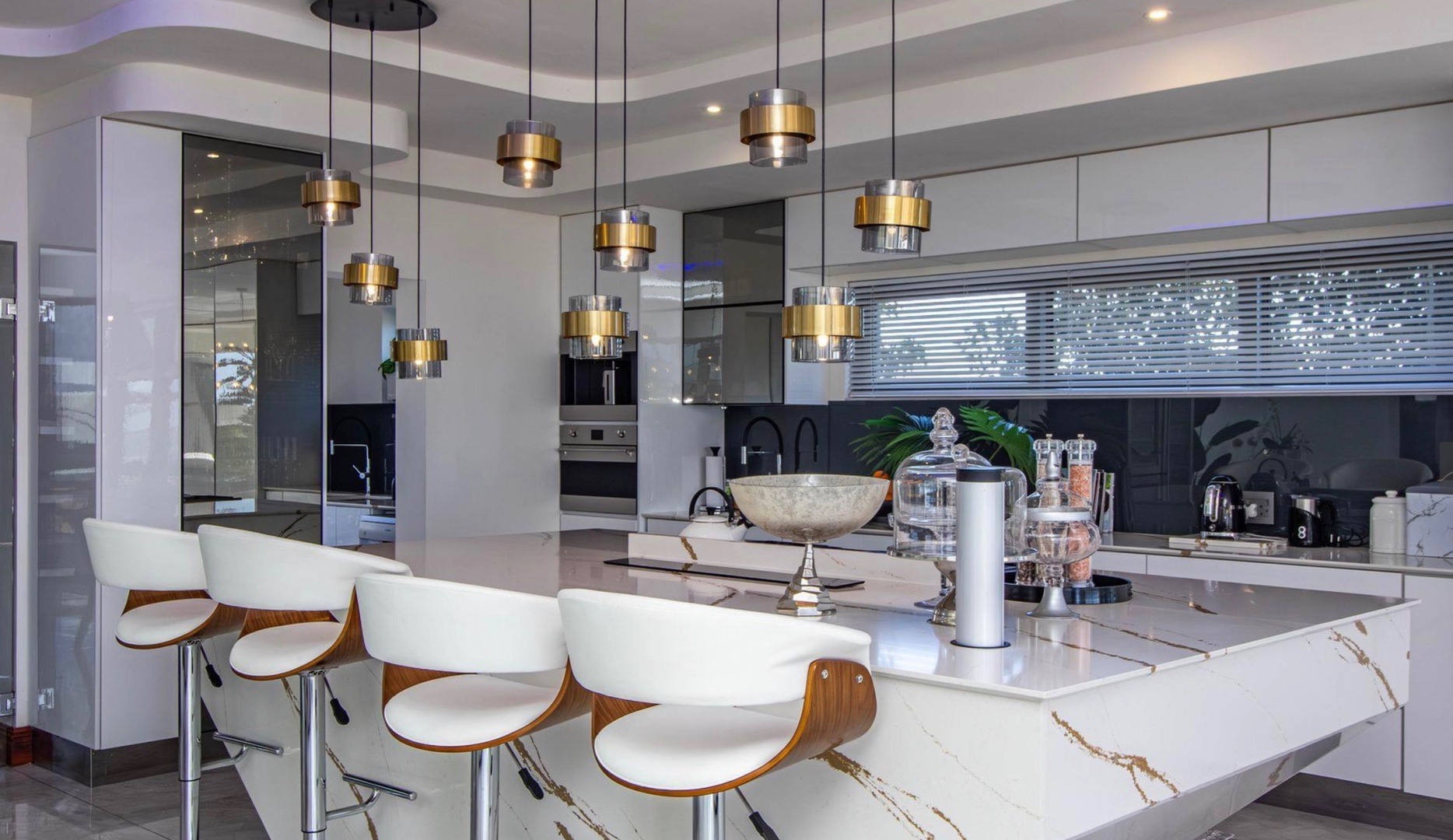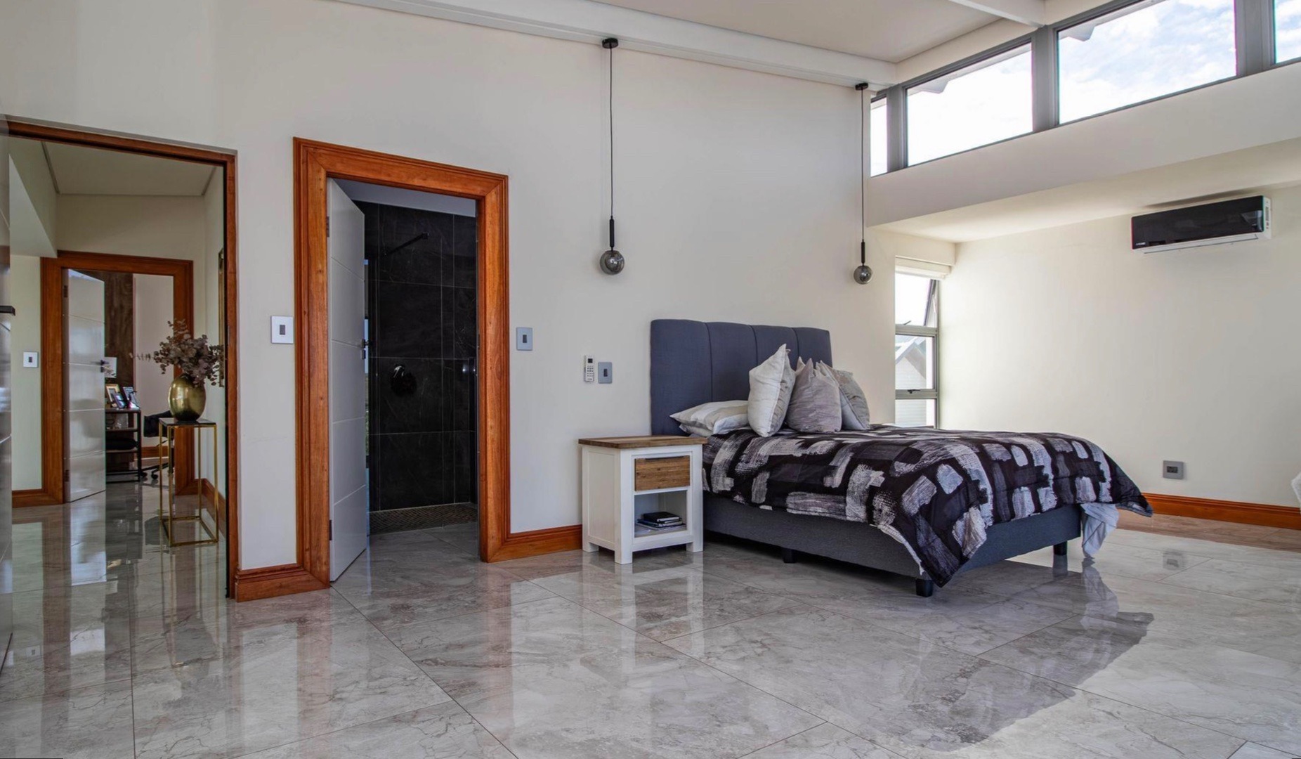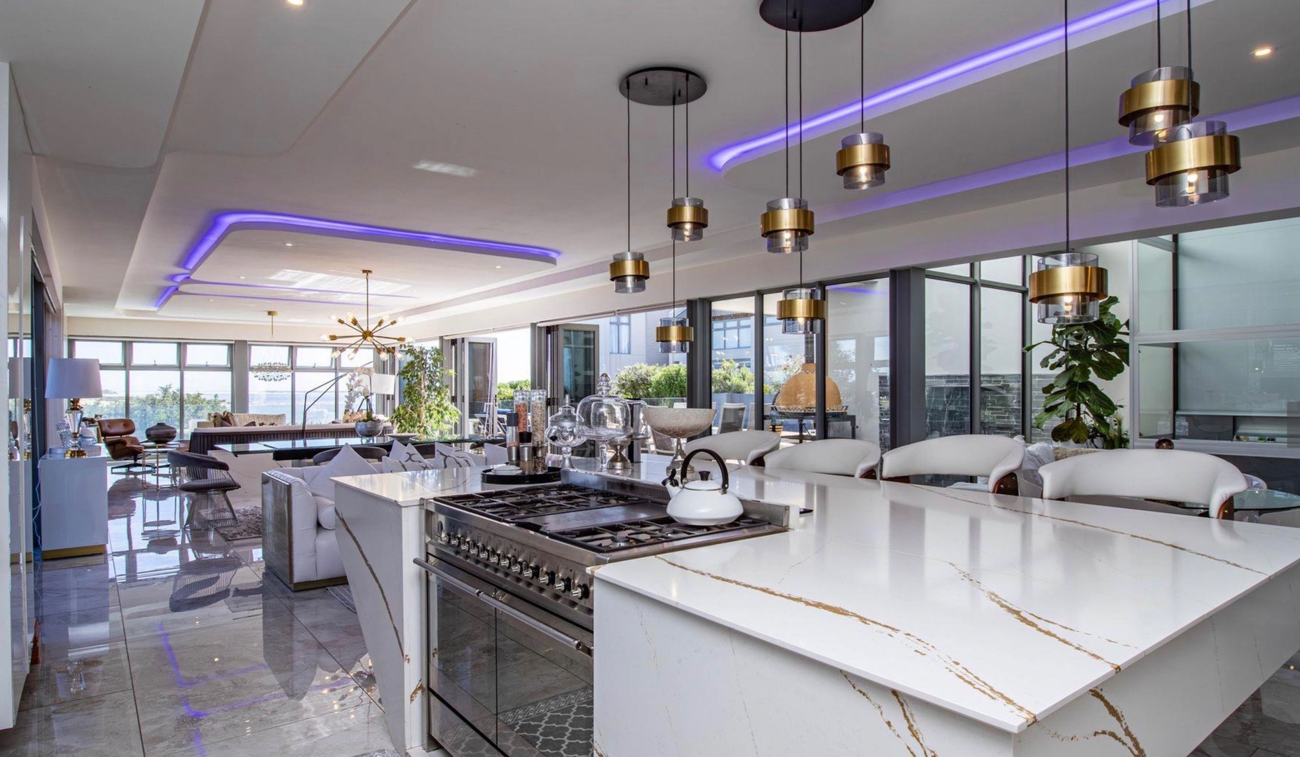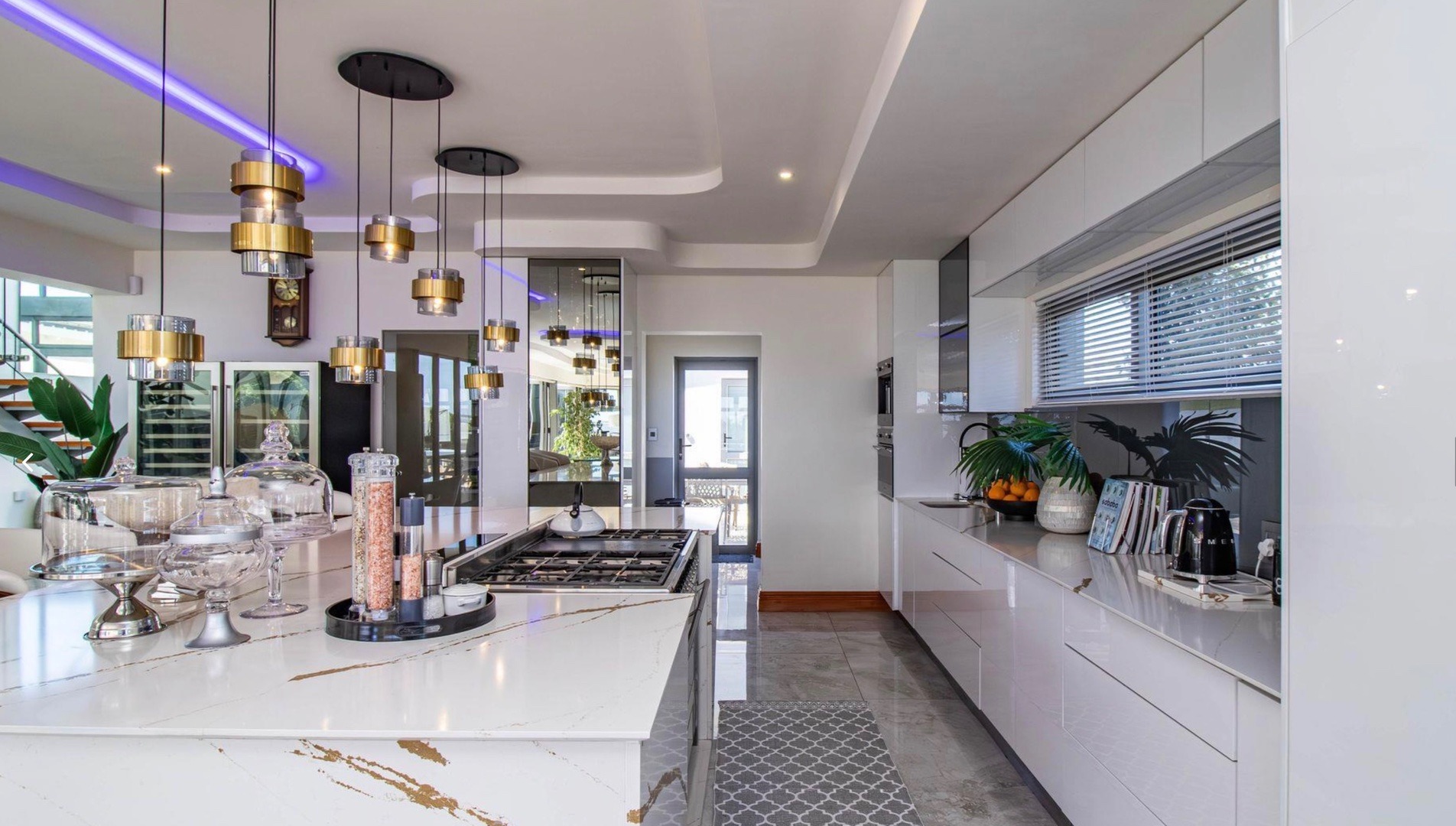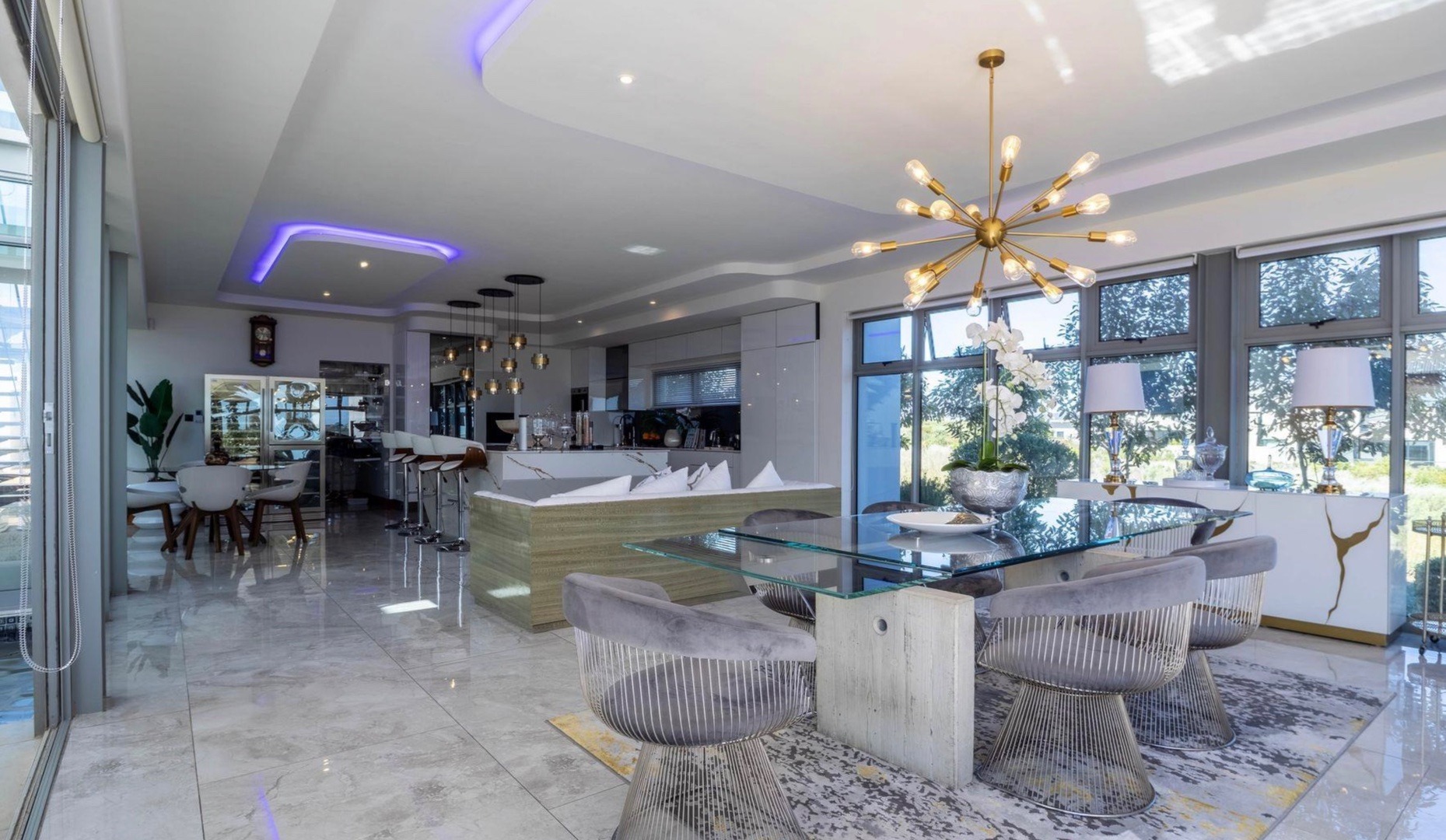 From the moment you enter, the home impresses with a double volume interior, expansive glass walls and imported marble flooring throughout. The contemporary open-plan kitchen offers bespoke fitted cabinetry, a double eye-level oven, stone countertops and a stylish breakfast bar. Sun-filled living areas flow seamlessly onto the outdoor entertainment spaces, creating an effortless indoor/outdoor lifestyle. All bedrooms are generously proportioned and bathed in natural light, each featuring a modern full en-suite bathroom and beautiful views.