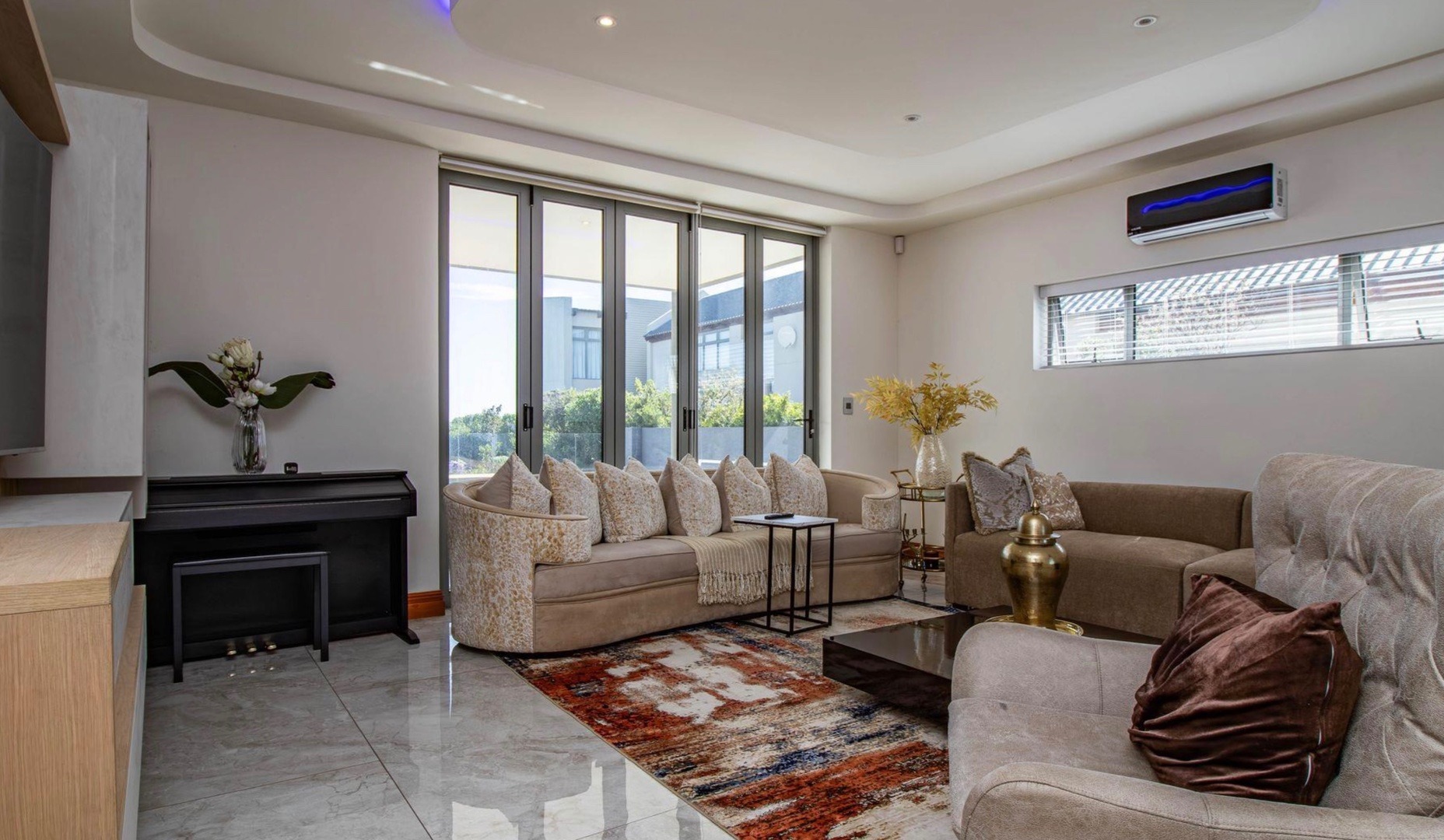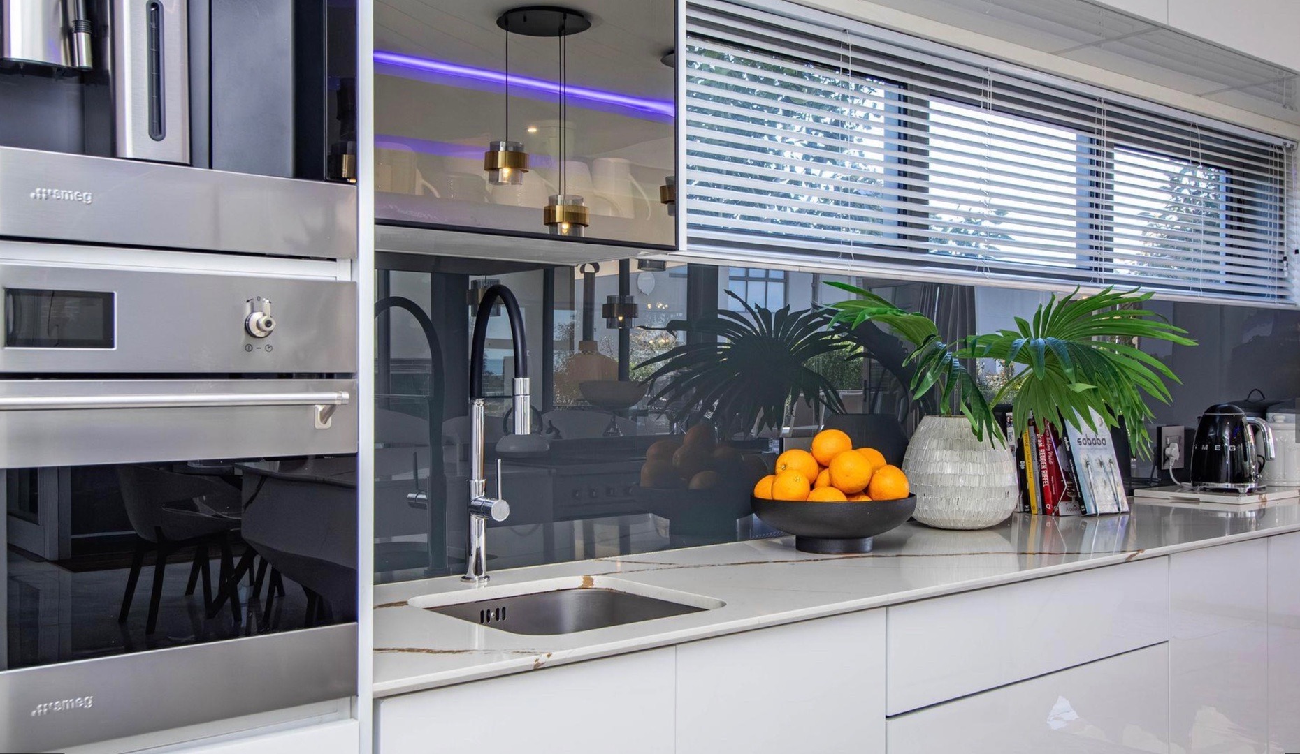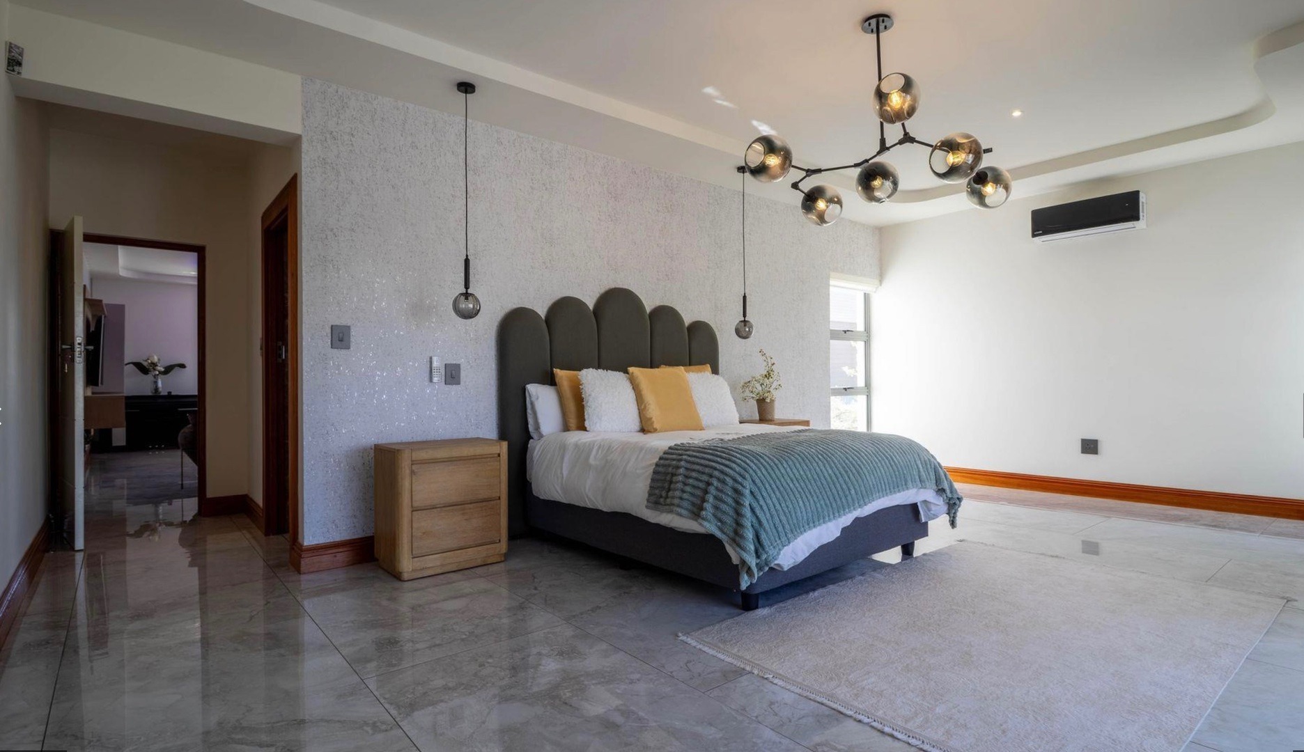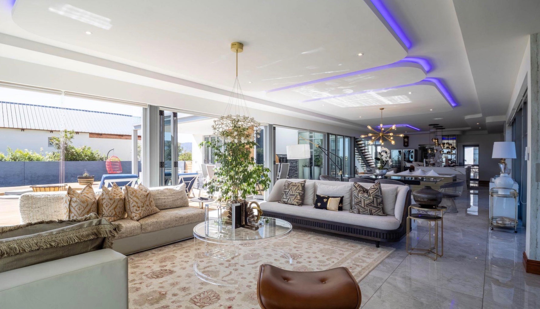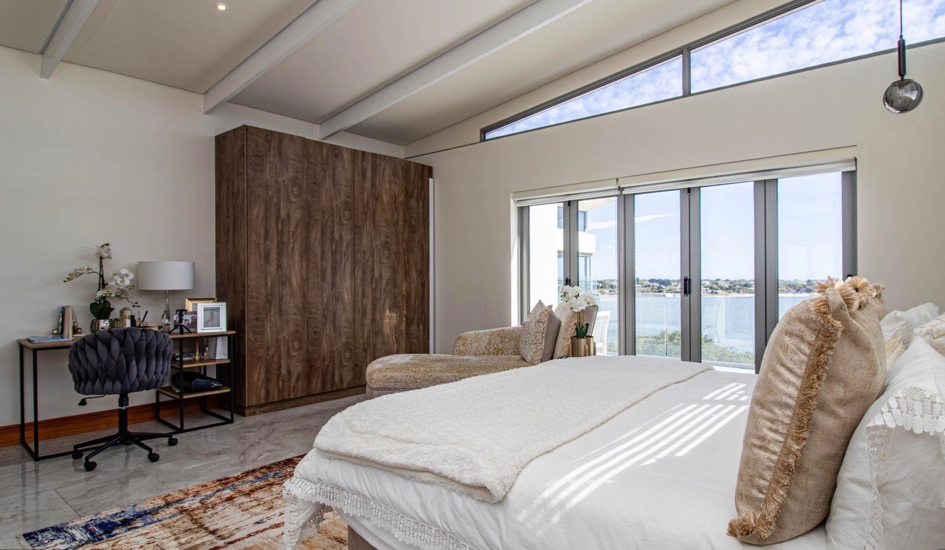 From the moment you enter, the home impresses with a double volume interior, expansive glass walls and imported marble flooring throughout. The contemporary open-plan kitchen offers bespoke fitted cabinetry, a double eye-level oven, stone countertops and a stylish breakfast bar. Sun-filled living areas flow seamlessly onto the outdoor entertainment spaces, creating an effortless indoor/outdoor lifestyle. All bedrooms are generously proportioned and bathed in natural light, each featuring a modern full en-suite bathroom and beautiful views.