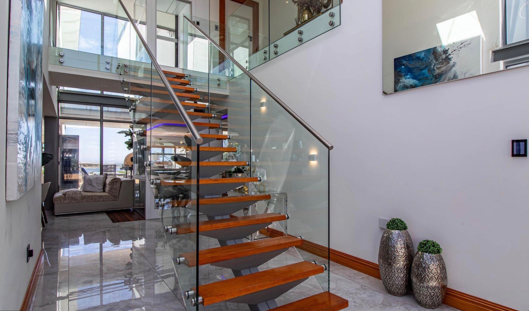 - An impressive glass Lift & custom floating staircase ensure effortless movement between floors