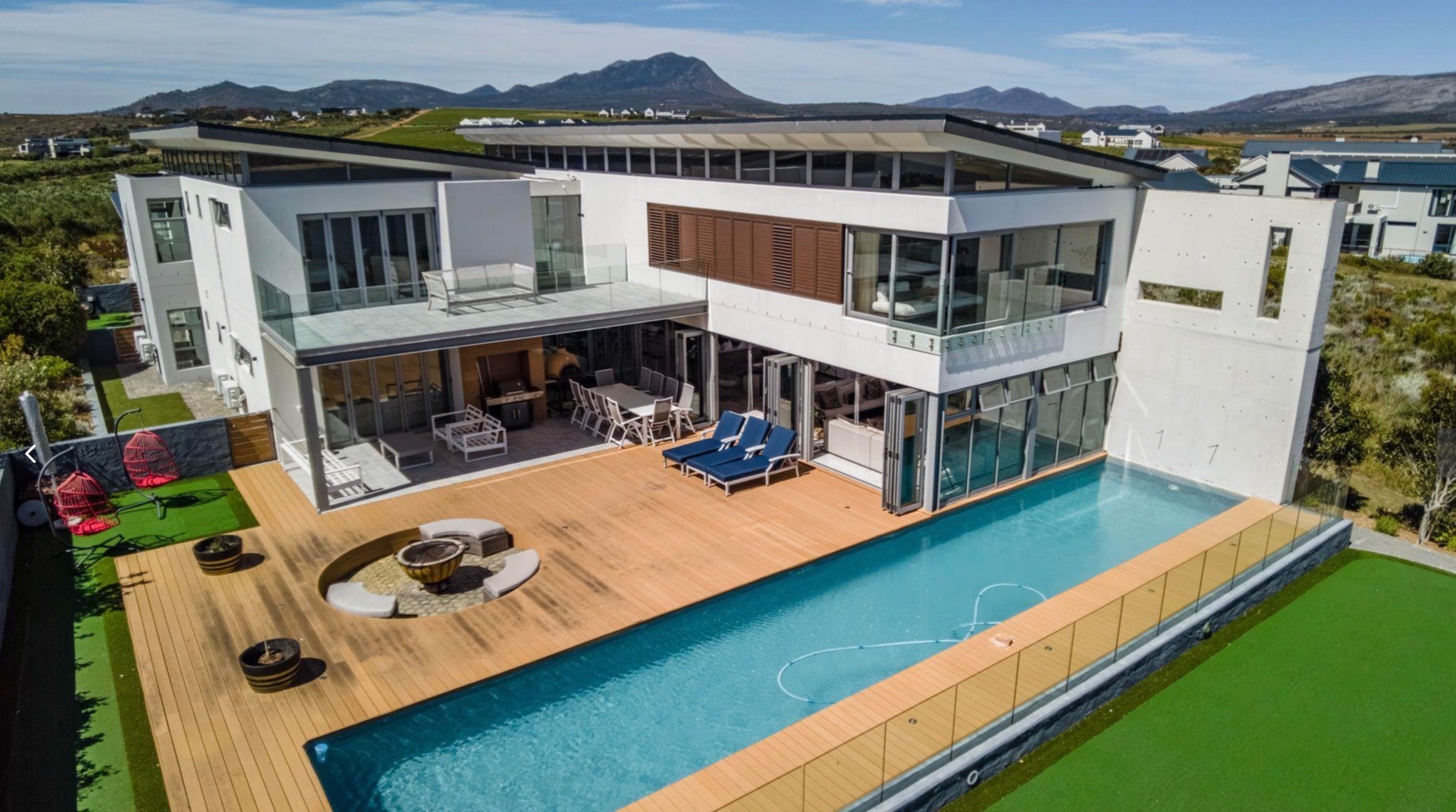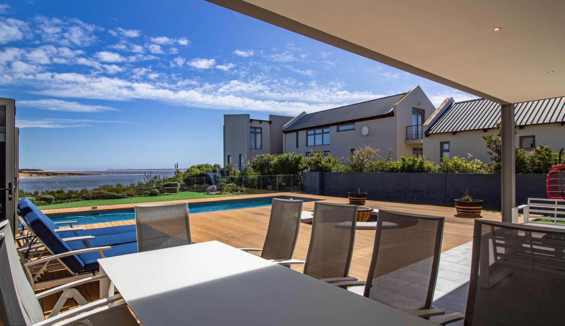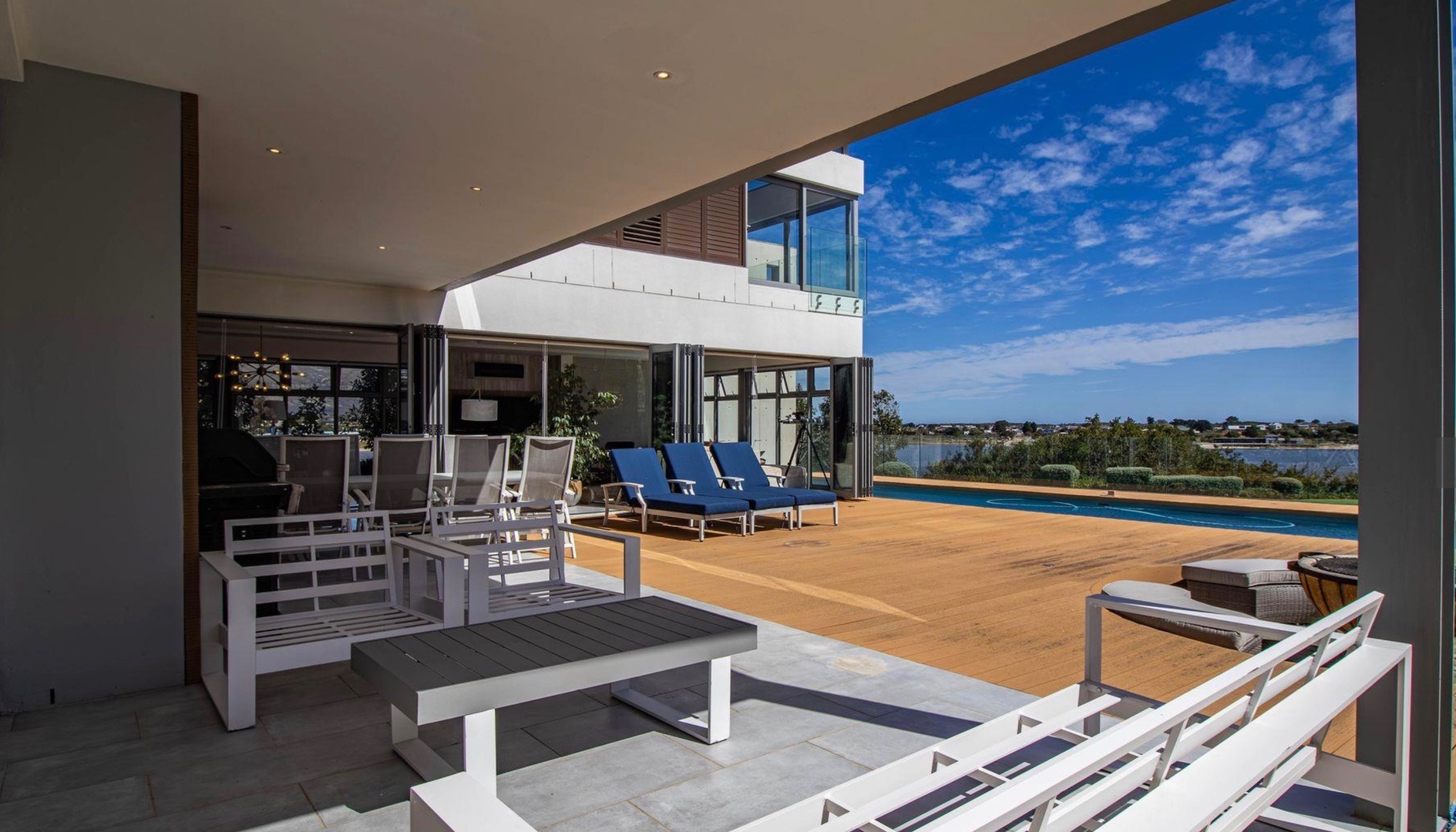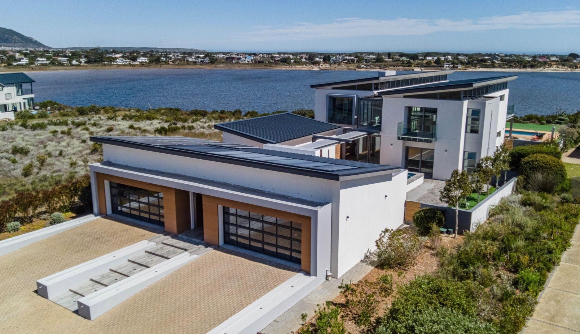 Fall in love with this architectural masterpiece set on the water’s edge, offering sweeping views of the Bot River lagoon, mountain, the sea in the distance and a serene backdrop of Vine & Olive Orchards. Located at the prestigious Benguela Cove Lagoon Wine Estate, this exceptional residence is a rare offering of contemporary design, created for discerning buyers seeking a world class holiday retreat or high end lifestyle investment, this home delivers privacy, sophistication and effortless indoor/outdoor living.
