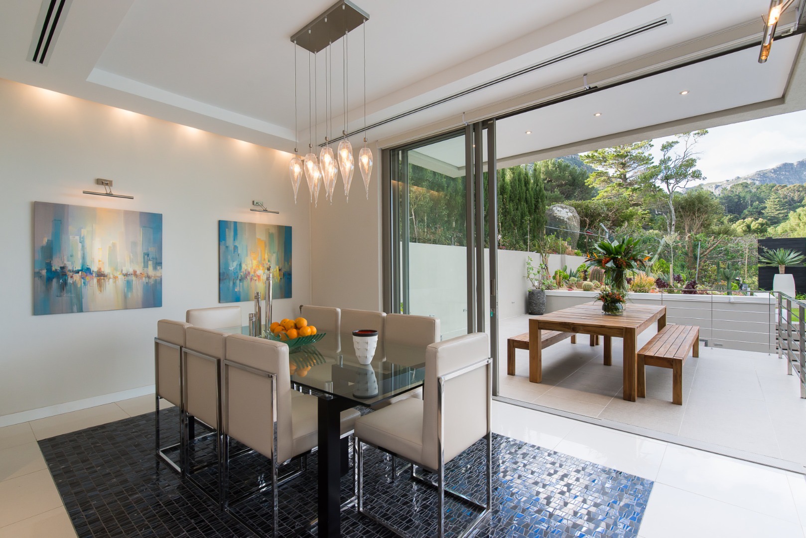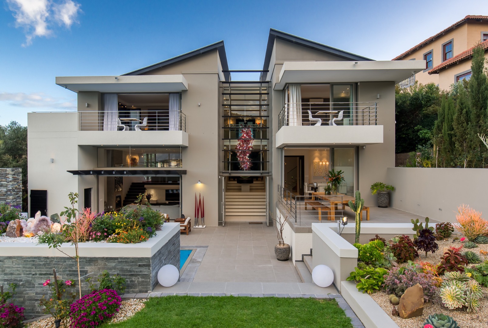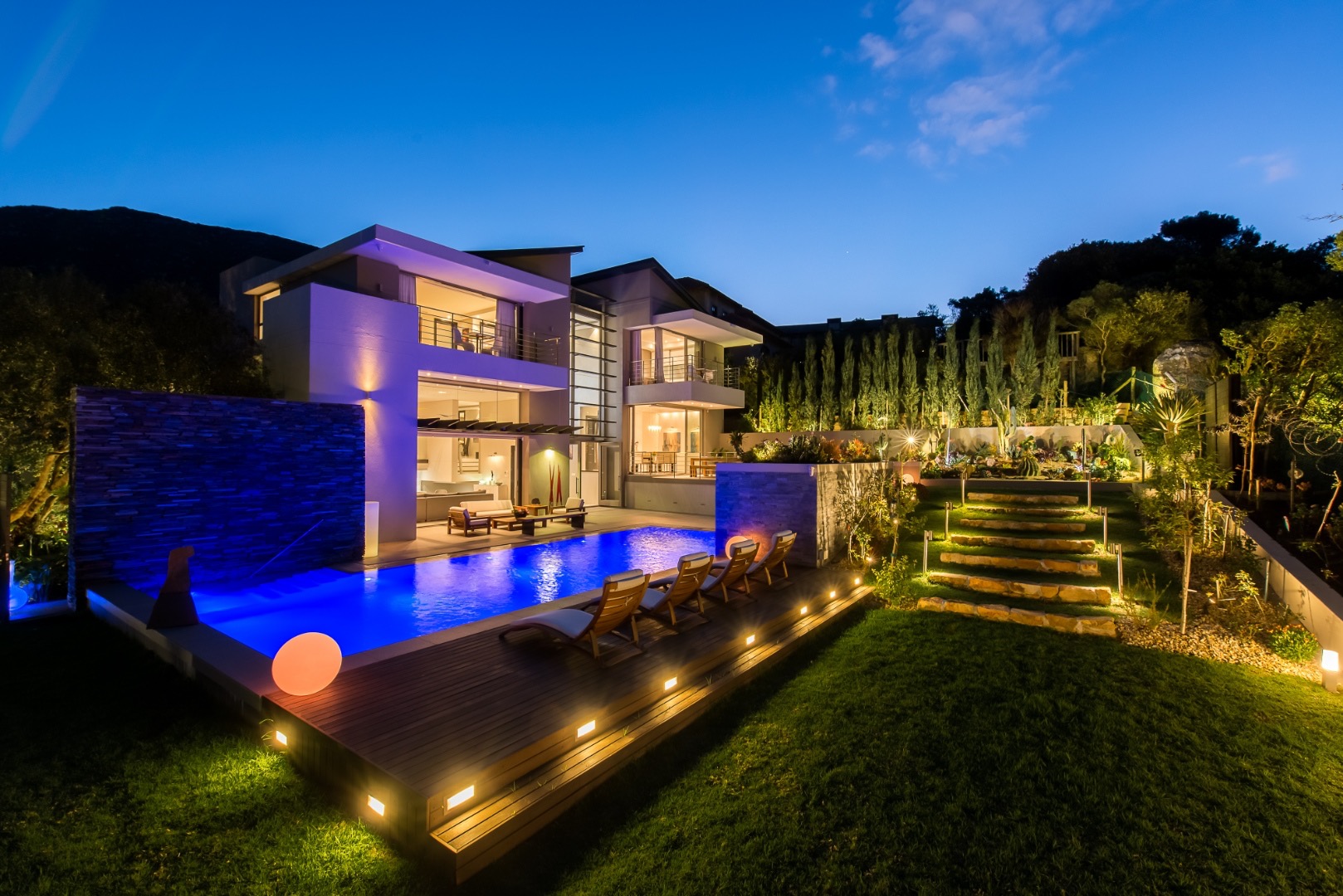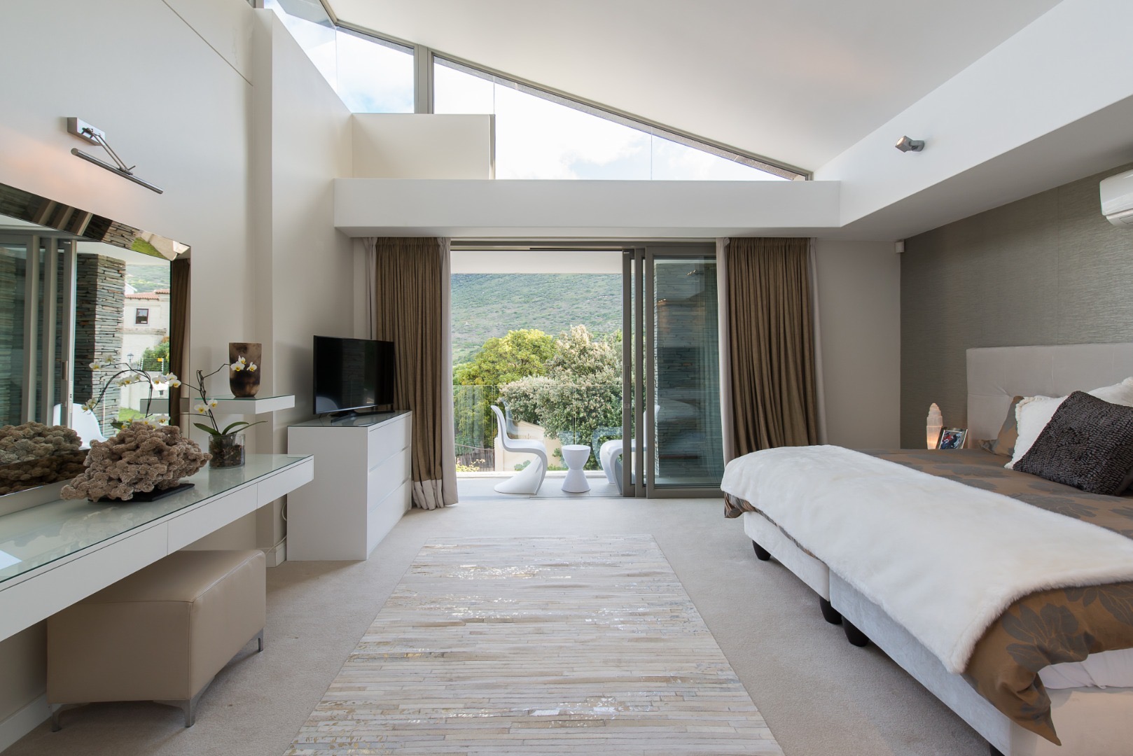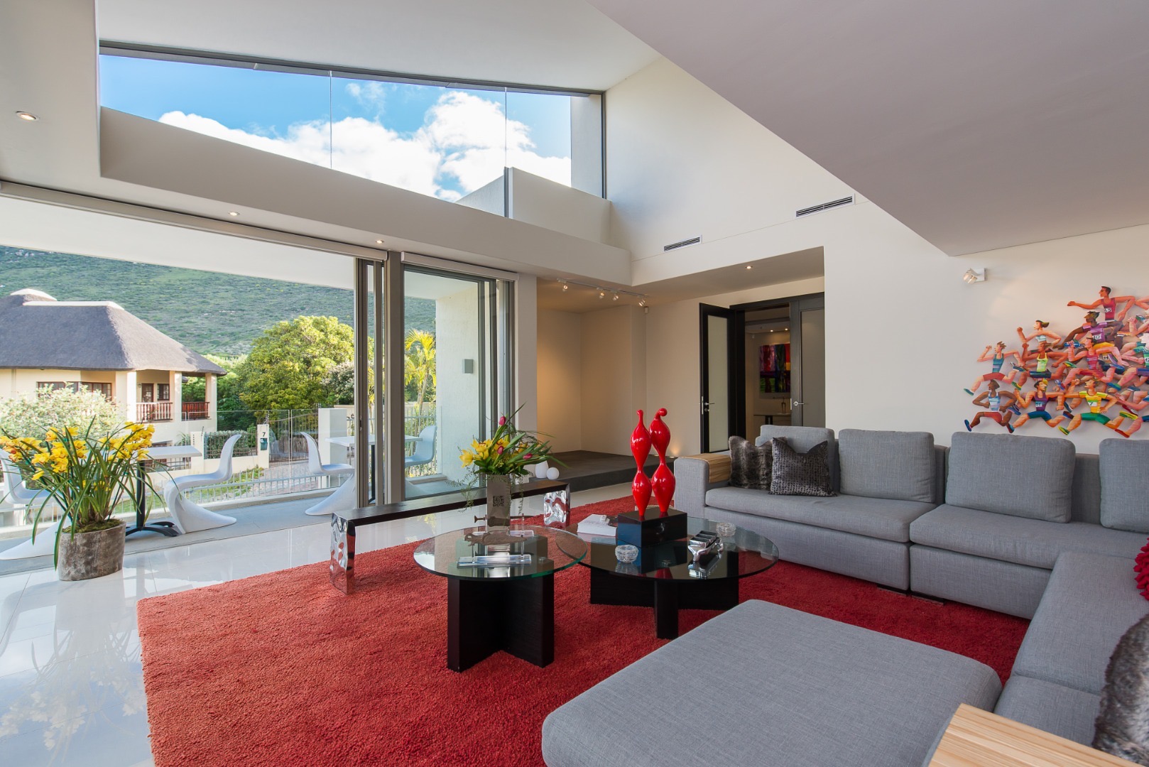 Experience unparalleled luxury and panoramic sea and mountain vistas at this exquisite Hout Bay Villa, where modern minimalism meets timeless sophistication. Elevated atop a scenic mountain, this immaculate residence boasts breathtaking views of both the sea and majestic mountains, offering a serene retreat amidst nature's splendor. Step into the grand entrance of this luxurious home, where space and privacy abound. The meticulously manicured garden, adorned with a large heated swimming pool, water feature, and inviting Jacuzzi, beckons you to indulge in outdoor bliss. An outdoor fireplace for unforgettable gatherings under the starlit sky. Through walls of windows, the beauty of the surrounding nature reserve landscape seamlessly merges with the sleek interior design. Each corner of this villa exudes opulence, with curated artworks and impeccable design features that elevate the living experience. Two spacious and light-filled reception rooms, with high ceilings, extend effortlessly onto a balcony and the pool patio, offering seamless indoor-outdoor living. Separate modernkitchen, with utility room A formal dining room leading to a BBQ patio, perfect for alfresco dining. Retreat to one of the four generously proportioned bedrooms, each boasting en-suite facilities for ultimate comfort and convenience. Three bedrooms open onto balconies, treating you to stunning views—one with captivating sea vistas and two with magnificent garden and mountain panoramas. The fourth bedroom offers added privacy with its separate entrance. Additional amenities include a Laundry/scullery room, gardener's loo, double garage with direct access, and gated parking for two cars. Fiber internet, DSTV, alarm system with external beams, and CCTV surveillance. Can be sold furnished, this remarkable residence awaits those with discerning taste and a penchant for luxury living. Come discover the epitome of coastal elegance—it must be seen to be fully appreciated.