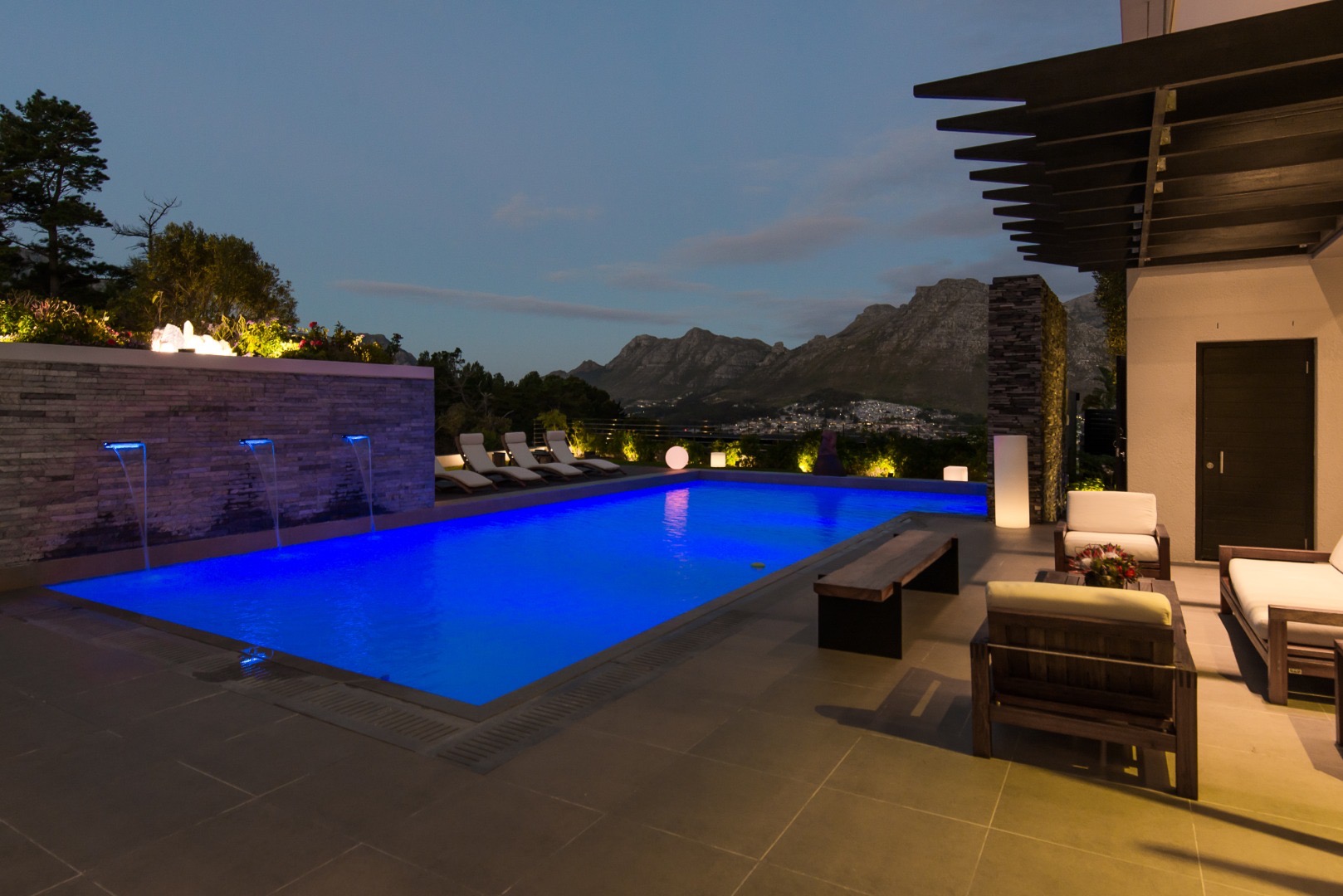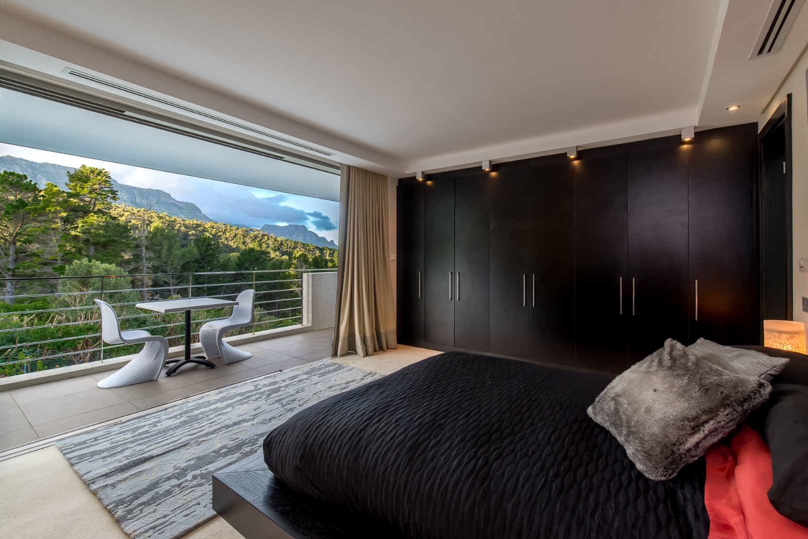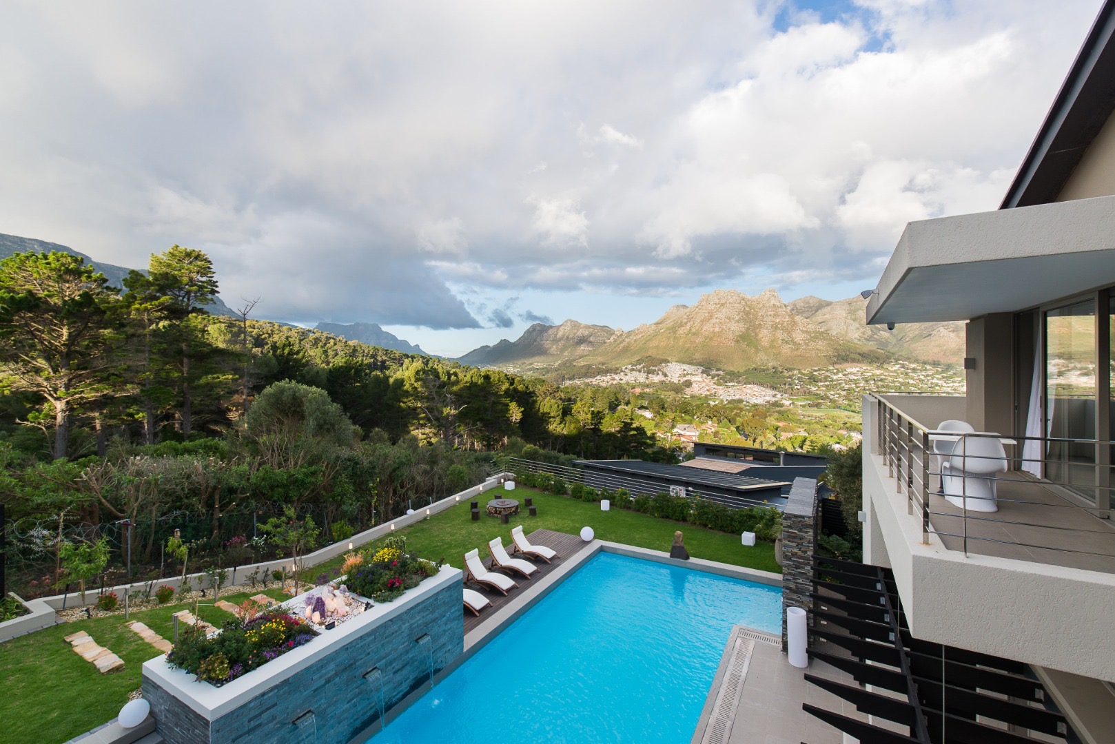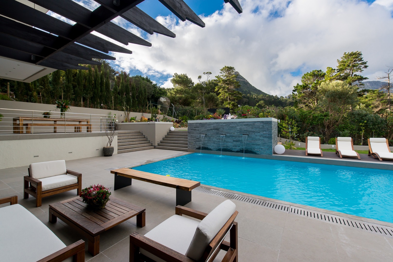 Experience unparalleled luxury and panoramic sea and mountain vistas at this exquisite Hout Bay Villa, where modern minimalism meets timeless sophistication. Elevated atop a scenic mountain, this immaculate residence boasts breathtaking views of both the sea and majestic mountains, offering a serene retreat amidst nature's splendor. Step into the grand entrance of this luxurious home, where space and privacy abound. The meticulously manicured garden, adorned with a large heated swimming pool, water feature, and inviting Jacuzzi, beckons you to indulge in outdoor bliss. An outdoor fireplace for unforgettable gatherings under the starlit sky. Through walls of windows, the beauty of the surrounding nature reserve landscape seamlessly merges with the sleek interior design. Each corner of this villa exudes opulence, with curated artworks and impeccable design features that elevate the living experience. Two spacious and light-filled reception rooms, with high ceilings, extend effortlessly onto a balcony and the pool patio, offering seamless indoor-outdoor living. Separate modernkitchen, with utility room A formal dining room leading to a BBQ patio, perfect for alfresco dining. Retreat to one of the four generously proportioned bedrooms, each boasting en-suite facilities for ultimate comfort and convenience. Three bedrooms open onto balconies, treating you to stunning views—one with captivating sea vistas and two with magnificent garden and mountain panoramas. The fourth bedroom offers added privacy with its separate entrance. Additional amenities include a Laundry/scullery room, gardener's loo, double garage with direct access, and gated parking for two cars. Fiber internet, DSTV, alarm system with external beams, and CCTV surveillance. Can be sold furnished, this remarkable residence awaits those with discerning taste and a penchant for luxury living. Come discover the epitome of coastal elegance—it must be seen to be fully appreciated.