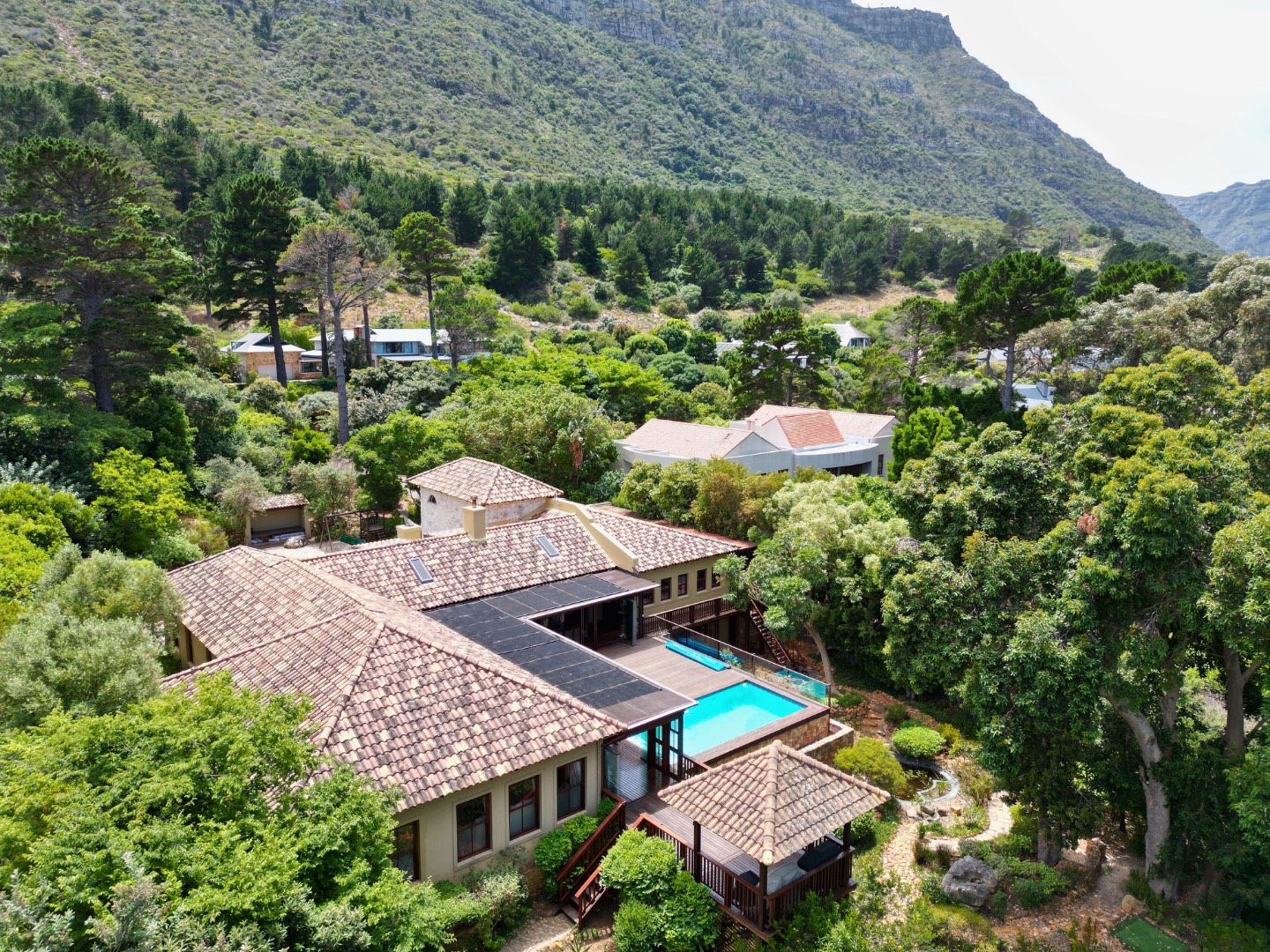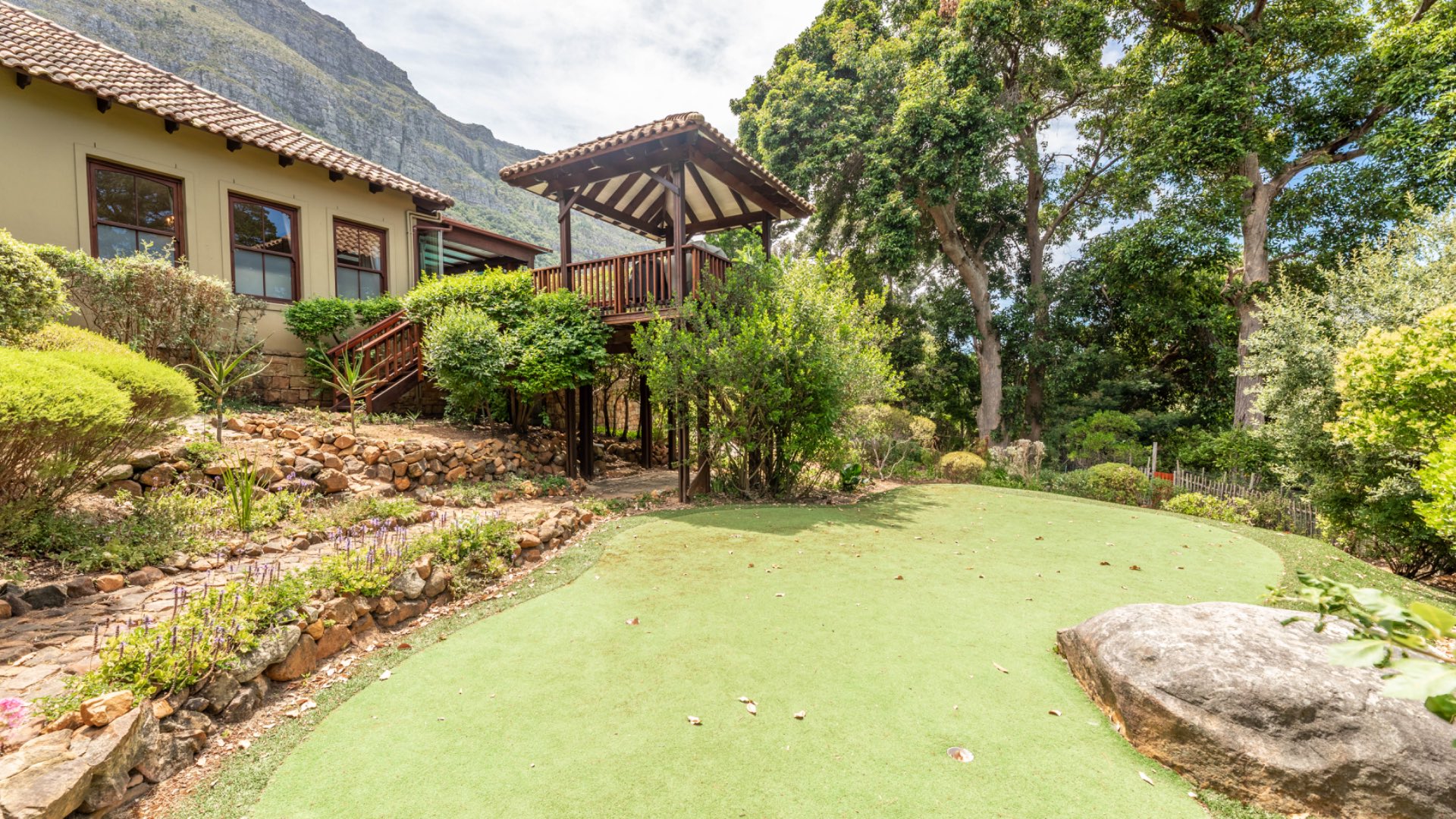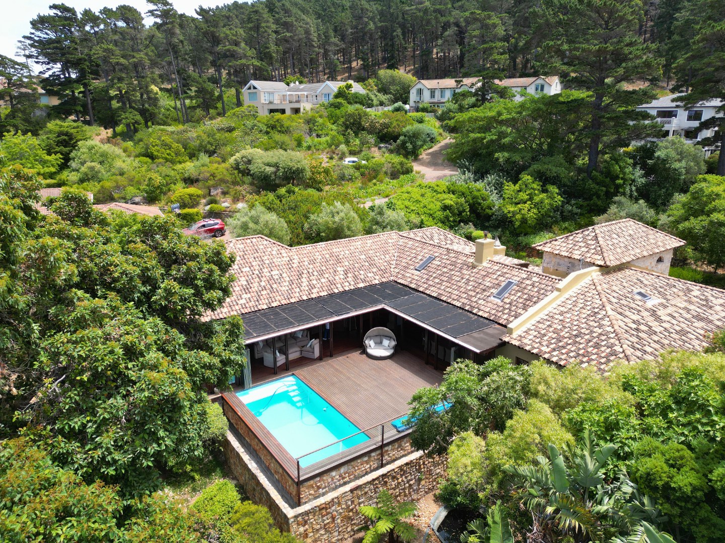 A beautiful classic-contemporary home, designed with every comfort for luxury family living. Situated in the most prestigious security estate in Hout Bay, it boasts spectacular panoramic views of the mountains and sea, walks through the estate and general garden areas.
