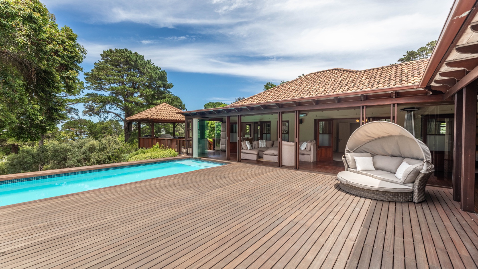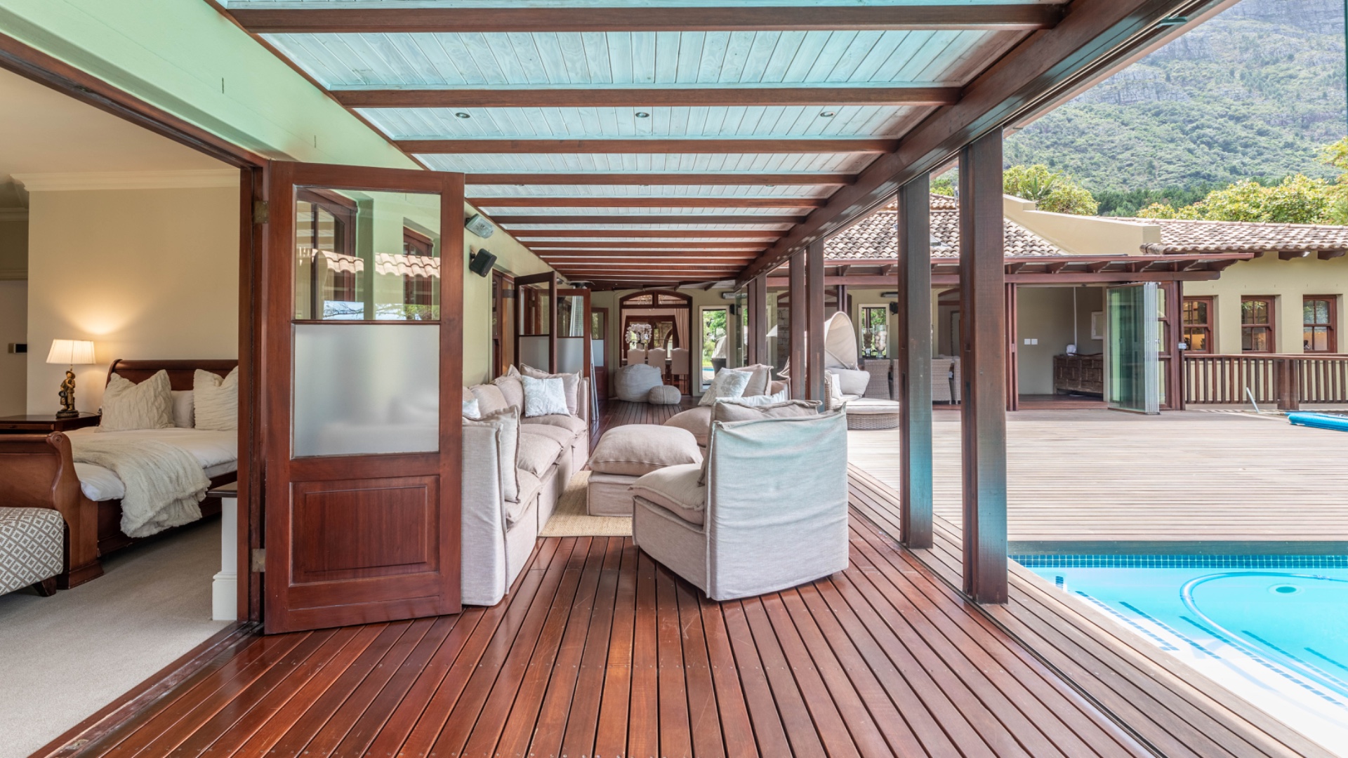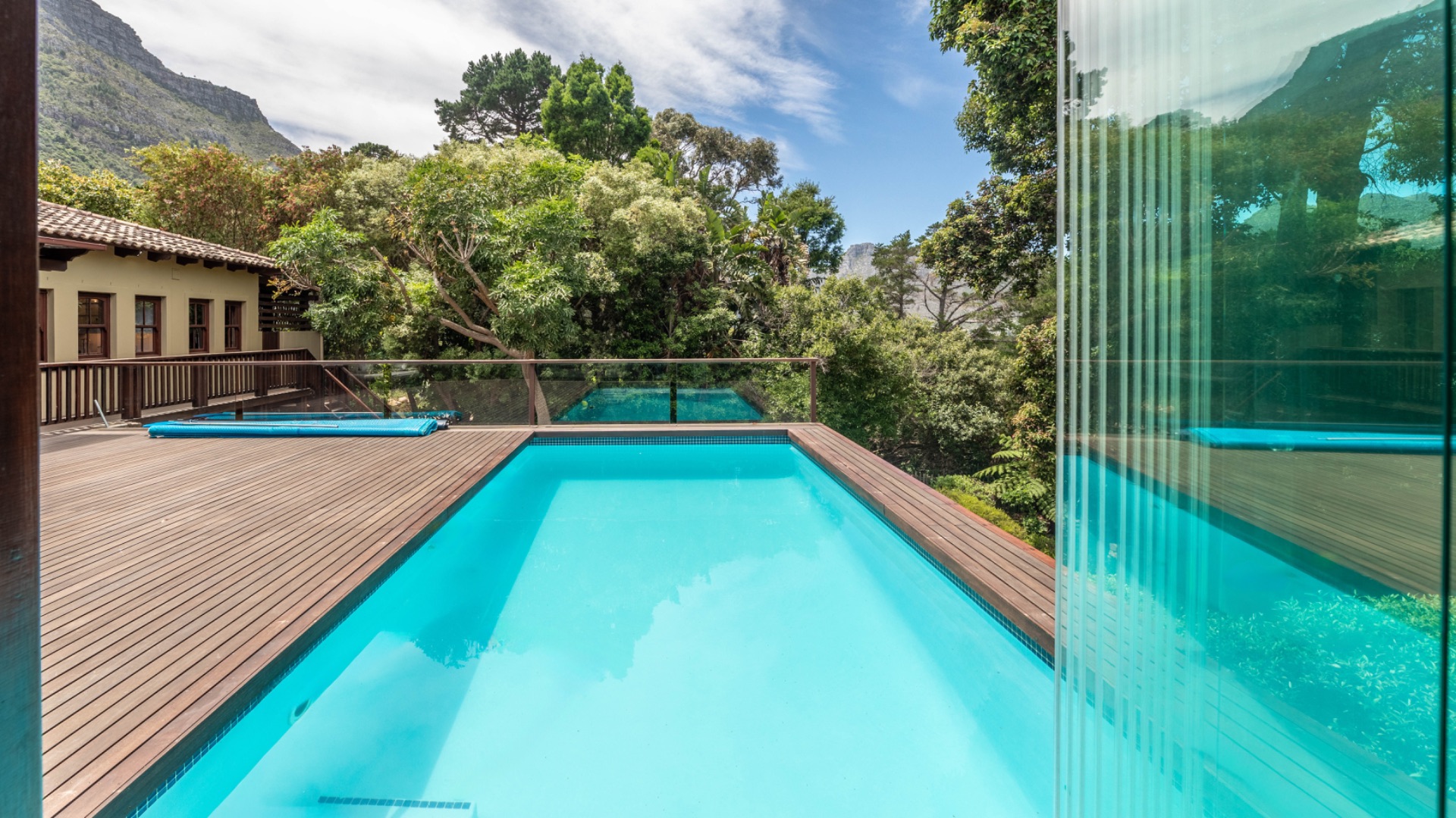 A beautiful classic-contemporary home, designed with every comfort for luxury family living. Situated in the most prestigious security estate in Hout Bay, it boasts spectacular panoramic views of the mountains and sea, walks through the estate and general garden areas.