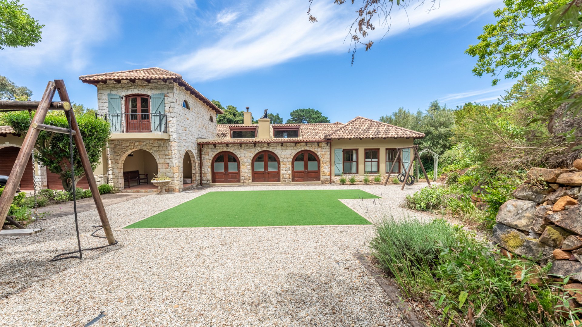 The home features new modern kitchen with white marble tops, and separate utility room, spacious open plan living spaces, and an impressive double-volume entrance. The enclosed patios offer year-round entertainment. It even has a putting green!