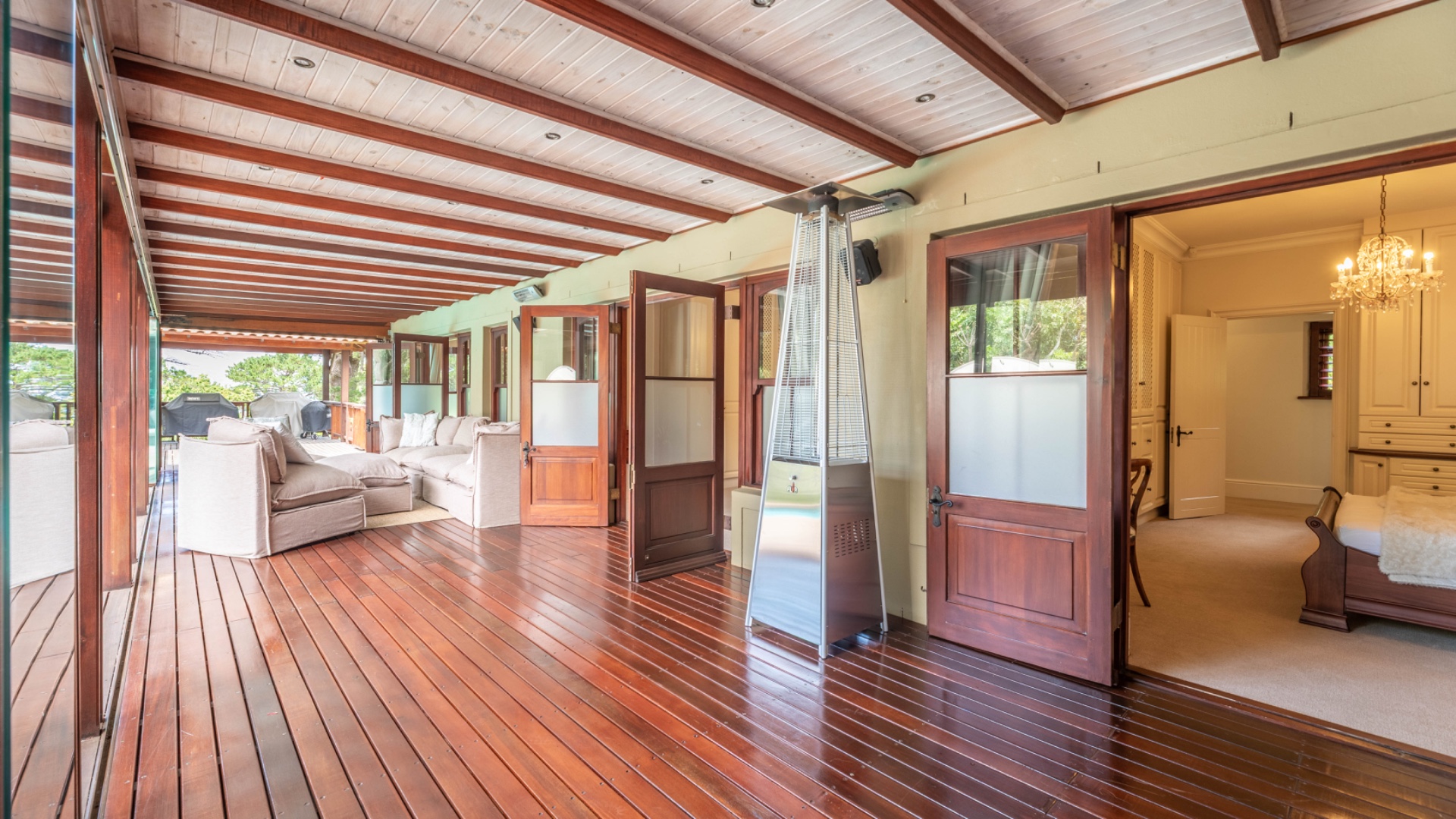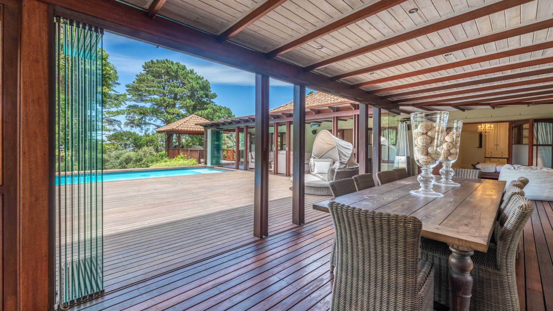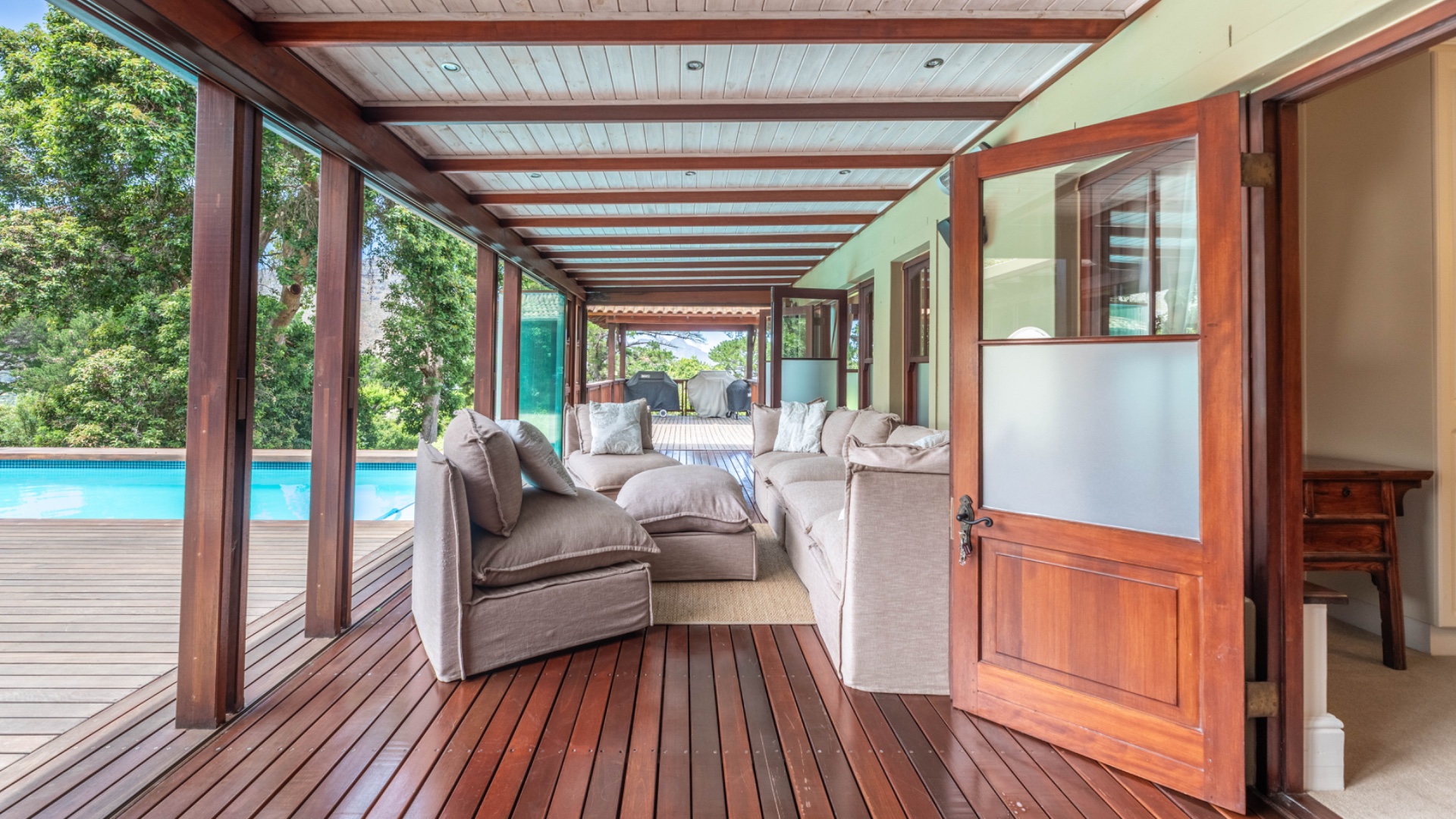 Gracious interior spaces extend onto the enclosed balconies, with seamless glass doors leading out to the landscaped garden and pool, which is solar heated. Built in braai/ room.