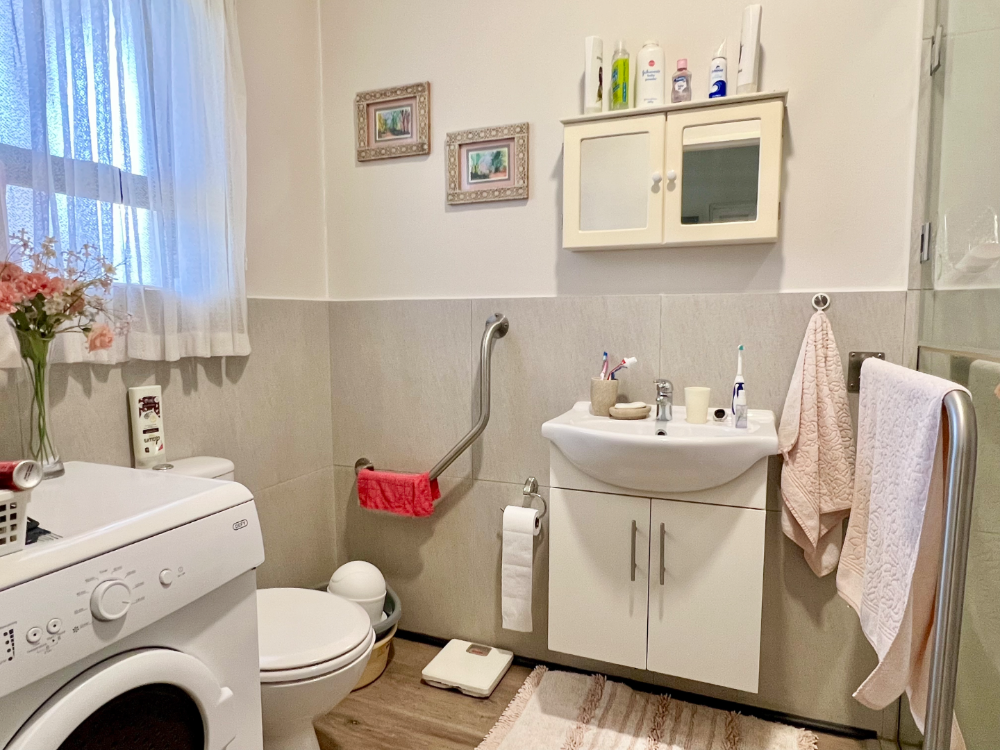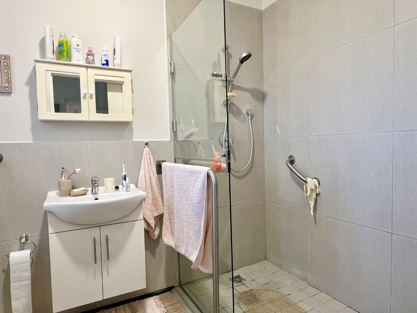 The apartment is tiled throughout with two spacious bedrooms fitted with plenty of built in cupboards and just enough sun streaming through the windows in the morning and late afternoon respectively. Complimented by a good sized bathroom with shower and plenty of space for a washing machine plus there are raining for assistance.