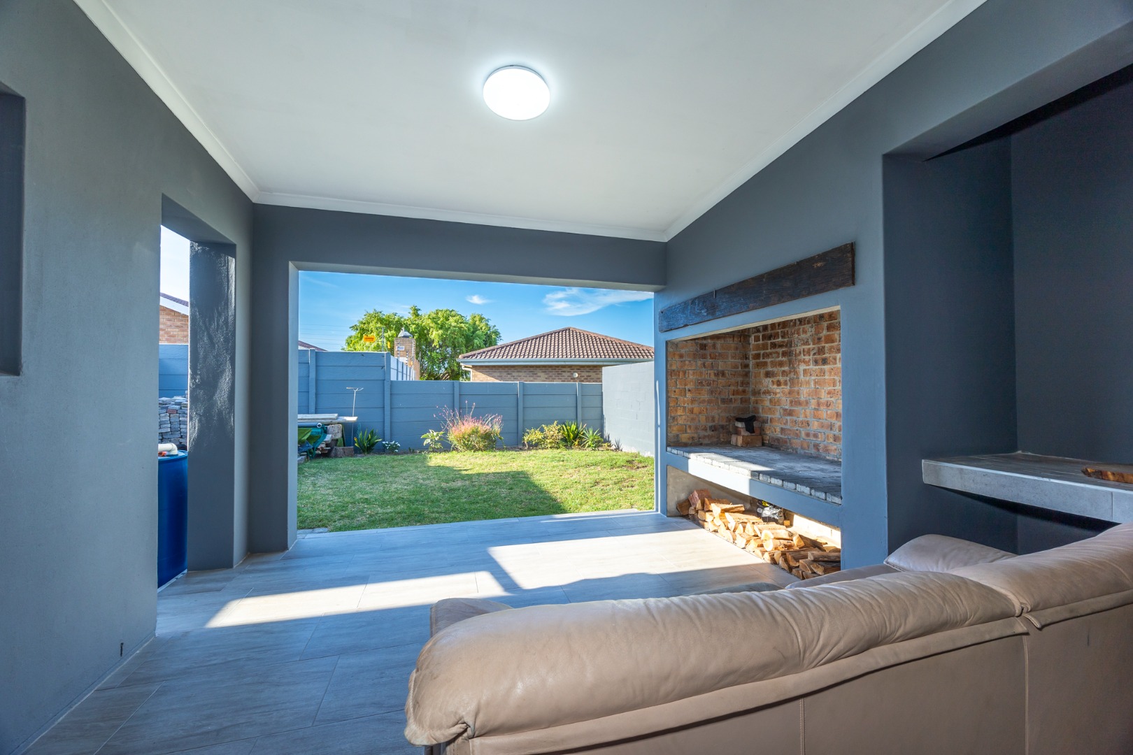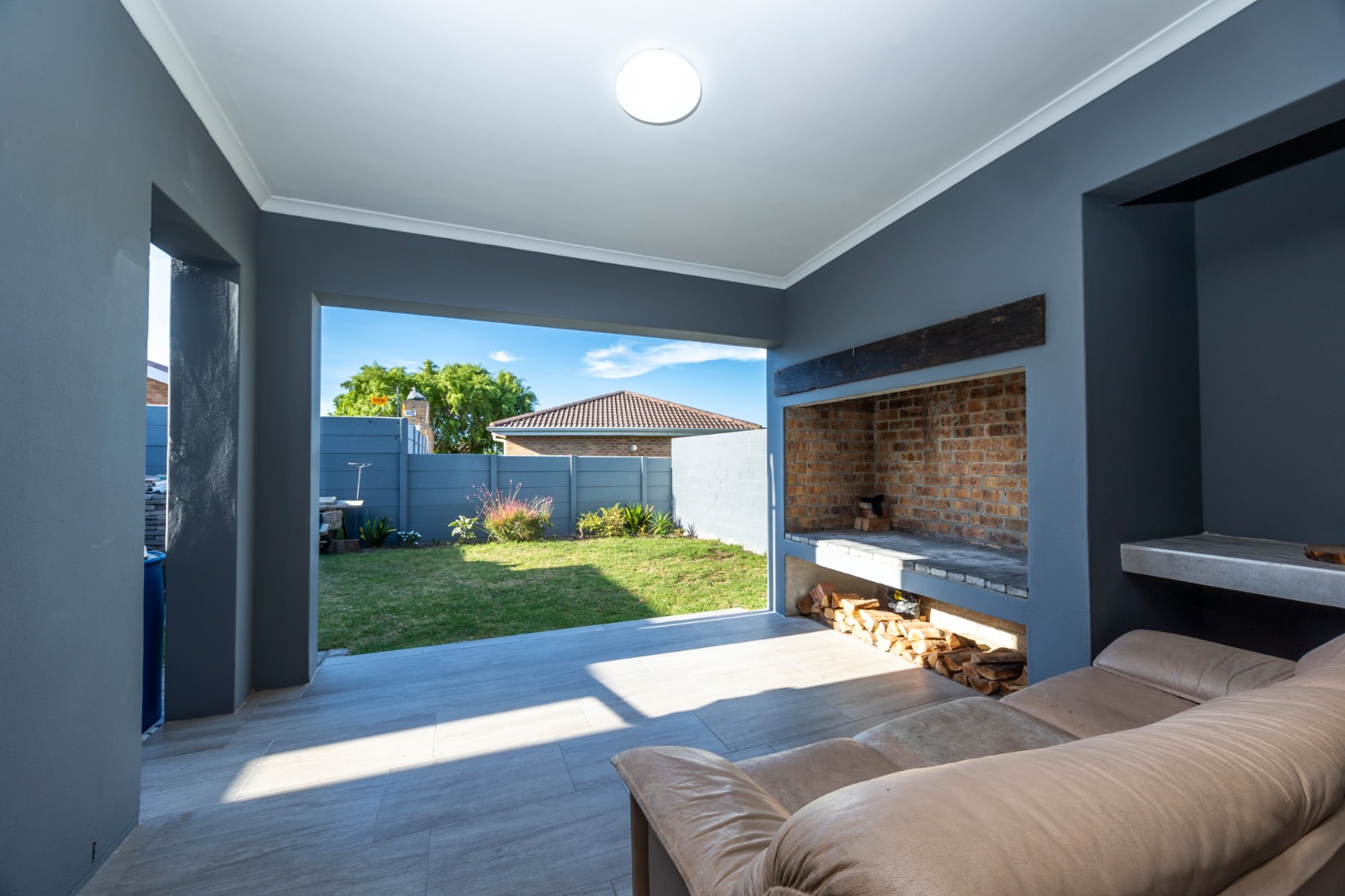 into a large, enclosed braai room, perfect for year-round gatherings with