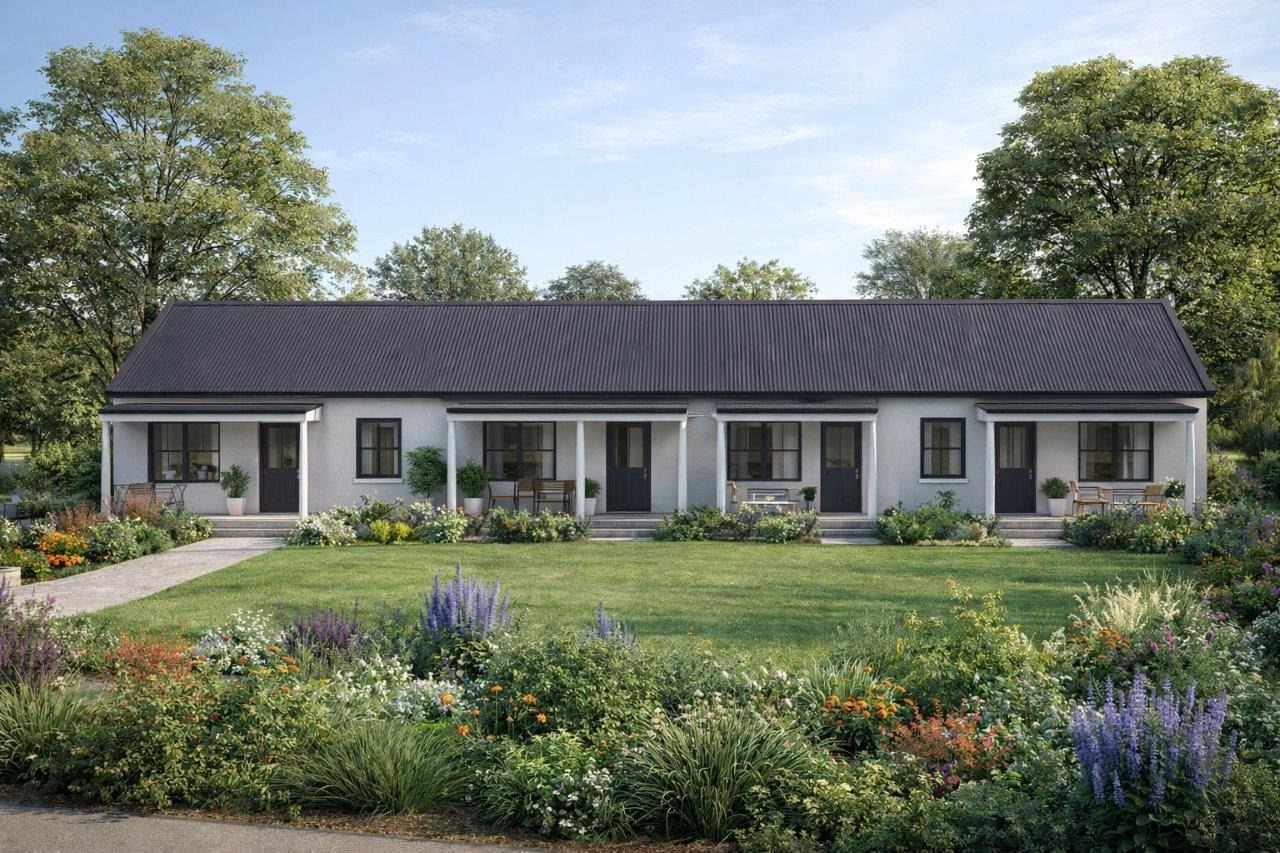 Plot and plan option available with architects impression of the type of lovely Farmhouse that can be built.