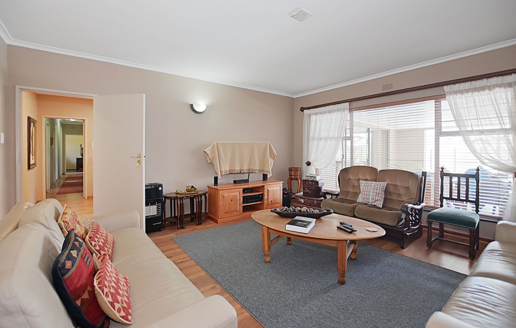 This lovely home is perfect for a family that wants space, comfort, and great areas to relax or entertain. It has 4 bedrooms (all with built-in cupboards) and 2 bathrooms. There’s also a linen cupboard in the hallway and a walk-in storeroom with shelves for extra storage.