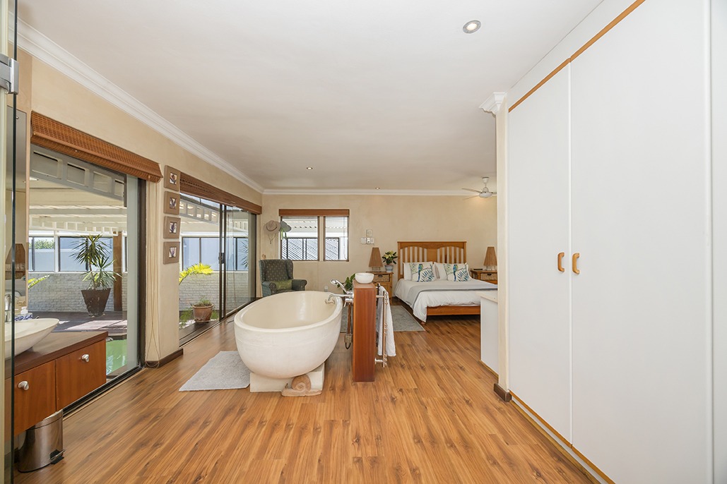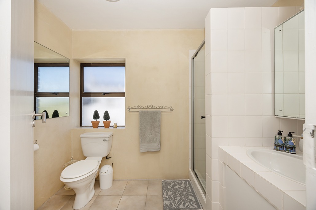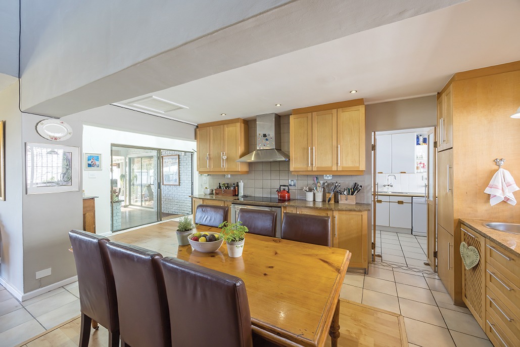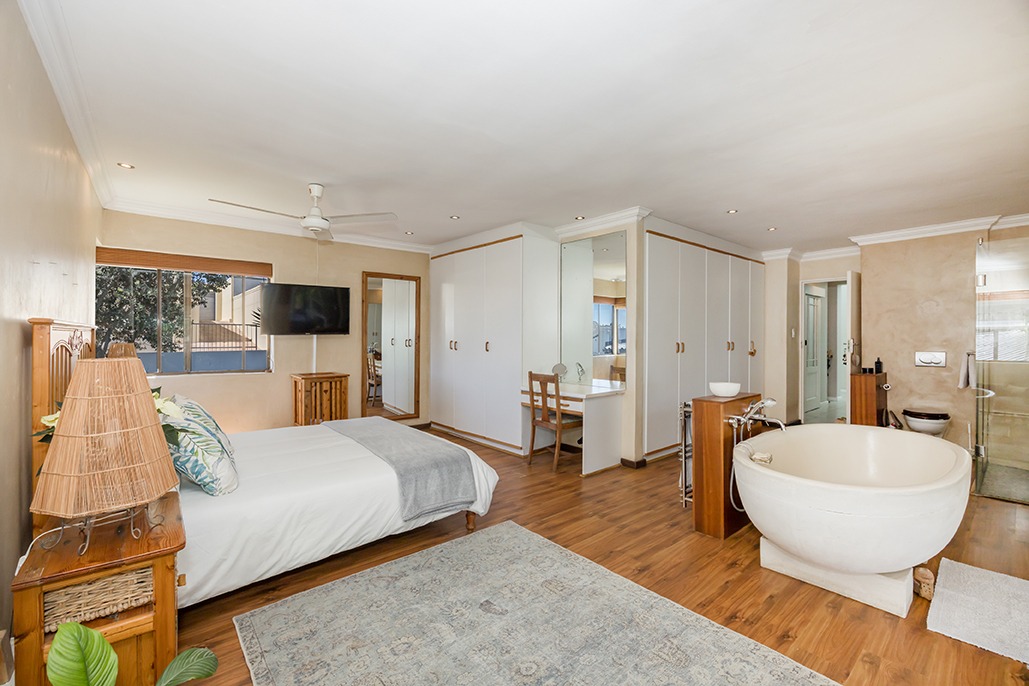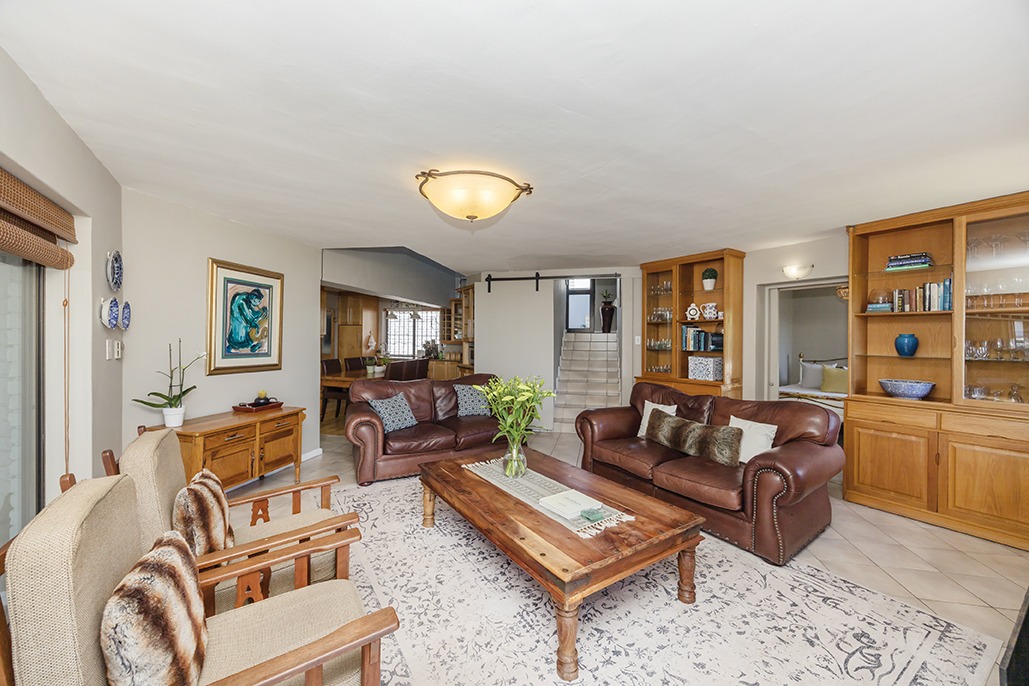 Upstairs, a spectacular living room with built-in braai offers panoramic views of both the ocean and Table Mountain. The fourth en-suite bedroom is located on this floor which also offers beautiful sea views. The upper level provides the option of converting the whole space into a complete separate master suite with breathtaking views. The upper floor can also be accessed by a private entrance from outside which provides the opportunity to use this floor as an income generating Airbnb rental as the upper floor can also be easily separated from the lower level for privacy.