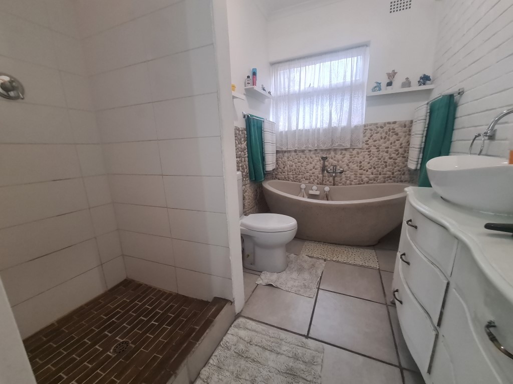 The main house boasts four bedrooms—three without built-in cupboards and a generously sized main bedroom featuring a walk-in closet, a modern en-suite bathroom, and sliding door access to the outdoors. The stylishly renovated family bathroom includes a shower, hand basin, and toilet.