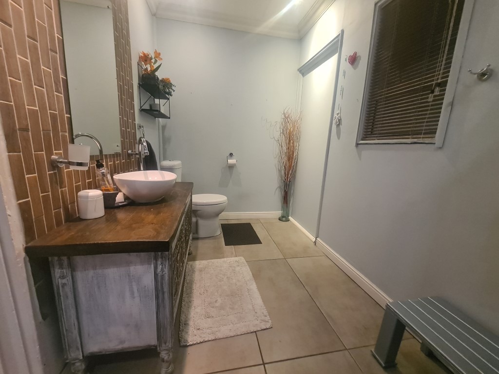 The main house boasts four bedrooms—three without built-in cupboards and a generously sized main bedroom featuring a walk-in closet, a modern en-suite bathroom, and sliding door access to the outdoors. The stylishly renovated family bathroom includes a shower, hand basin, and toilet.