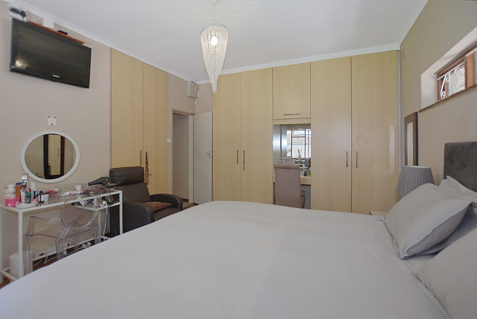 - Bedroom 1 Tiled Floors, Wooden Floors, Parquet Floors, Curtain Rails, TV Port, Built-in Cupboards, Double Bed, King Bed, Quee