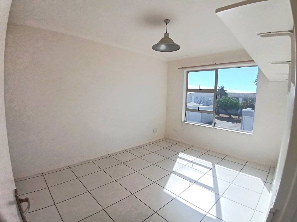 The spacious bedroom is fitted with built-in cupboards and is well-sized to accommodate a double or queen bed comfortably.