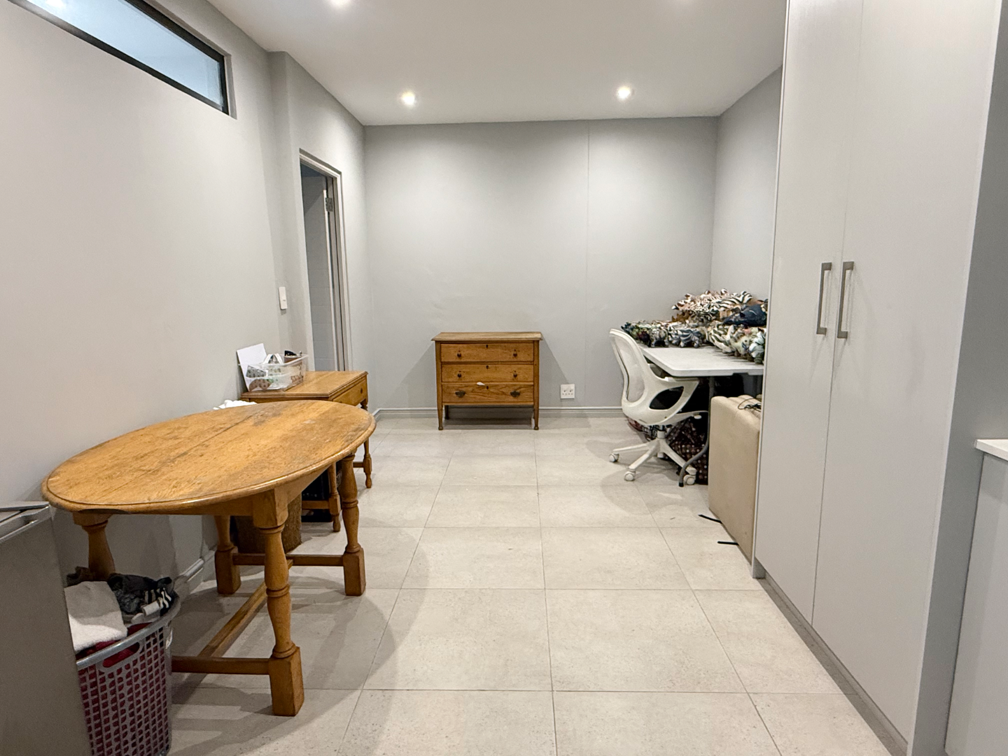 Ascending to the second level, a well-appointed landing provides linen storage, additional cupboards, and a convenient prep bowl. This level includes a further bedroom with built-in cupboards and workspace, leading through to the impressive master suite.
