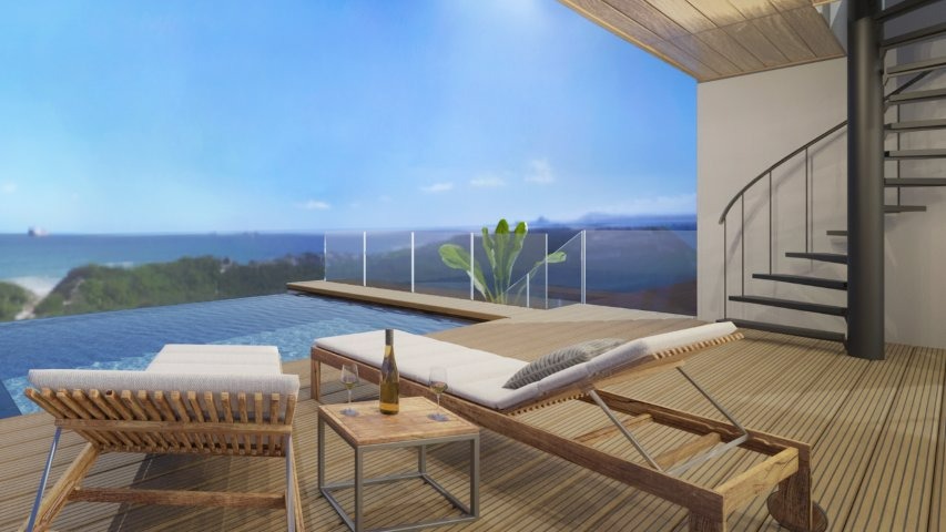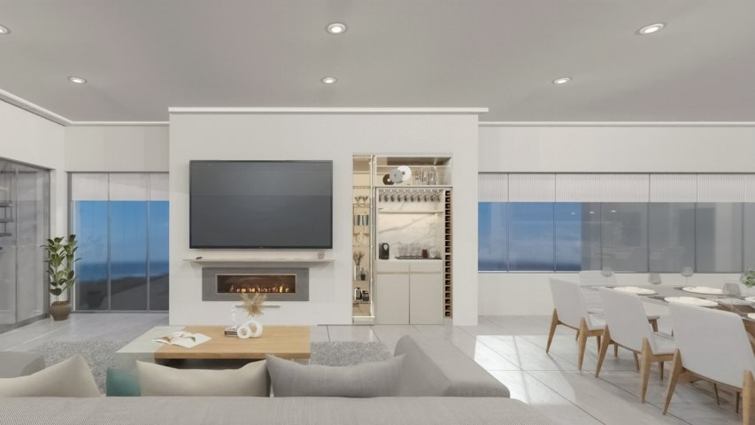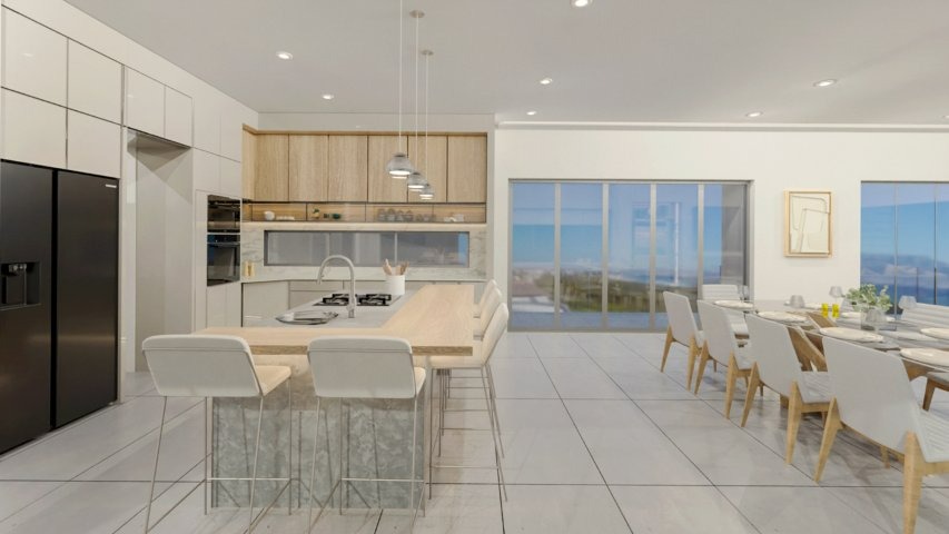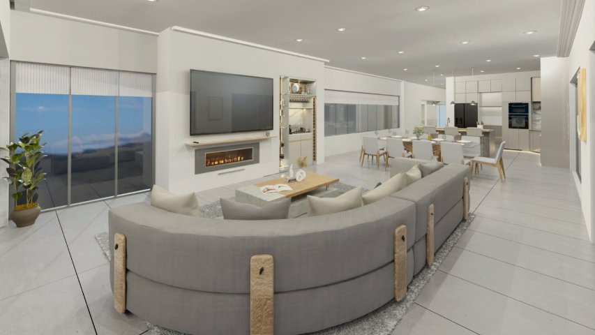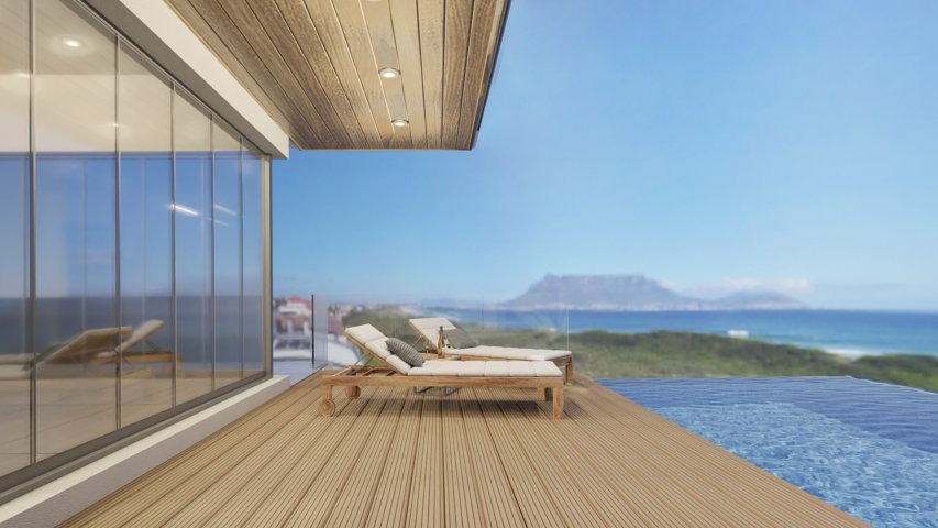 A brand new, modern home will be built in this prime beachfront location. The design includes 4 en-suite bedrooms, as well as a 1-bedroom flat with its own bathroom. The double-volume lounge features a gas fireplace, creating a warm and inviting space for winter evenings.