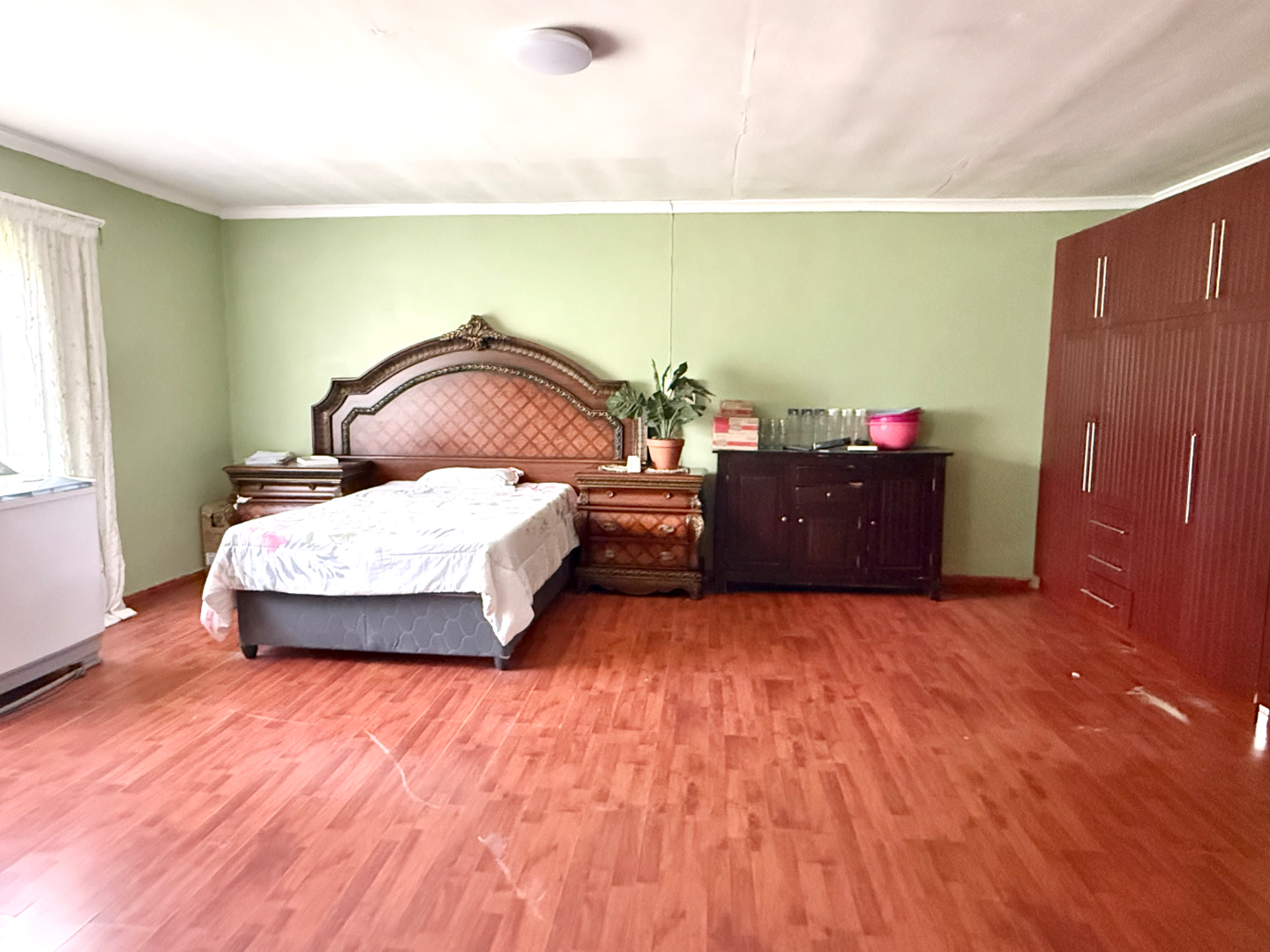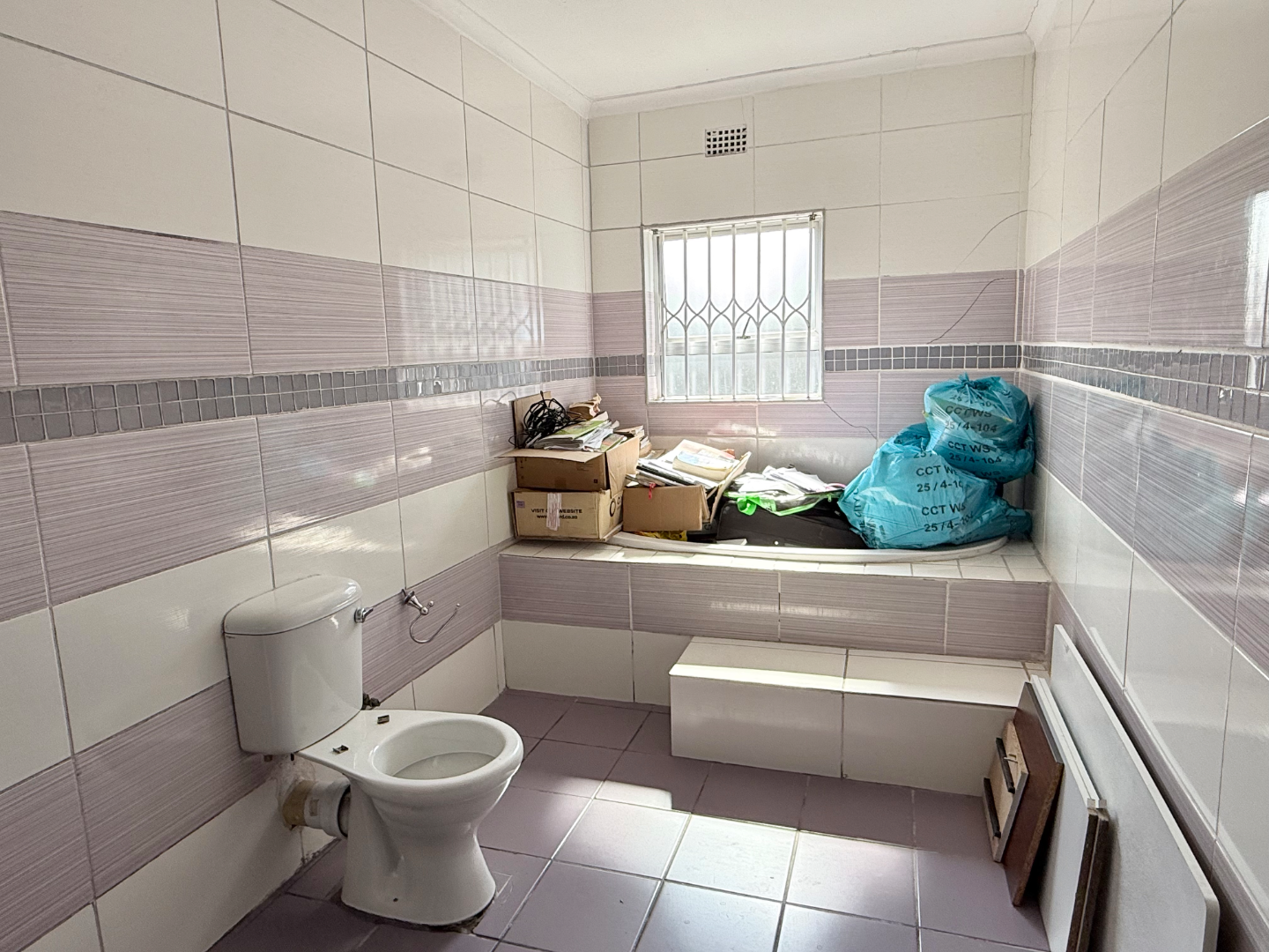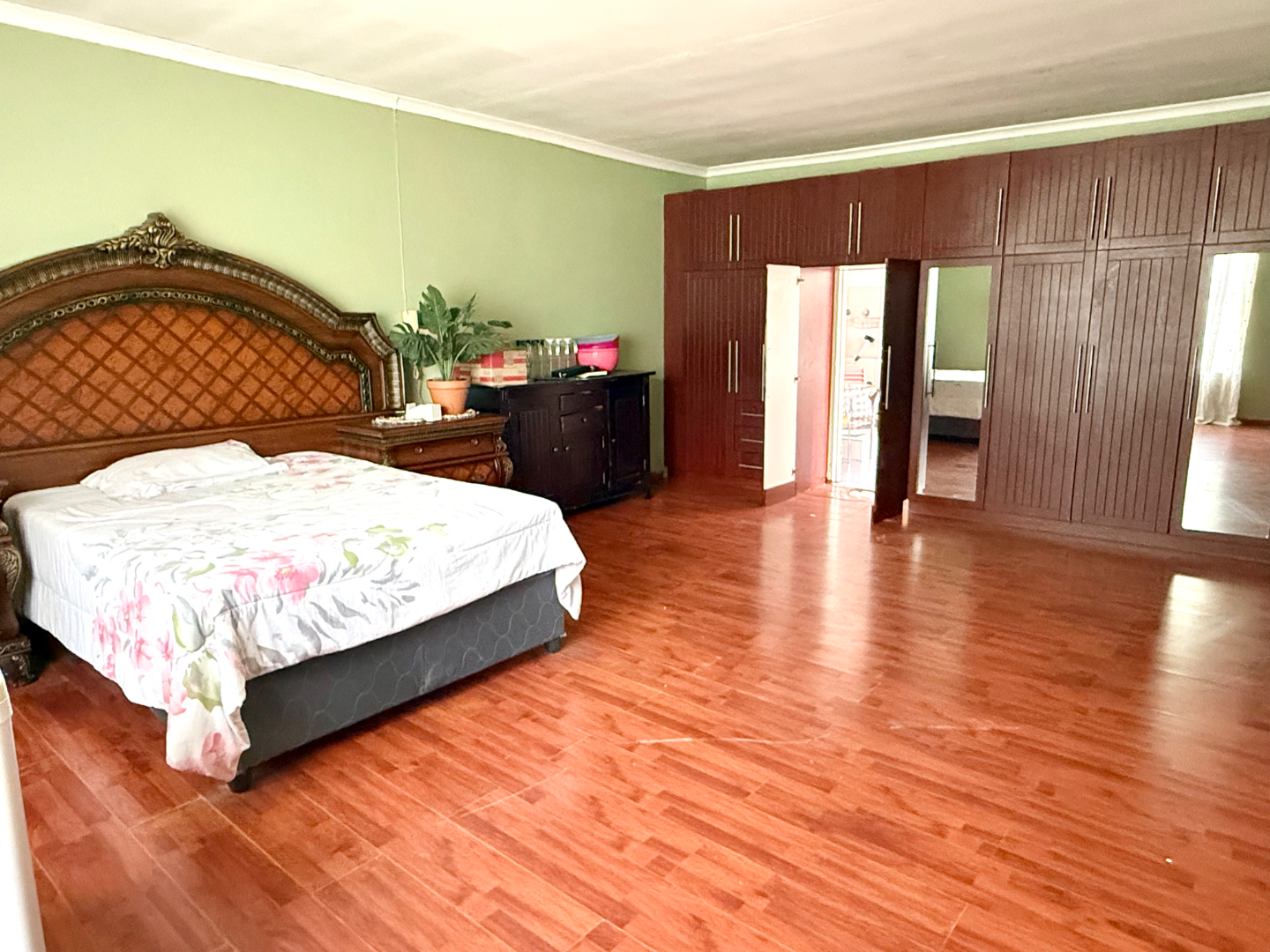 The generously sized main bedroom features a full en-suite bathroom with a shower, bath, toilet, and basin.