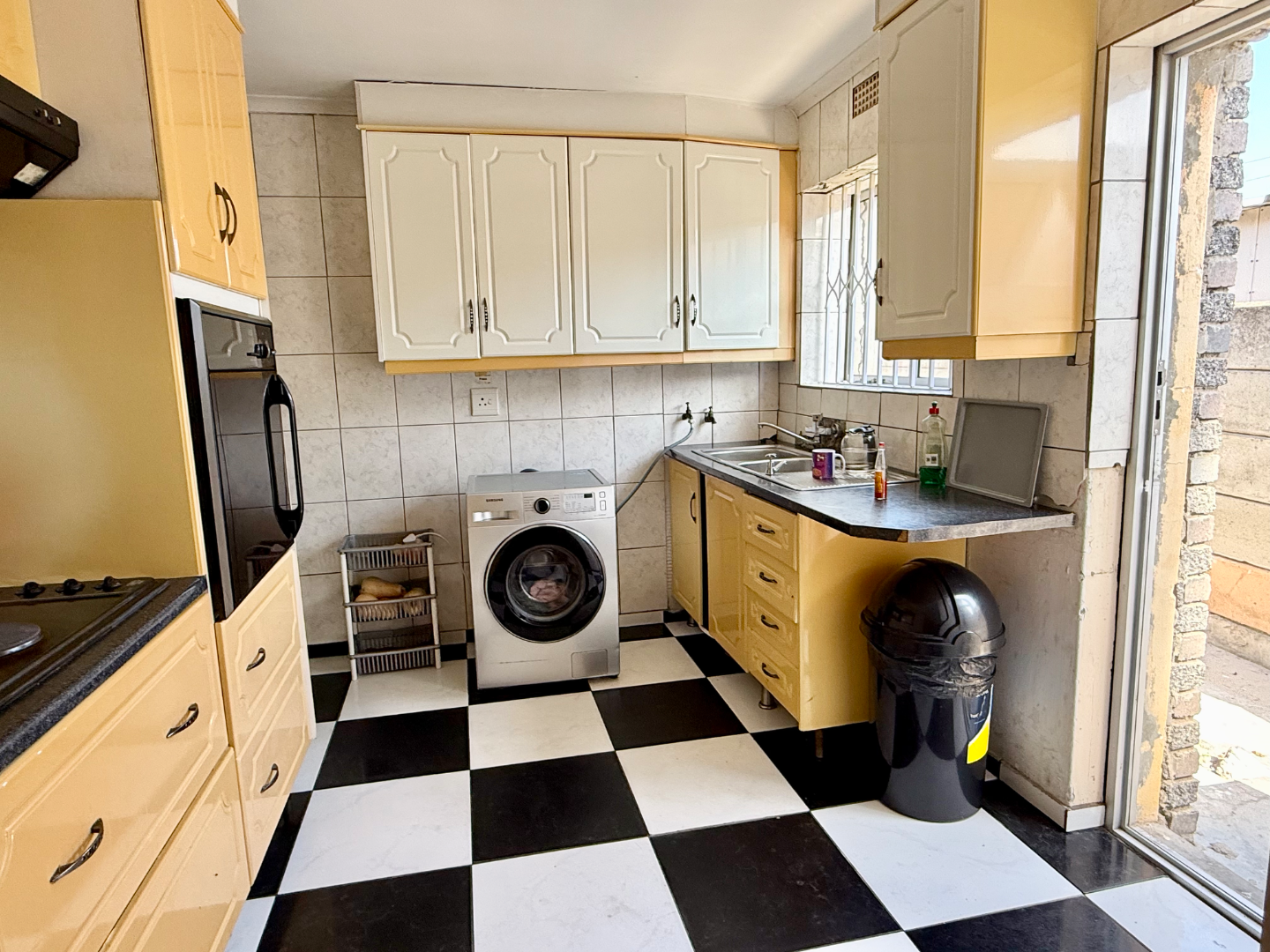 The home features a well-equipped kitchen with ample cupboard space, making meal preparation both easy and enjoyable.