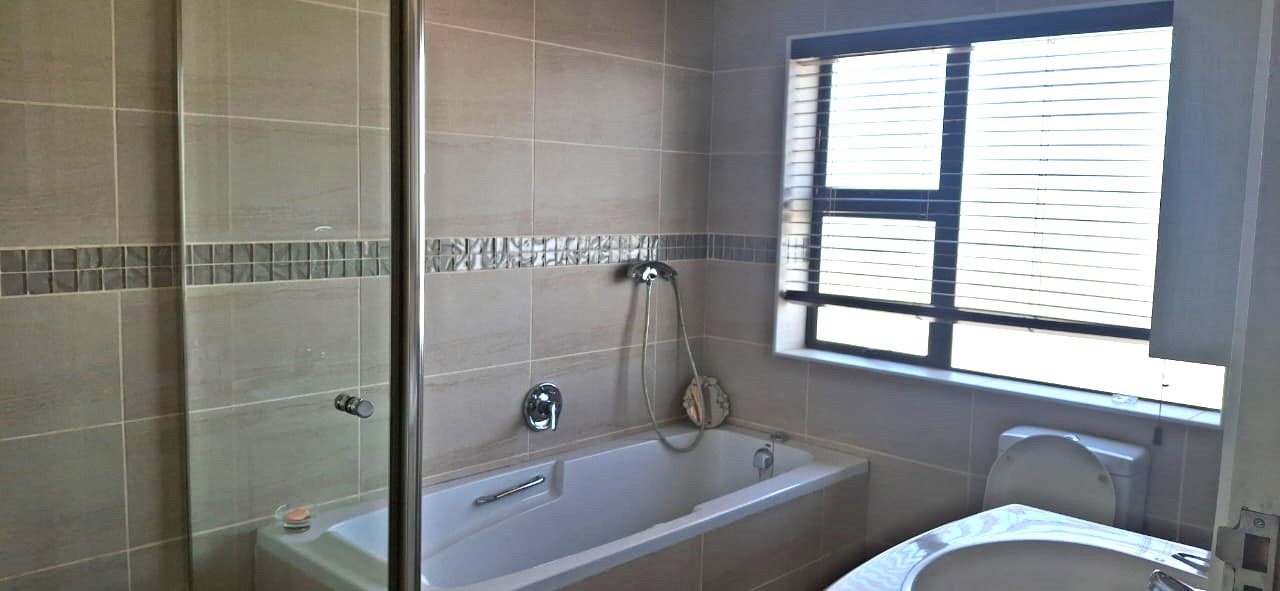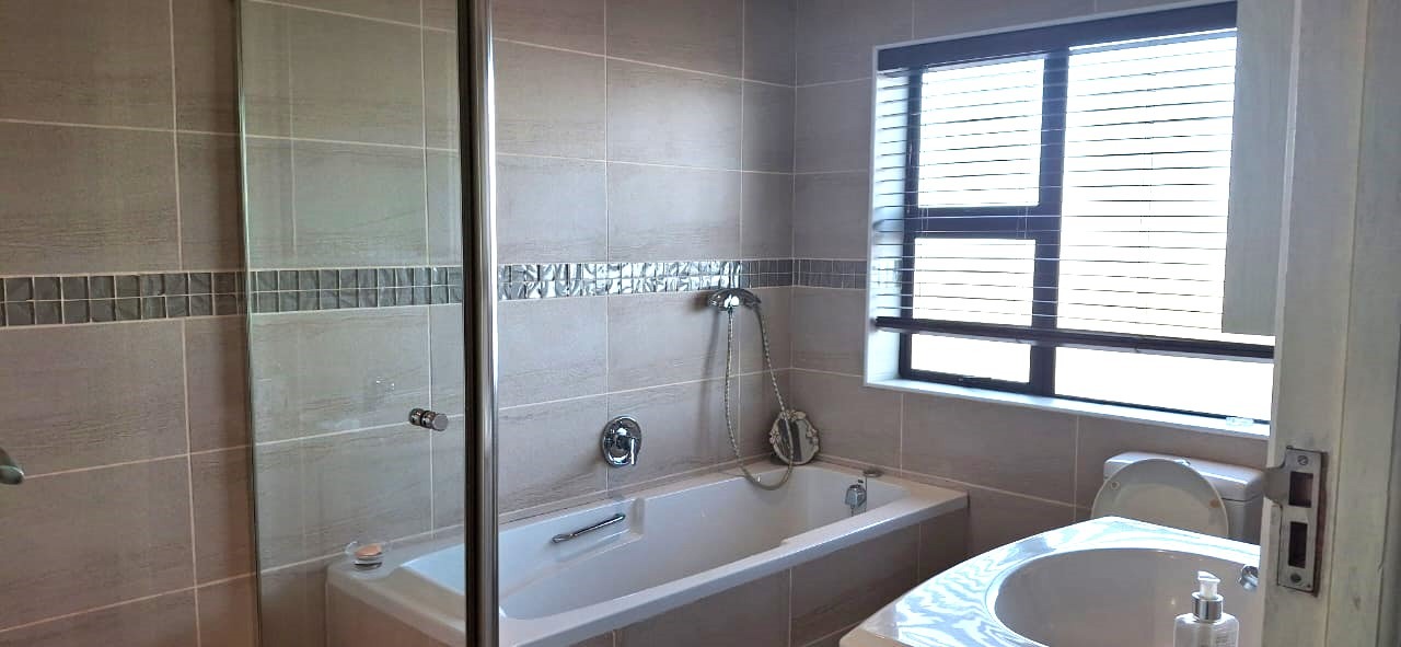 The home features 6 generously sized, carpeted bedrooms with built-in cupboards, 8 bathrooms, complemented by 2 expansive open-plan layout that includes 2 stylish lounges, dining-rooms and 2 modern black granite finished kitchens.