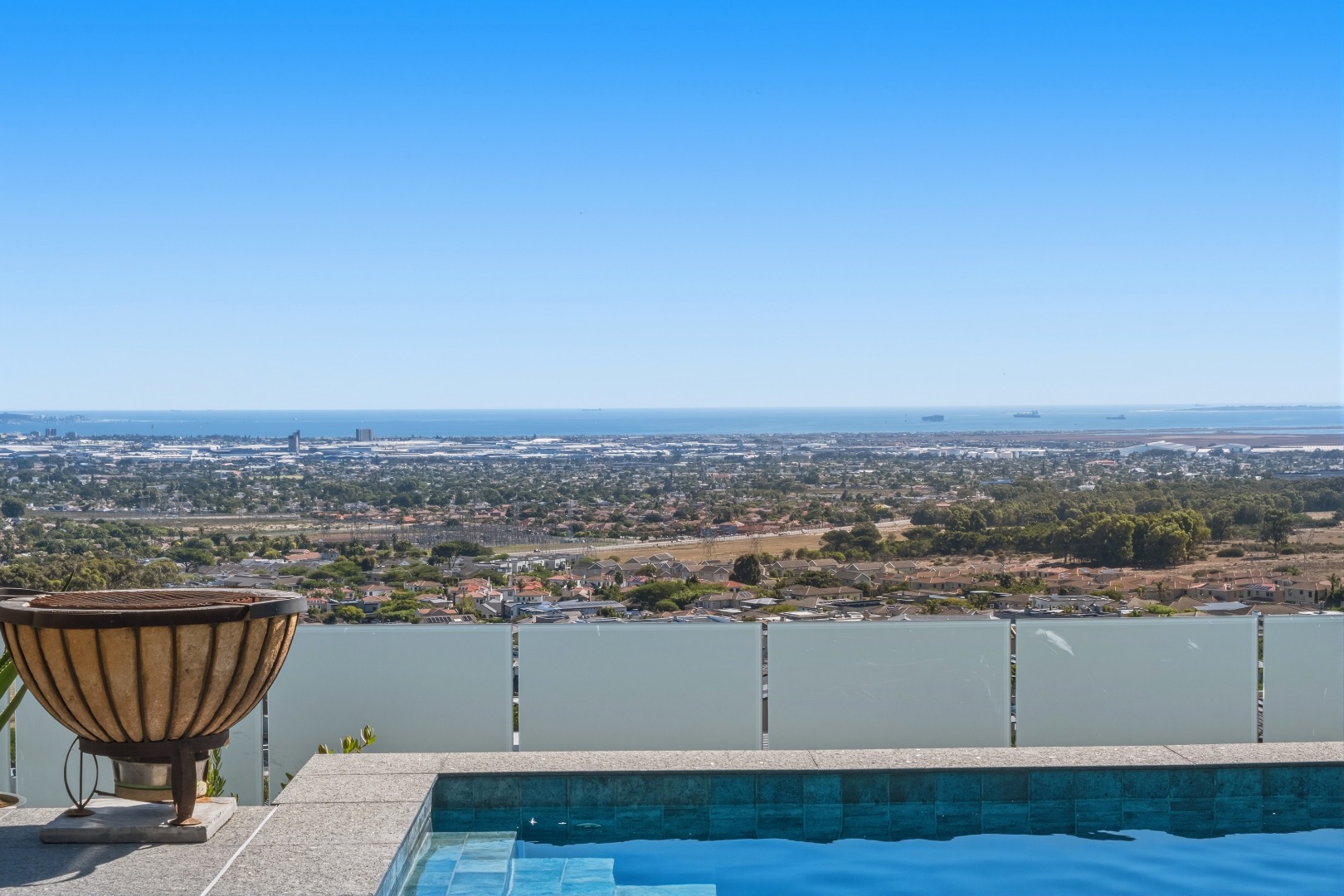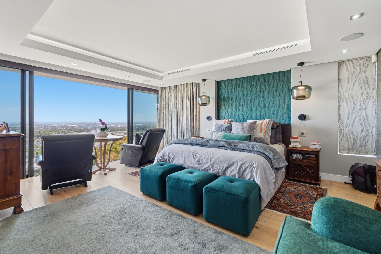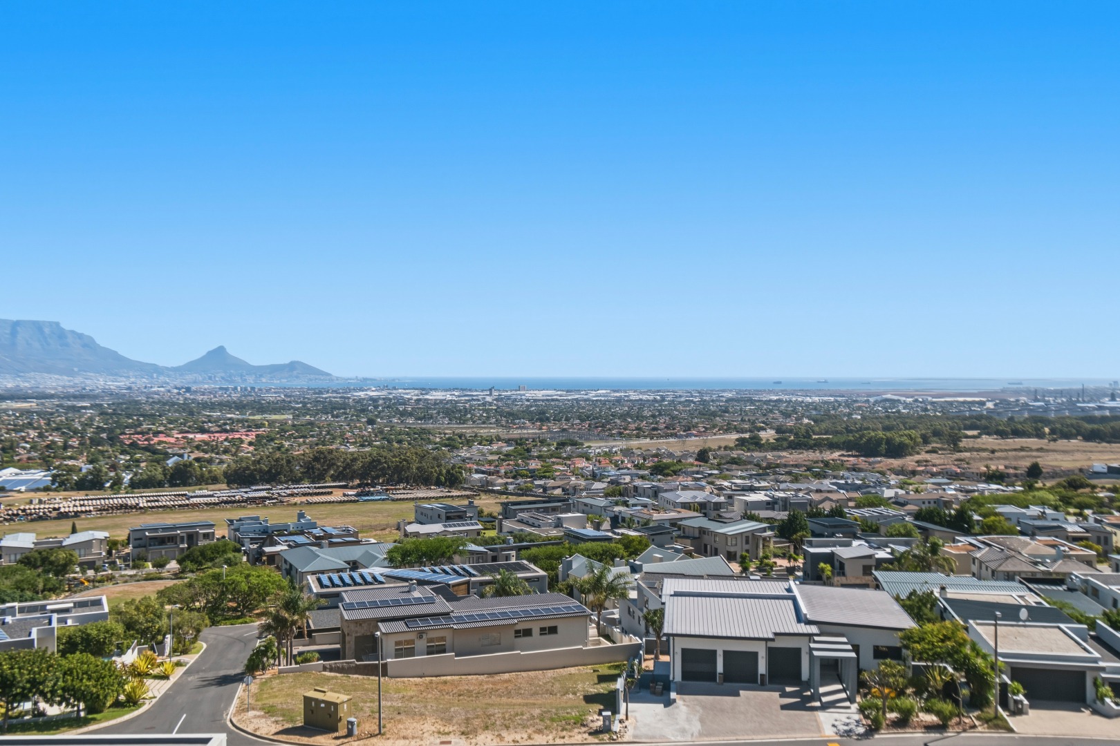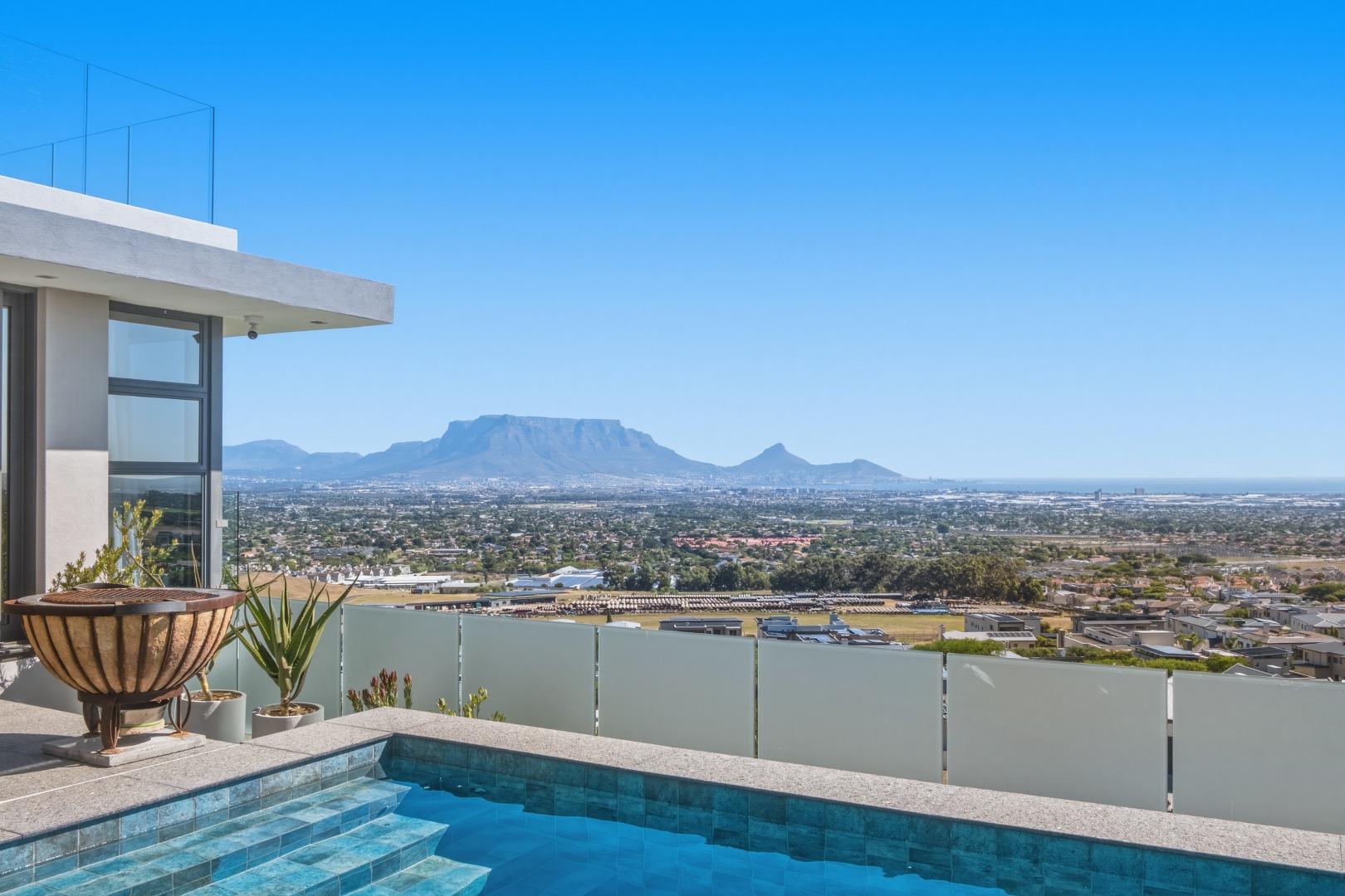 Positioned on the highest road within the prestigious Baronetcy Estate, this exceptional ultra-modern villa commands uninterrupted, panoramic views across Table Mountain, Table Bay, Robben Island, and the Cape Town skyline.