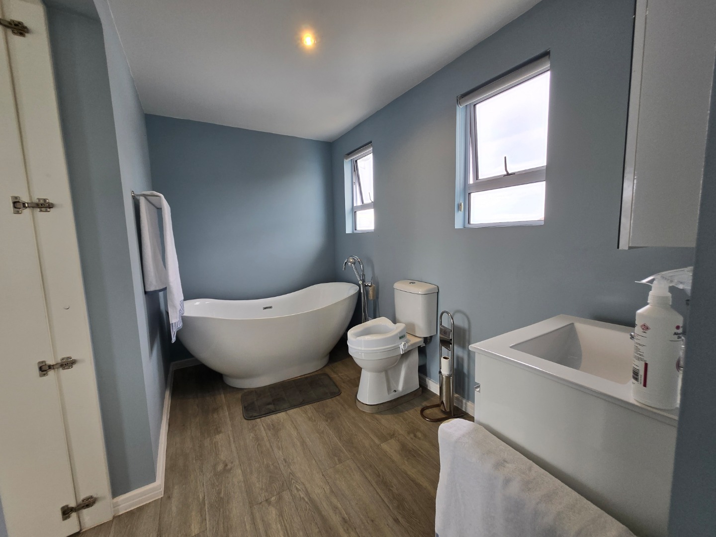 o Two upstairs bedrooms, each with en suite bathrooms, showcase breathtaking views of the ocean and Table Mountain.