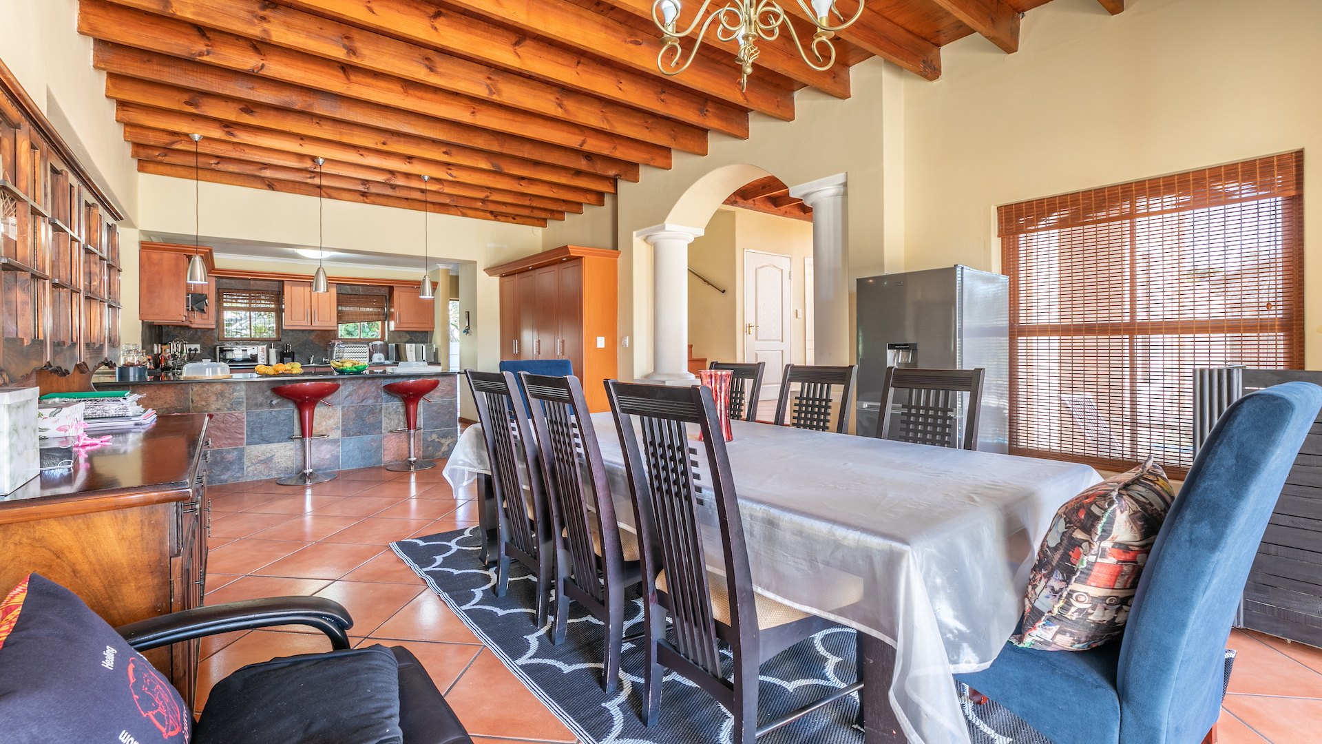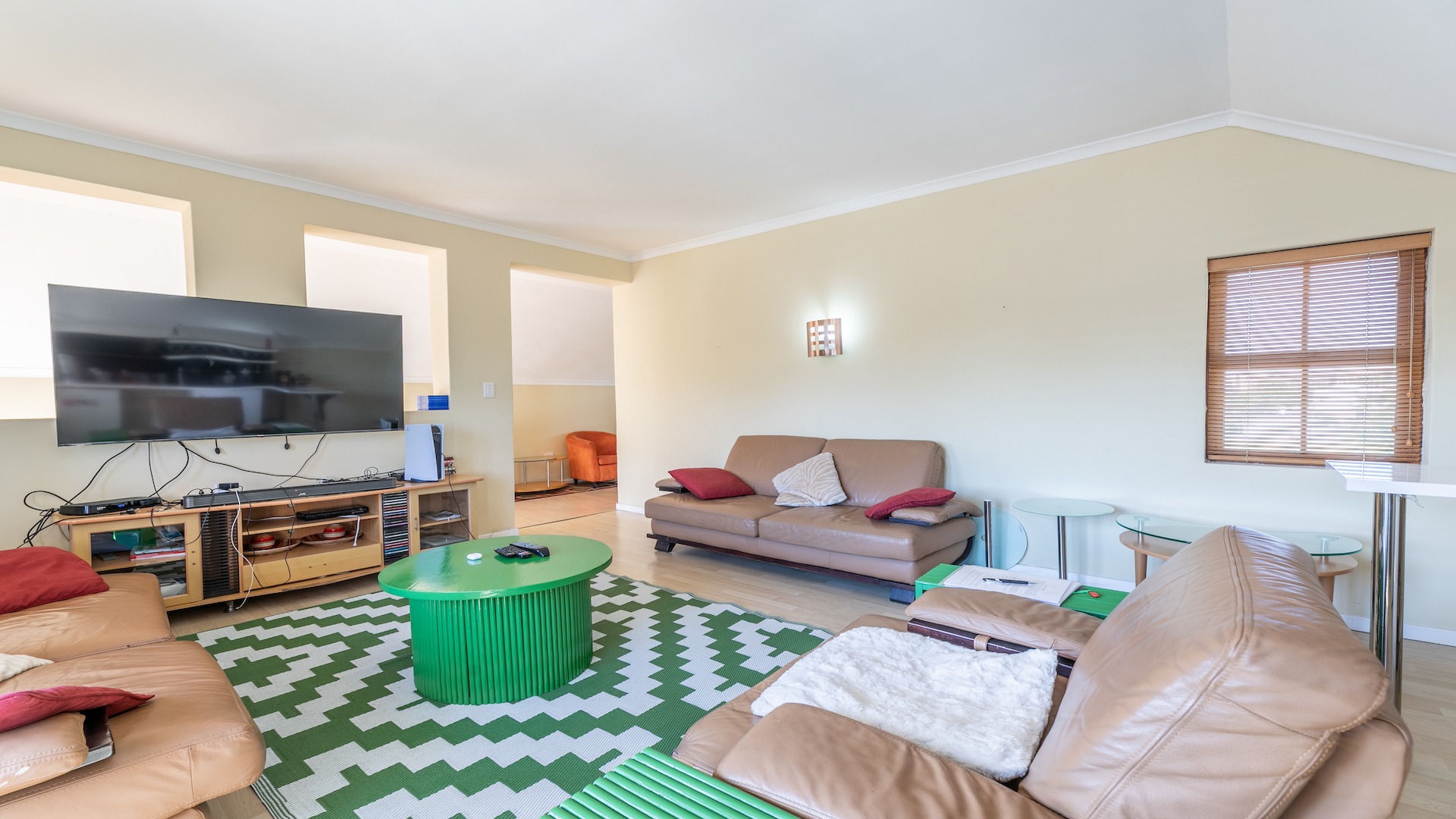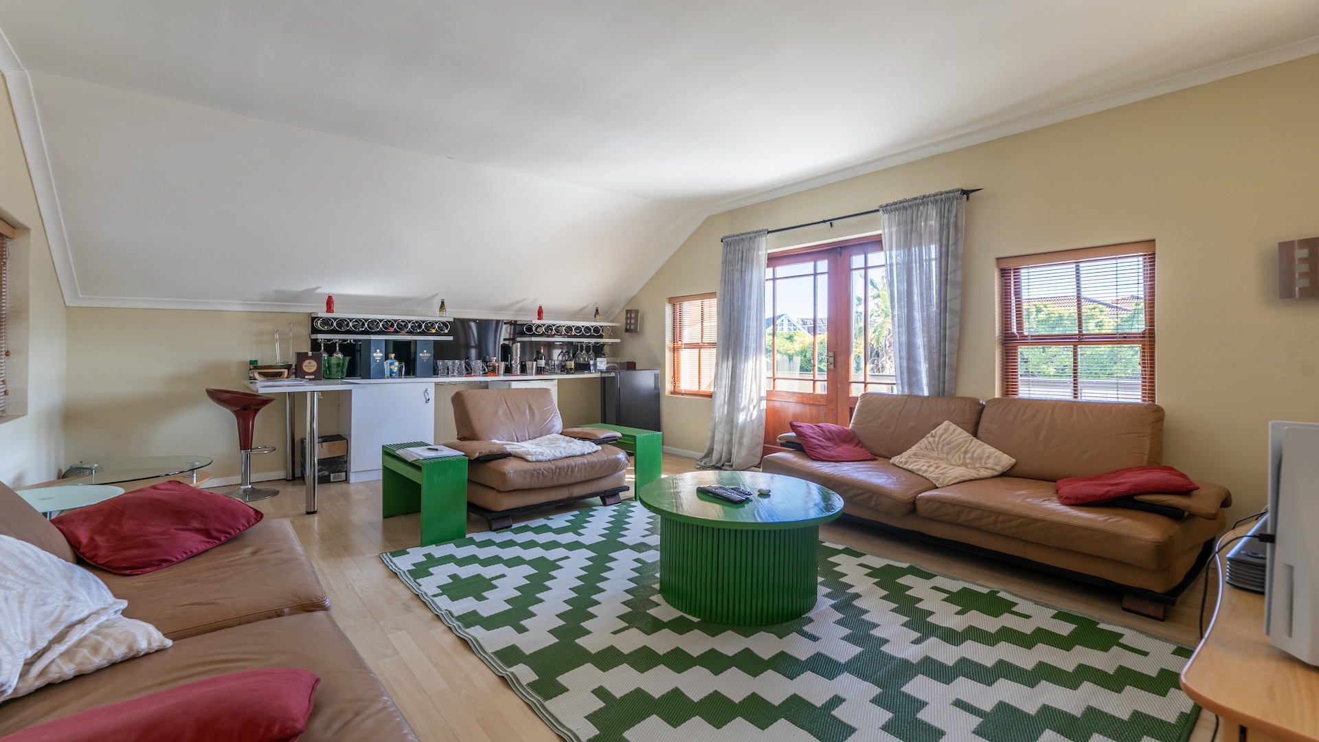 Stunning, spacious well positioned home with great finishings in all of its rooms. This home is perfect for a family looking to live close to the beach and is conveniently located to great schools and malls like Table Bay Mall and Eden on the bay. The My City bus is only a short walk away making transportation a breeze. As you enter into the spacious Entrance hall you are captivated by the charm of the open lounge, kitchen and dining room areas. The Kitchen has granite toppings, lots of cupboard space and a scullery. The Dining room has Patio doors leading to the spacious gardens that boast a swimming pool and entertainment area with a built in braai. Upstairs you will find another sunny lounge with a beautiful newly installed bar area. This lounge also opens up to a balcony that’s perfect for relaxing with family and friends on Summer nights. There i s an entertainment lounge that can also be converted into a tv lounge with doors that open up to another balcony. There are two ensuite Bedrooms upstairs and another located downstairs.