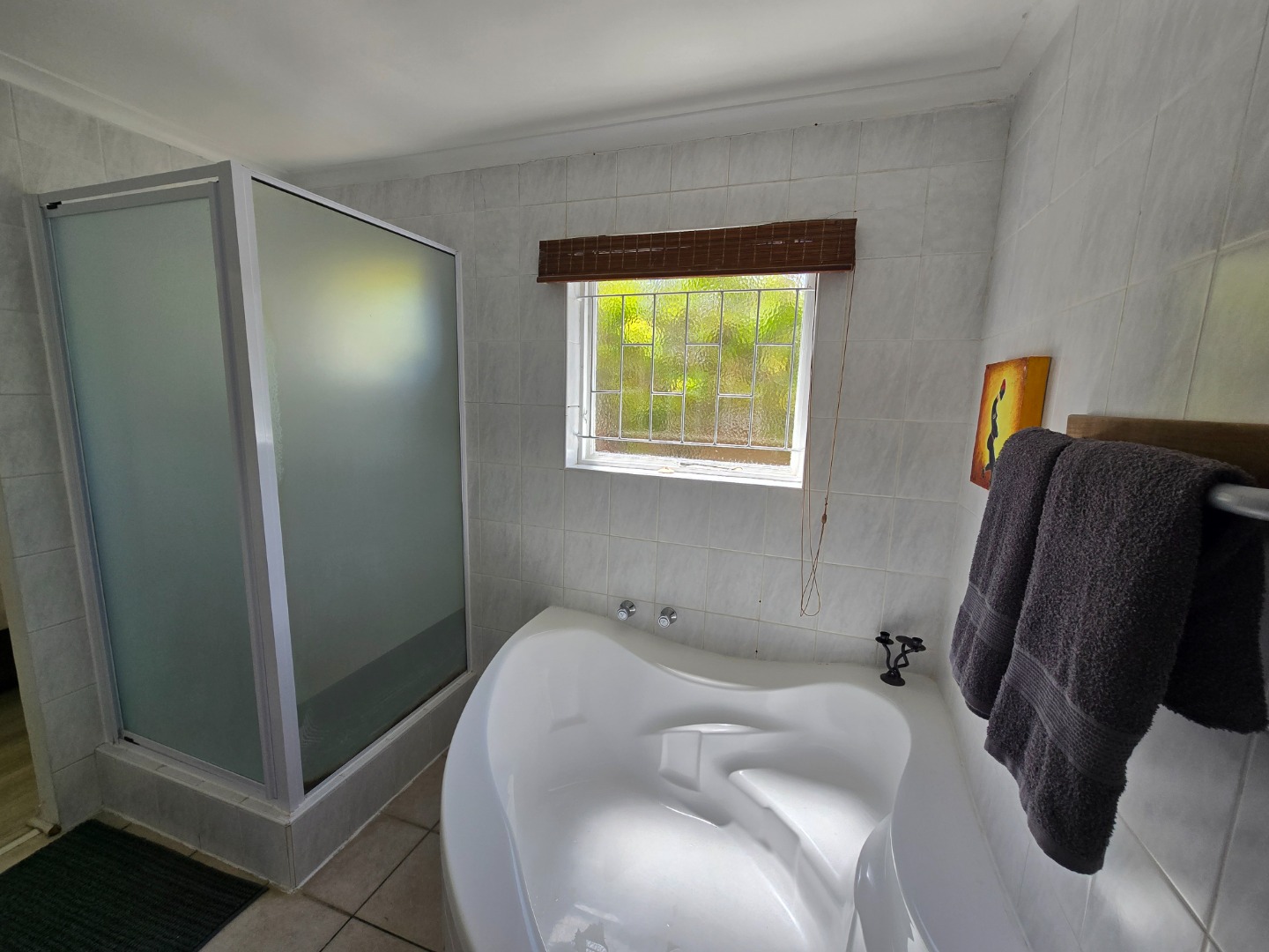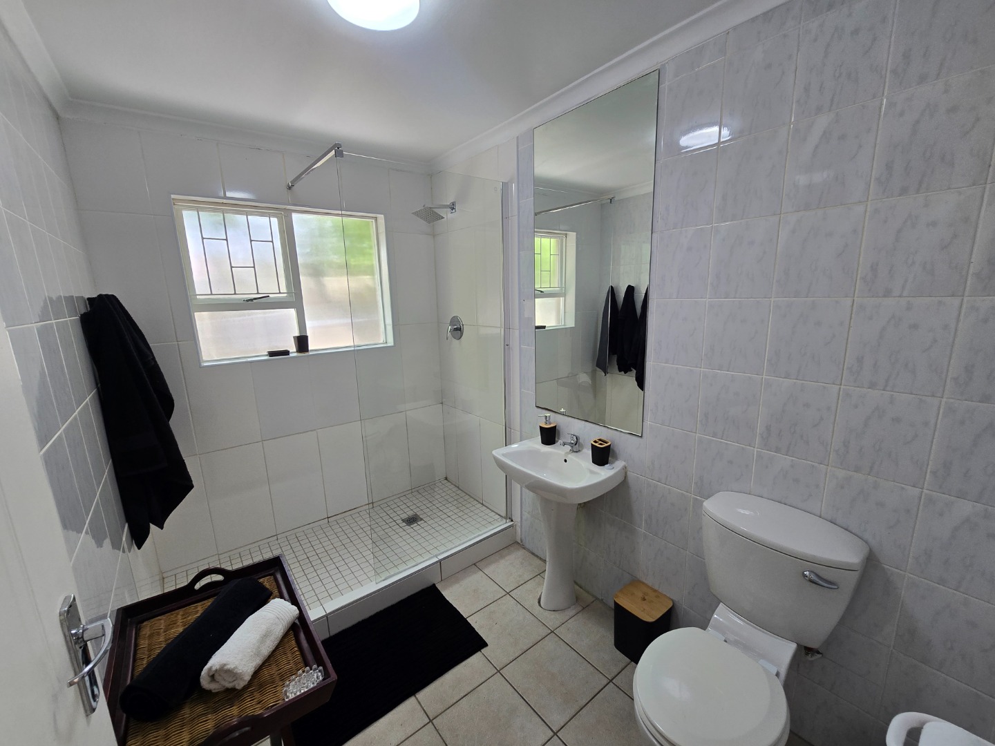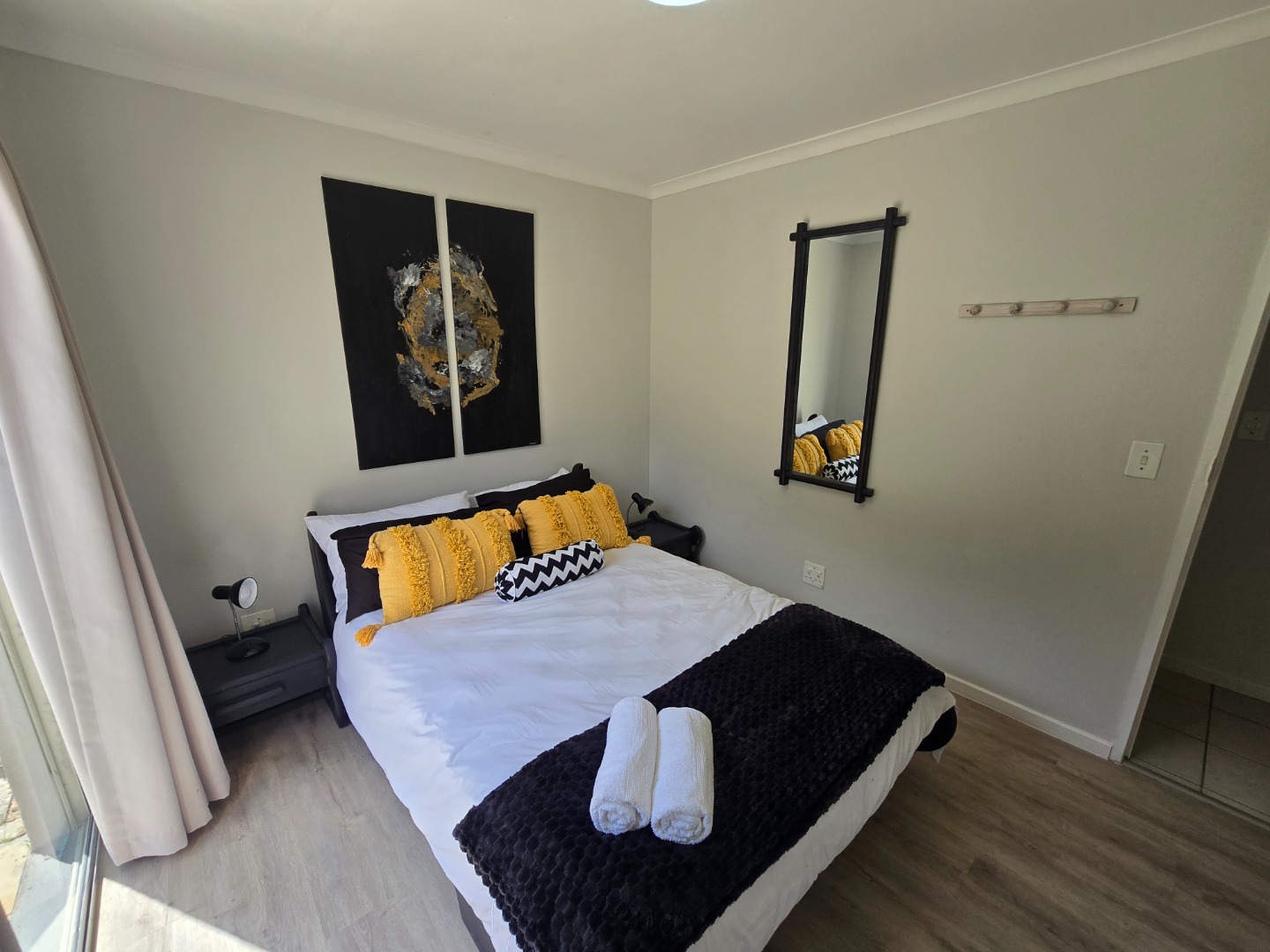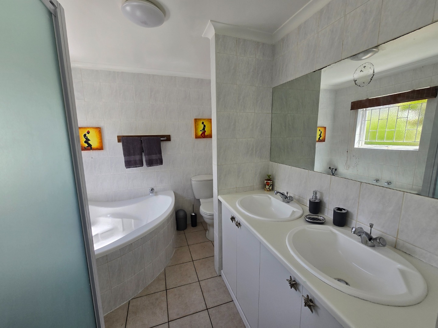 The main bedroom is spacious and also offers a sliding door opening up into the garden. The en-suite bathroom consists of a double vanity, shower, corner bath & toilet.