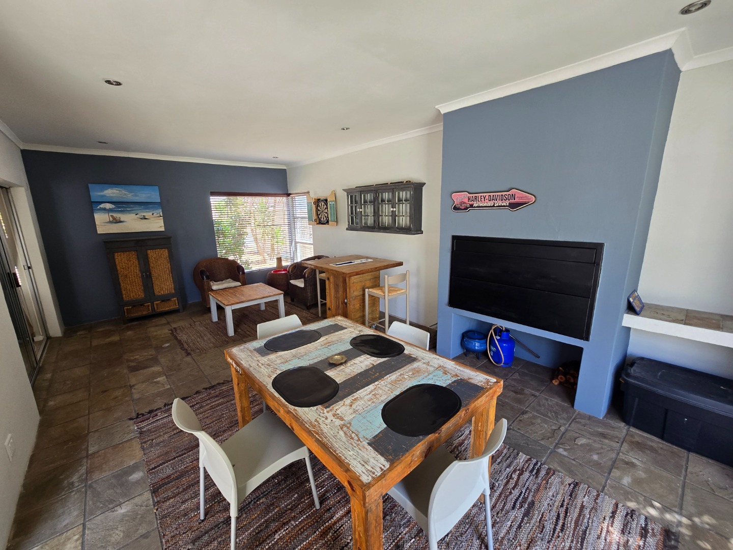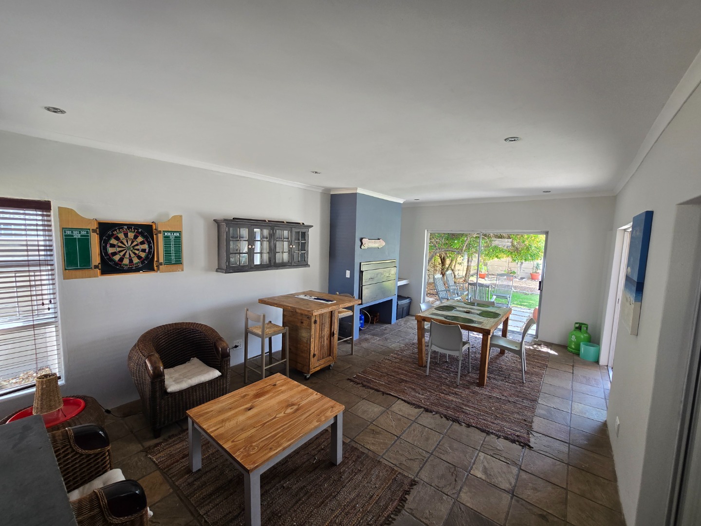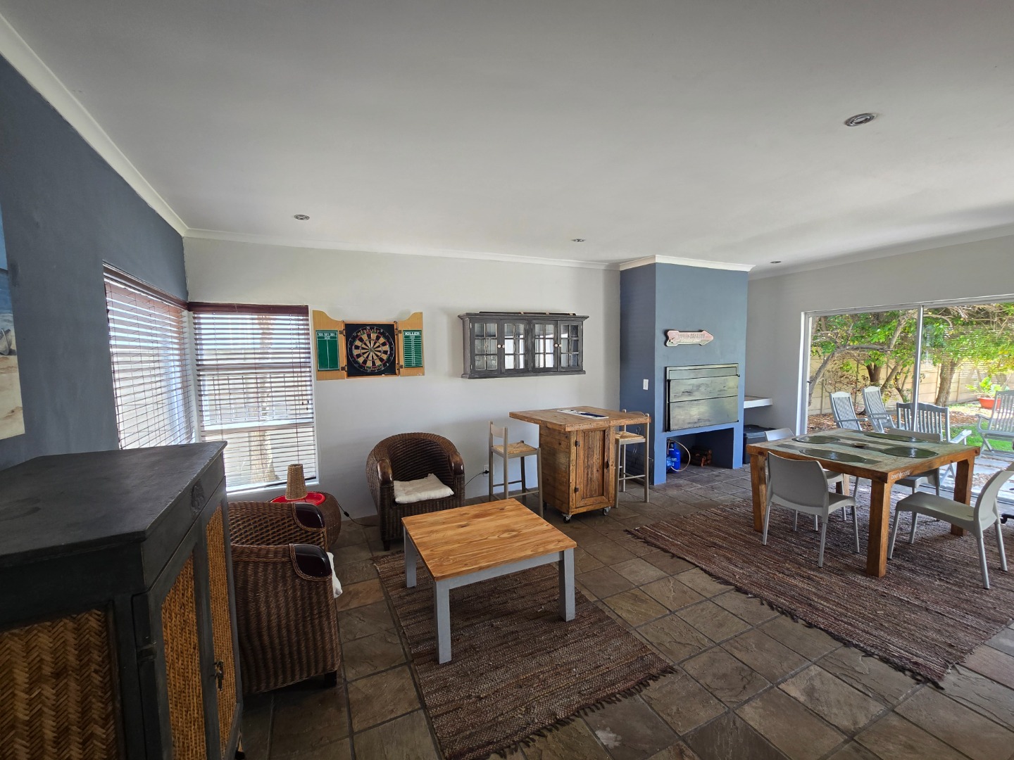 The braairoom is spacious and offers sliding doors flowing out into the garden, or opening up into the lounge. This room is ideal for entertaining and offers an indoor braai and a fitted dart board.