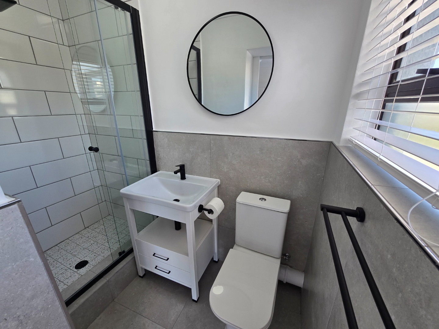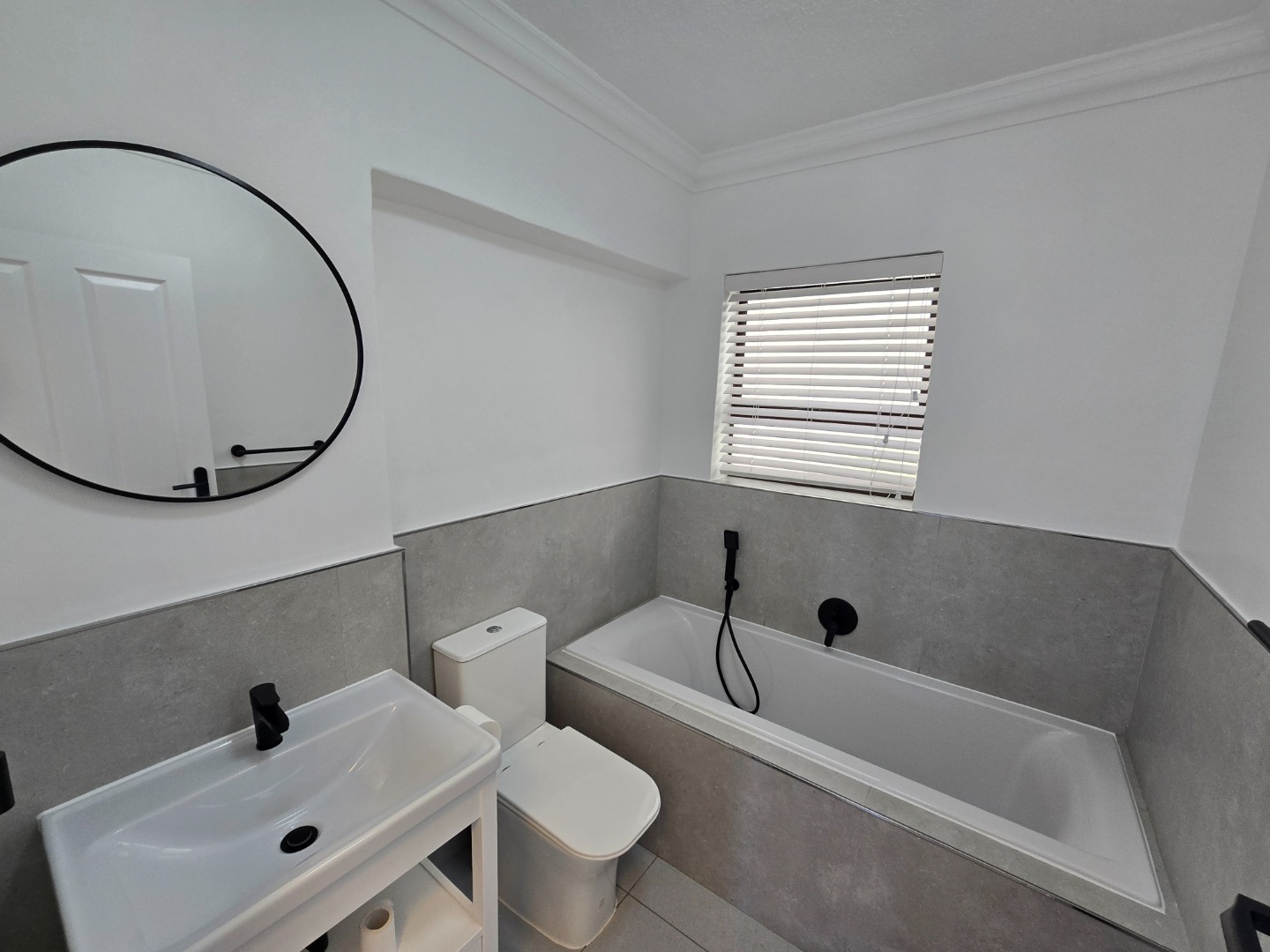 The main bedroom is tiled and spacious and offers built-in cupboards, as well as a sliding door opening up onto the balcony. The main en-suite consists of a shower, basin and toilet.