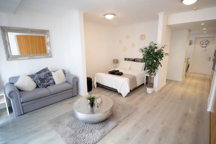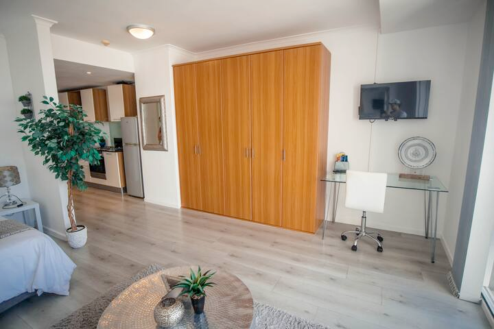 This well laid out bachelors flat (48 sqms) with views can be rented at any term. It has a separate bathroom with a large shower. A well-equipped kitchen with all the appliances including a washer/dryer. It is situated on the 13th floor with a balcony overlooking the ocean. It is situated in Horizon Bay where the security is excellent. It has a dedicated parking bay, pre-paid electricity and there is a communal pool. Closely situated to all restaurants and the MyCiTi bus route. It is available from the 12th of April to the end of January 2026. Call today.