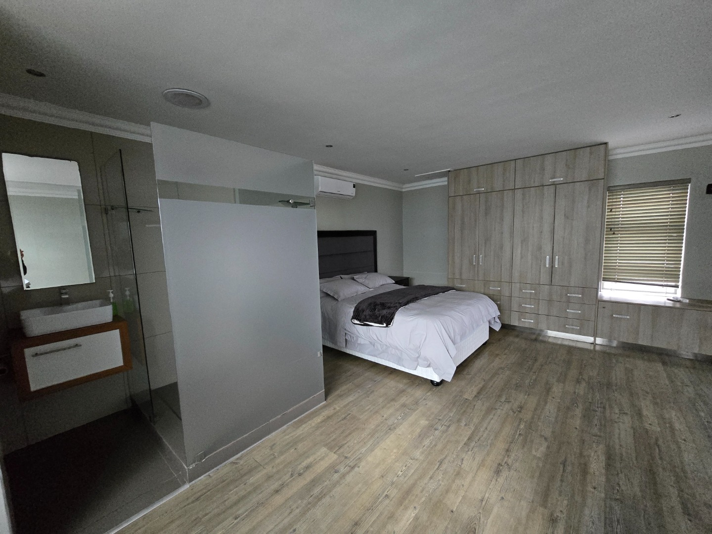 The guest suite is spacious and opens up to outside. The room is fitted with built-in cupboards as well as an en-suite bathroom consisting of walk-in shower, basin and