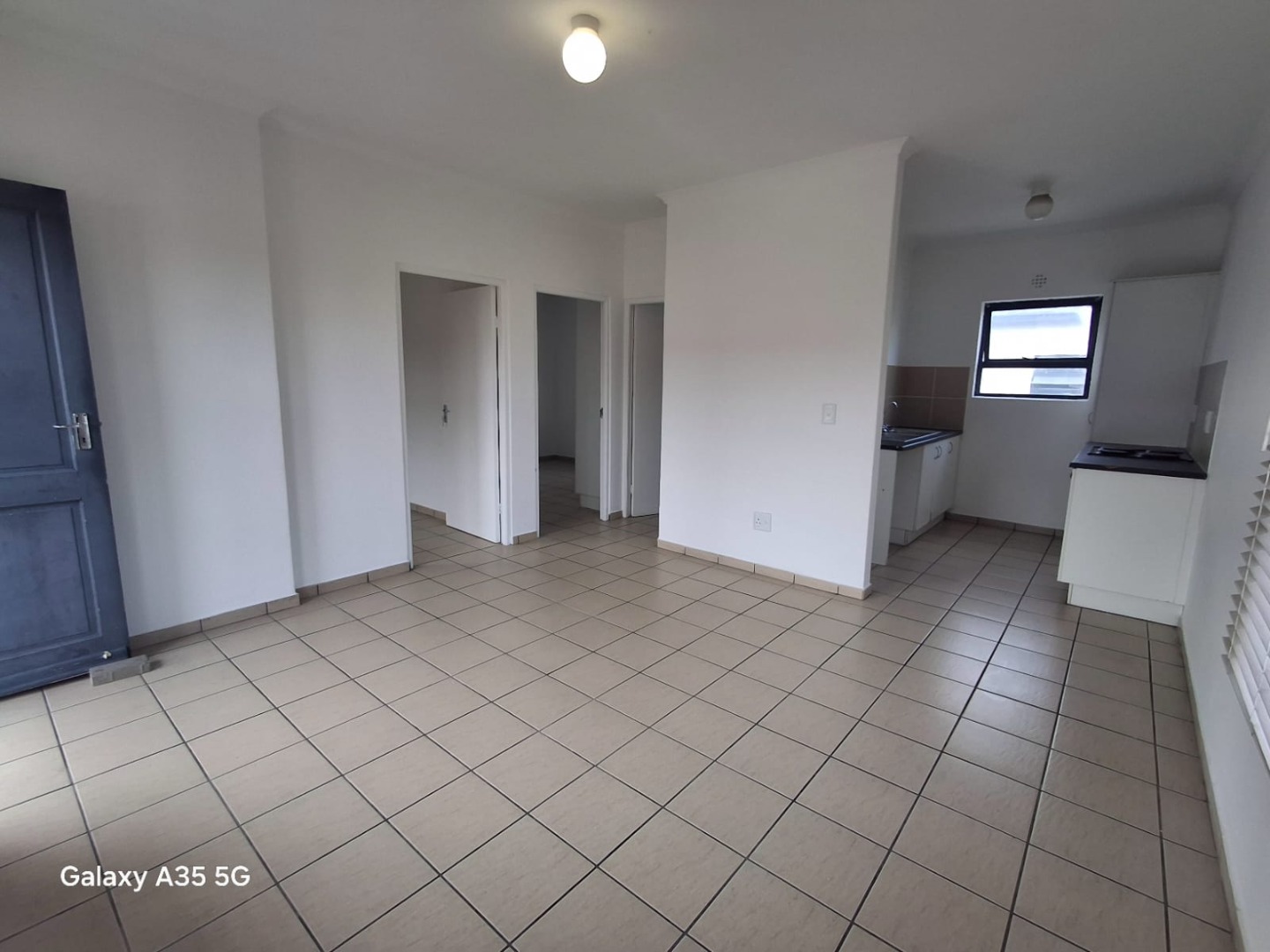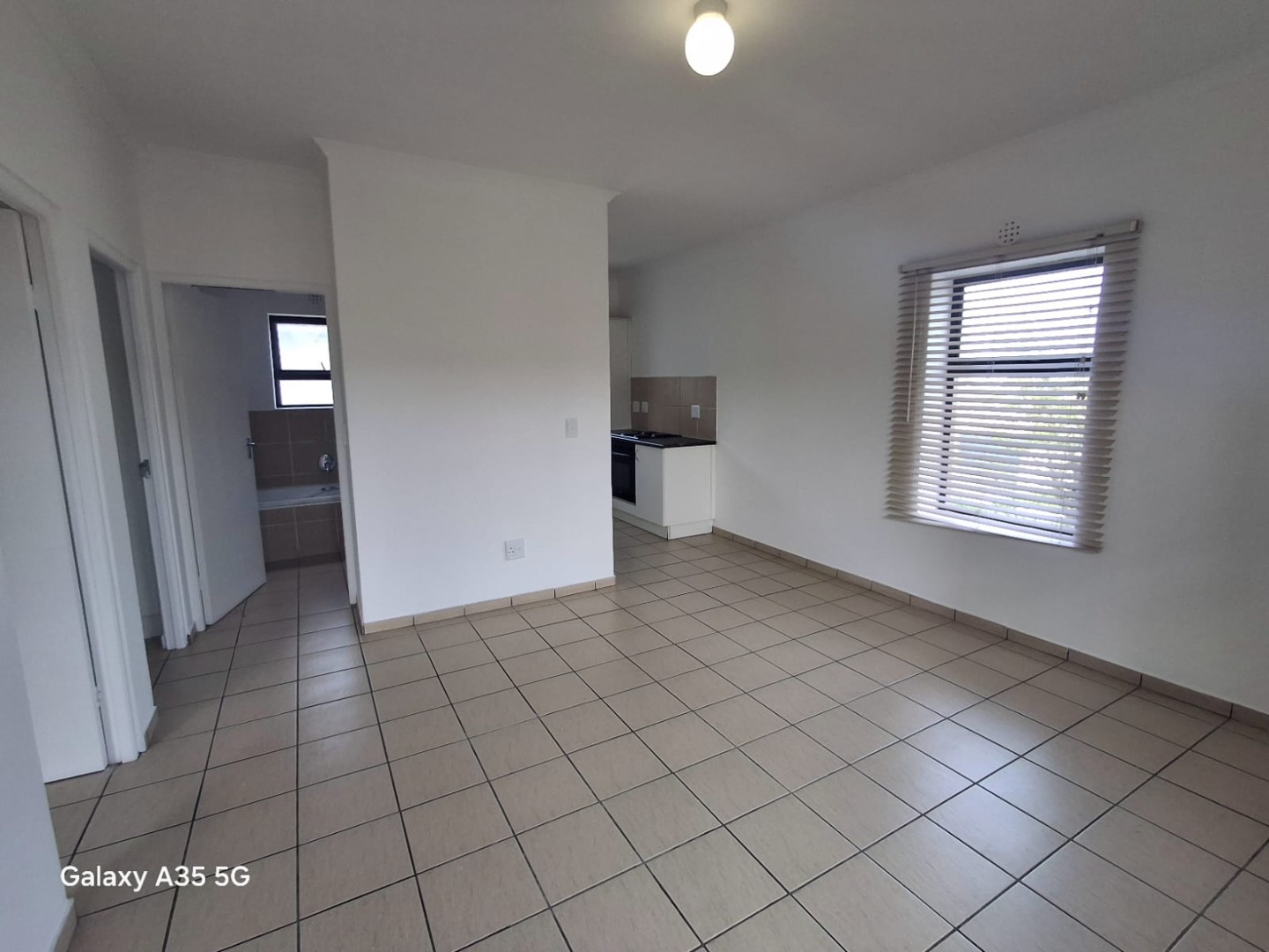 Open plan kitchen with fitted oven and hob and 1 plumbing point.
