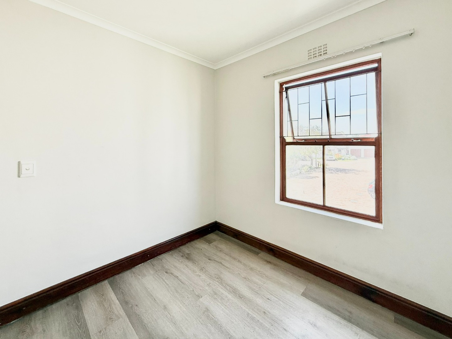 The kitchen opens onto the lounge, which provides access to a small patio and garden. One secure, allocated parking bay is included. Electricity and water are prepaid.