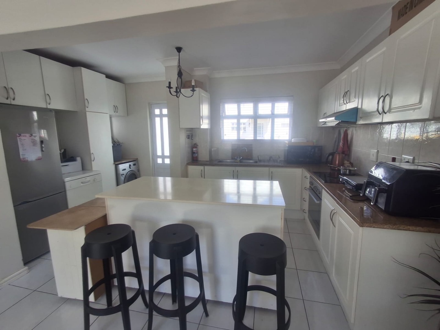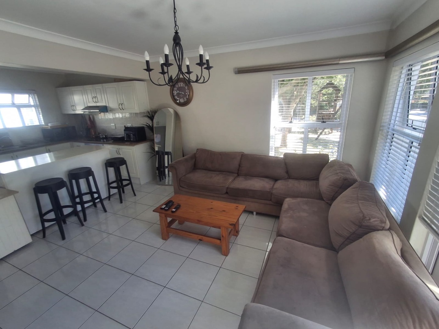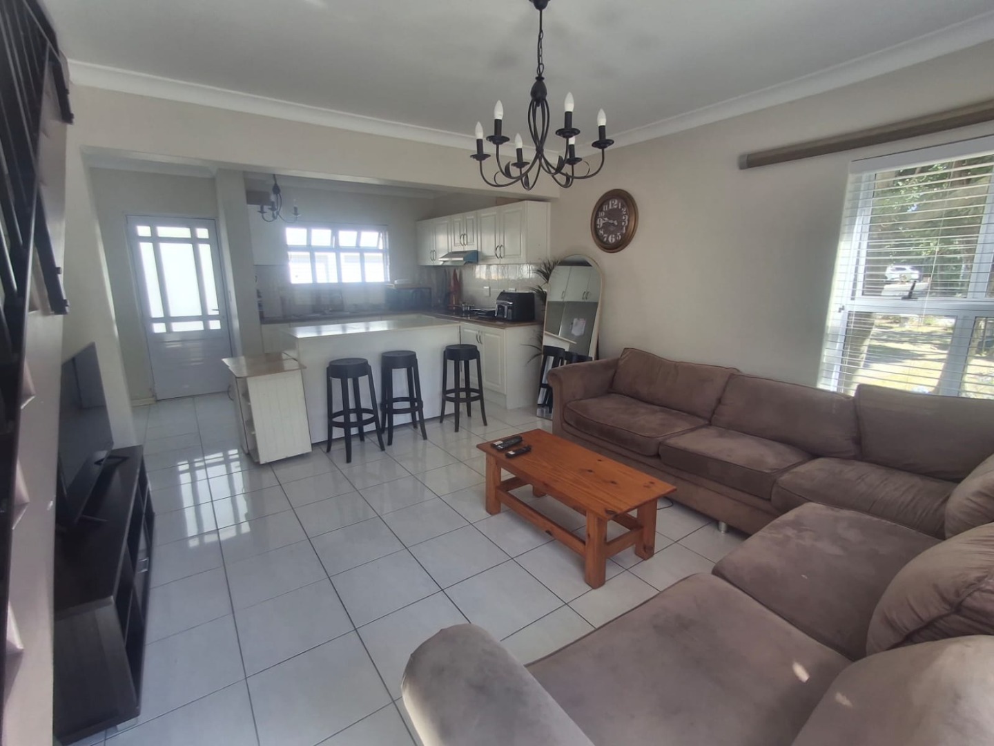 Discover comfortable living in this modern 3-bedroom, 2-bathroom rental property located within a desirable complex in Parklands, Blouberg. The residence features an inviting open-plan layout, seamlessly connecting the lounge and a contemporary kitchen. The kitchen boasts sleek white cabinetry, a practical breakfast bar, a large central island, and integrated laundry facilities, all complemented by durable tiled flooring that extends throughout the living areas. Natural light floods the space through multiple windows, creating a bright and welcoming atmosphere.
