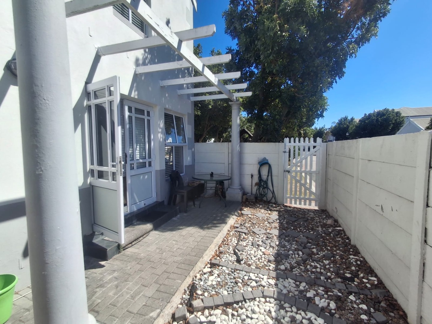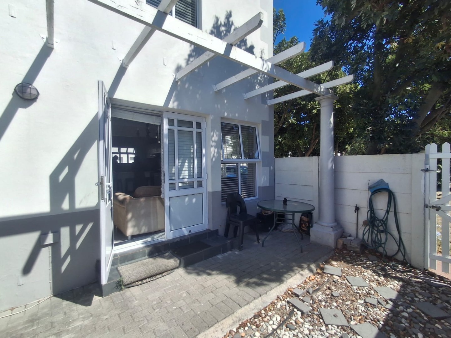 This Fully Furnished home is designed for a convenient lifestyle, offering a private outdoor patio with a charming pergola, ideal for relaxation or entertaining. Additionally, a walled courtyard adorned with vibrant bougainvillea provides a secluded retreat. The property includes an integrated garage and an additional parking space, ensuring ample provision for vehicles. The complex itself enhances family living with well-maintained communal children's play areas, complete with slides, swings, and climbing frames, set amidst mature trees for shade.