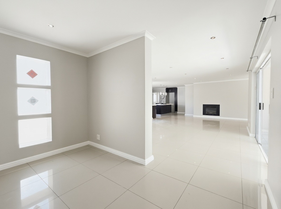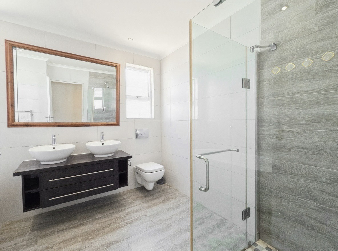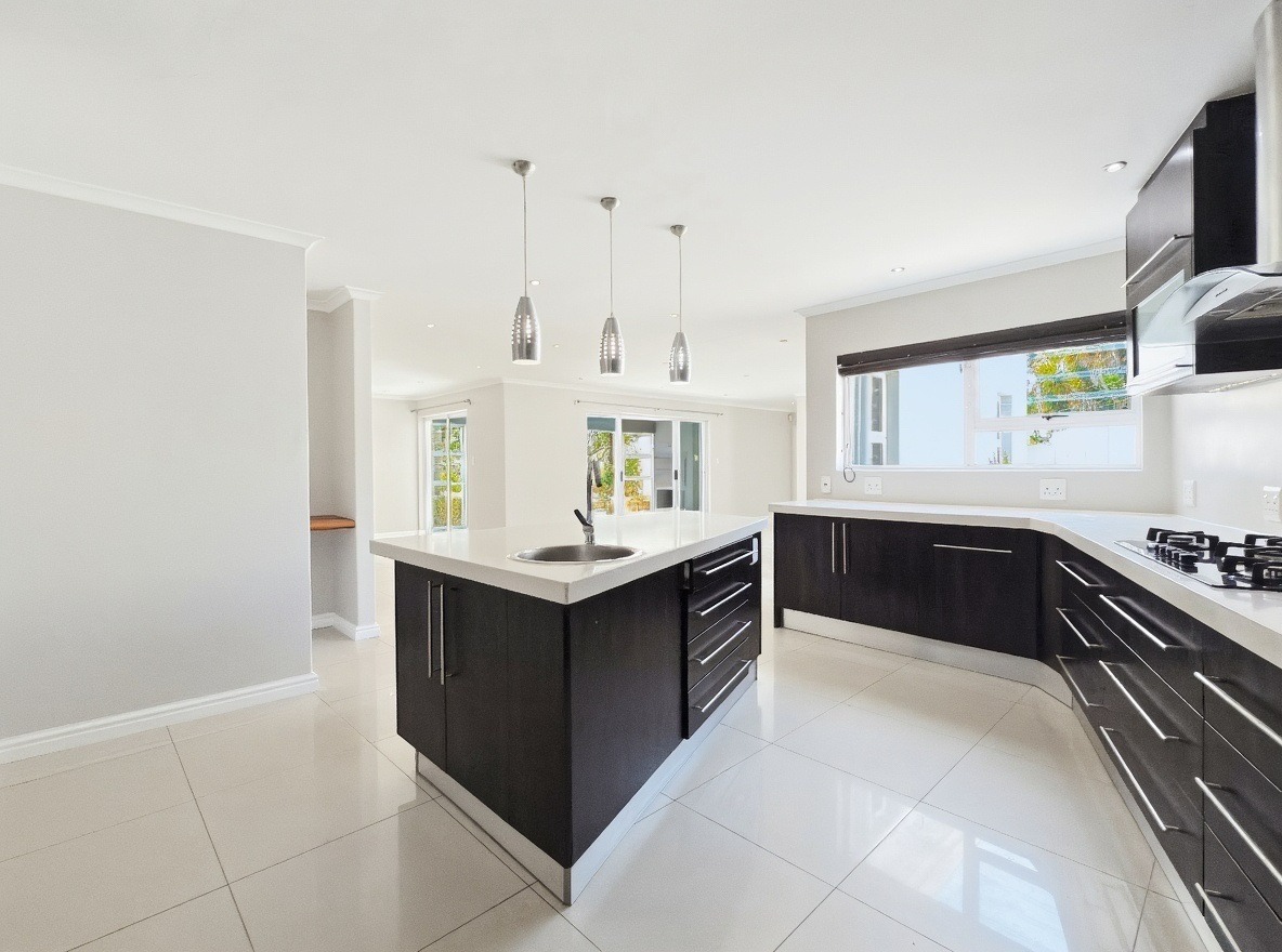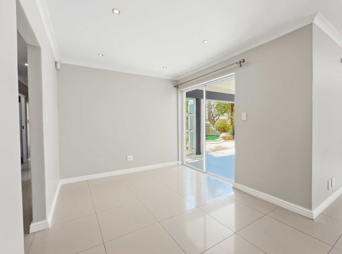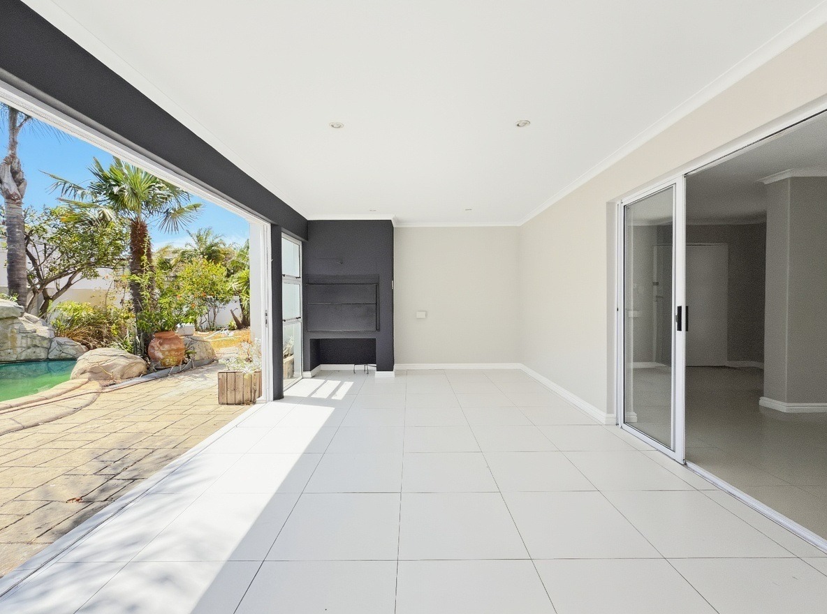 This unfurnished, single-storey freestanding house is located in Parklands. The property offers four bedrooms, all with built-in cupboards, and three bathrooms. Two of the bedrooms are en-suite. One en-suite includes a shower, toilet, and basin, while the main en-suite is a full bathroom with a shower, bath, toilet, and basin. The family bathroom is also a full bathroom.