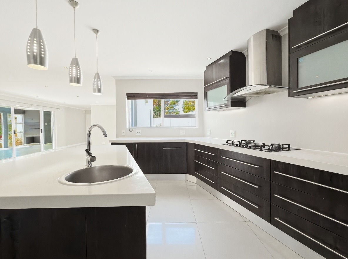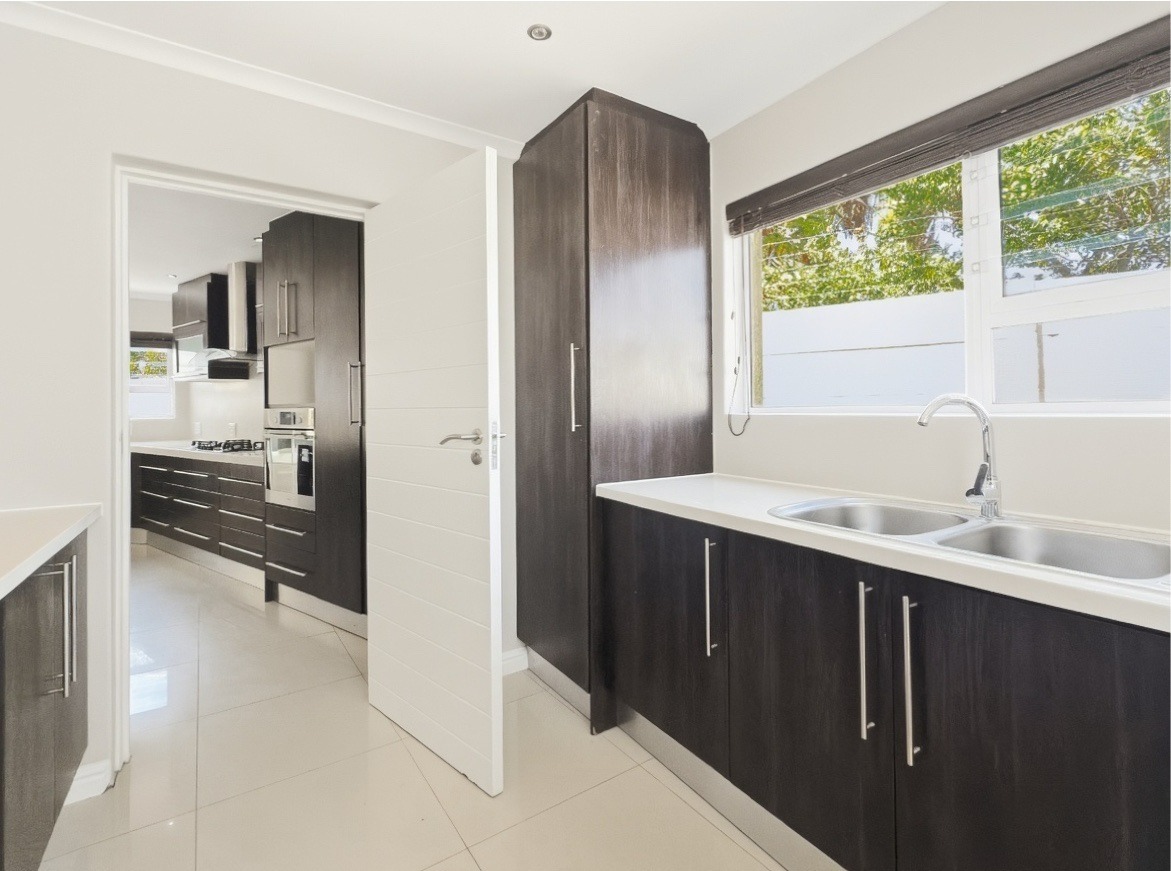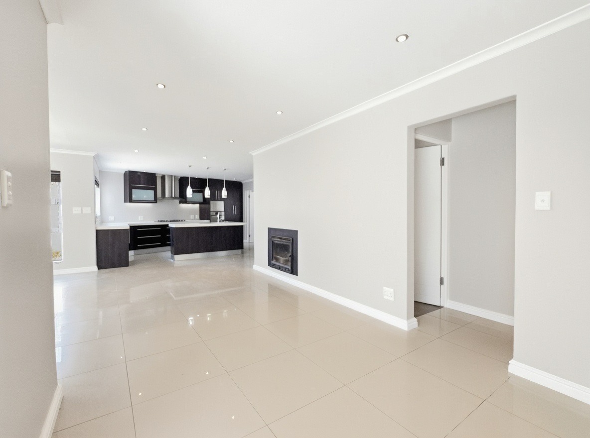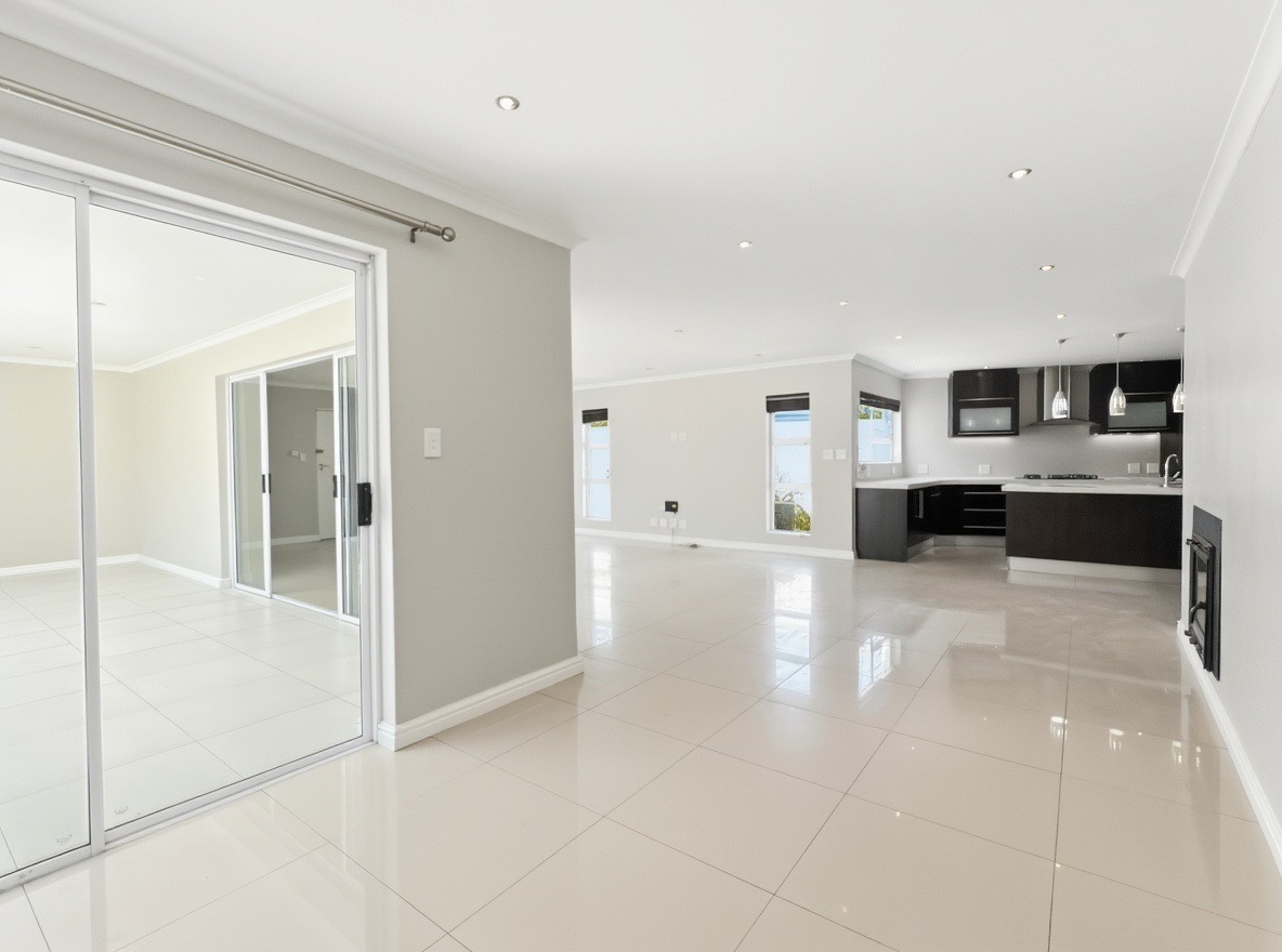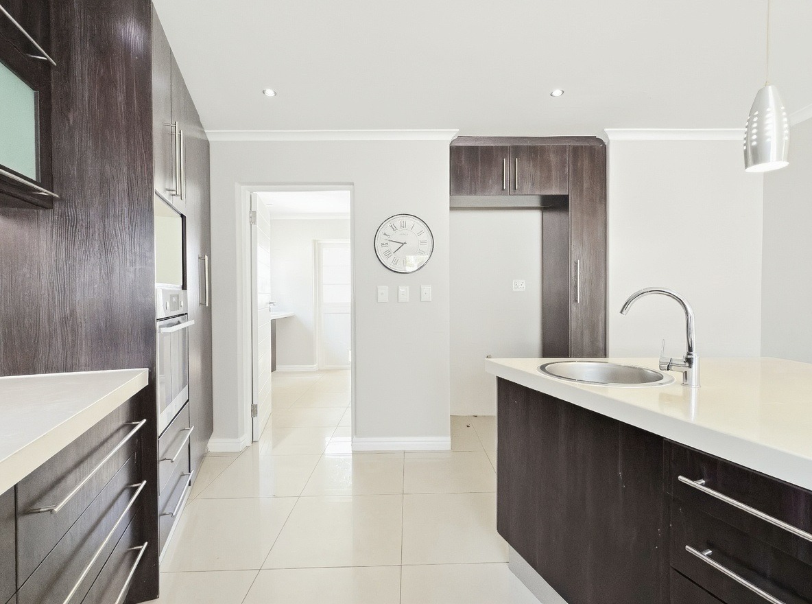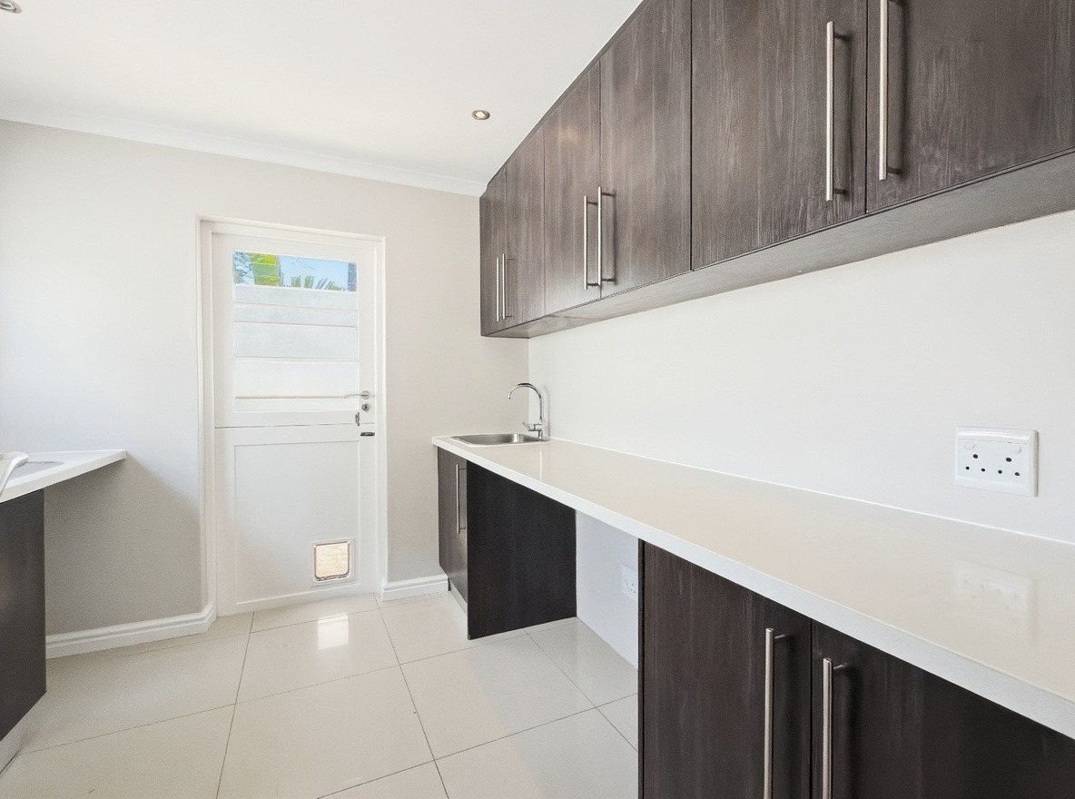 This unfurnished, single-storey freestanding house is located in Parklands. The property offers four bedrooms, all with built-in cupboards, and three bathrooms. Two of the bedrooms are en-suite. One en-suite includes a shower, toilet, and basin, while the main en-suite is a full bathroom with a shower, bath, toilet, and basin. The family bathroom is also a full bathroom.