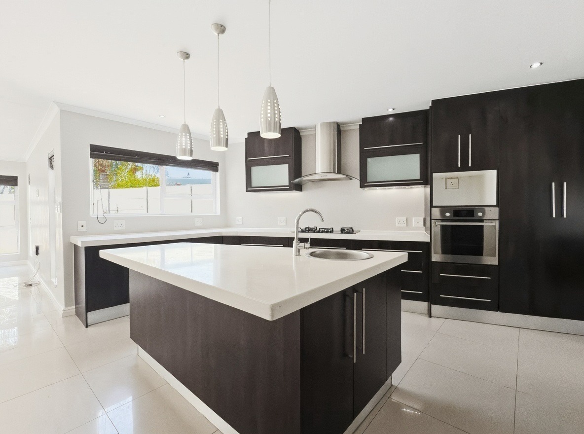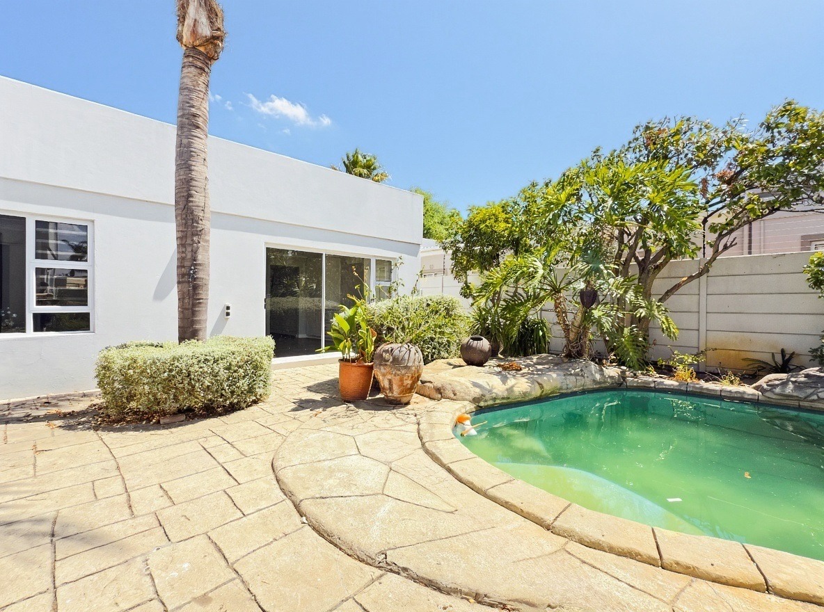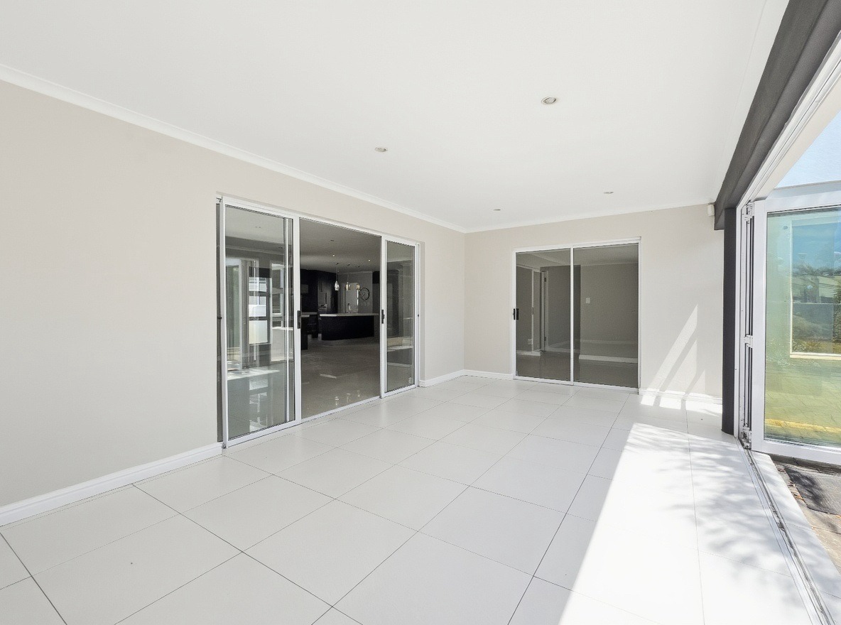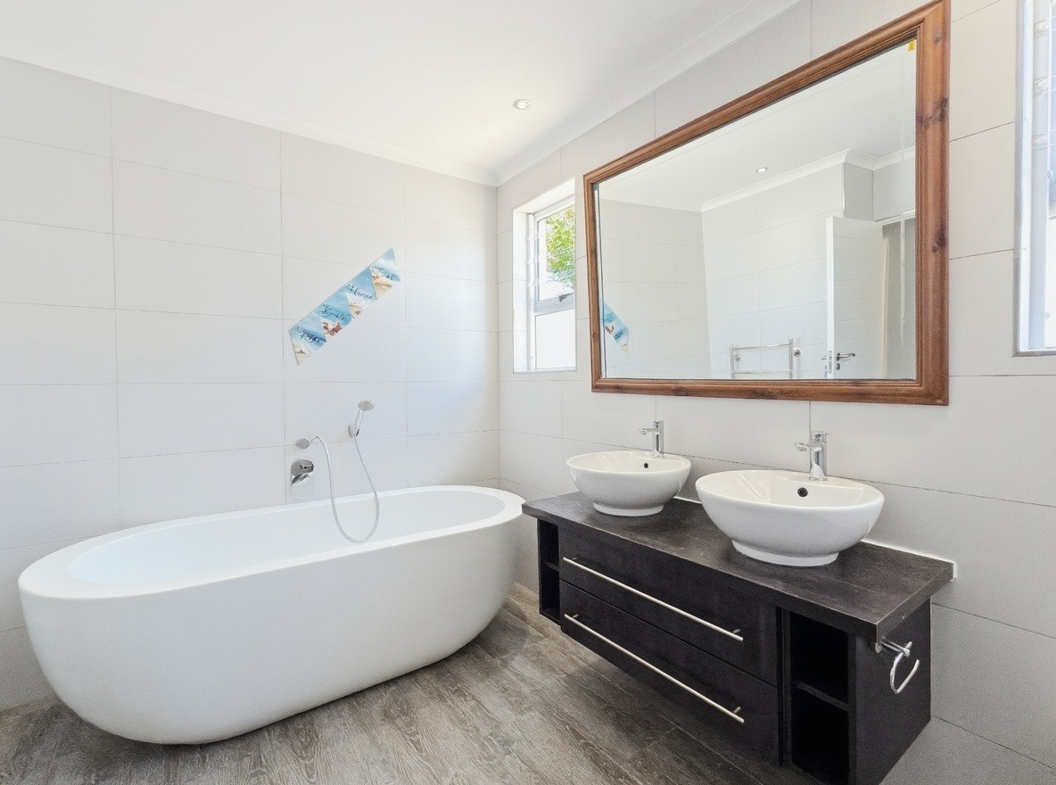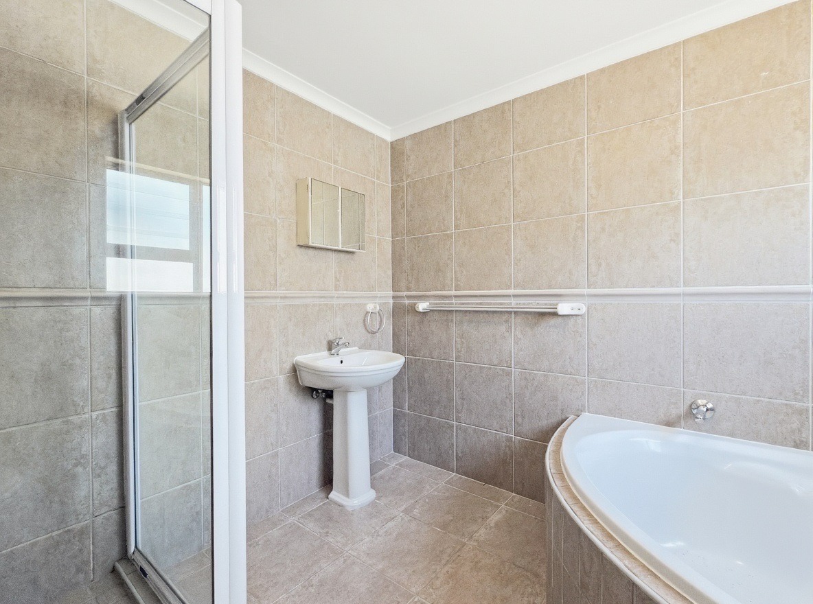 This unfurnished, single-storey freestanding house is located in Parklands. The property offers four bedrooms, all with built-in cupboards, and three bathrooms. Two of the bedrooms are en-suite. One en-suite includes a shower, toilet, and basin, while the main en-suite is a full bathroom with a shower, bath, toilet, and basin. The family bathroom is also a full bathroom.