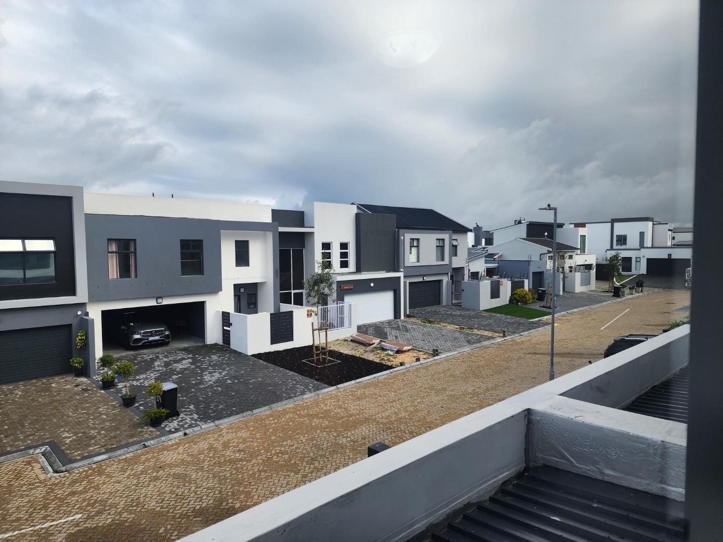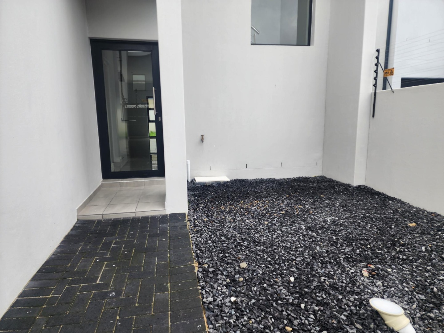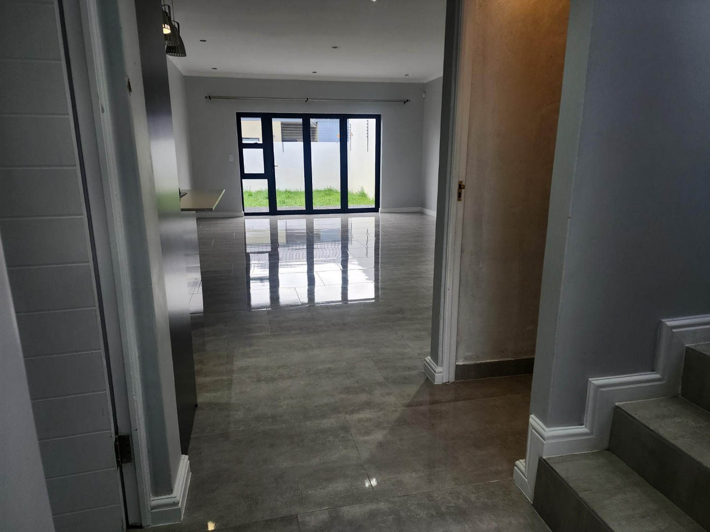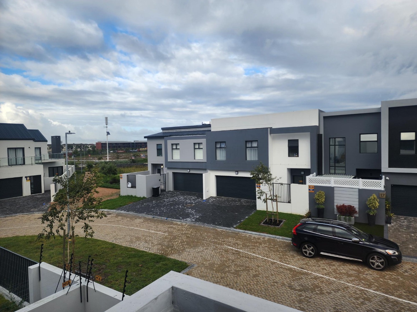Modern double storey home - located in the security pocket of Sandown * Downstairs - Open plan living areas are enjoyed by a modern kitchen with an eye level oven, gas hob and centre island * separate scullery area * Fourth bedroom / office with bic is located on the ground floor * Guest toilet * store room * Upstairs bedrooms have vinyl flooring and bic's * there is the master suite with an en-suite bathroom * Two additional bedrooms share a full family bathroom * Double Auto garage with direct access * stacker doors lead to the outdoor paved BBQ patio and enclosed garden with a well point * Security is fitted with an alarm and electric fencing and patrols * wifi to the unit * electricity is prepaid * close to schools, local amenities and MyCiti bus routes *